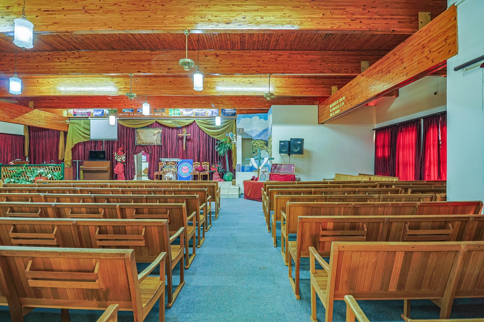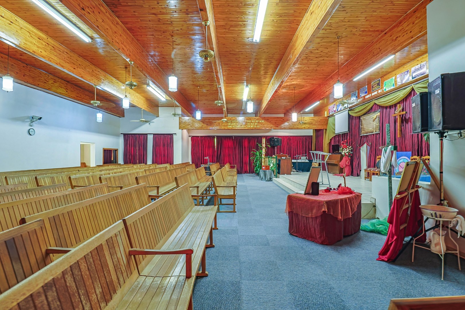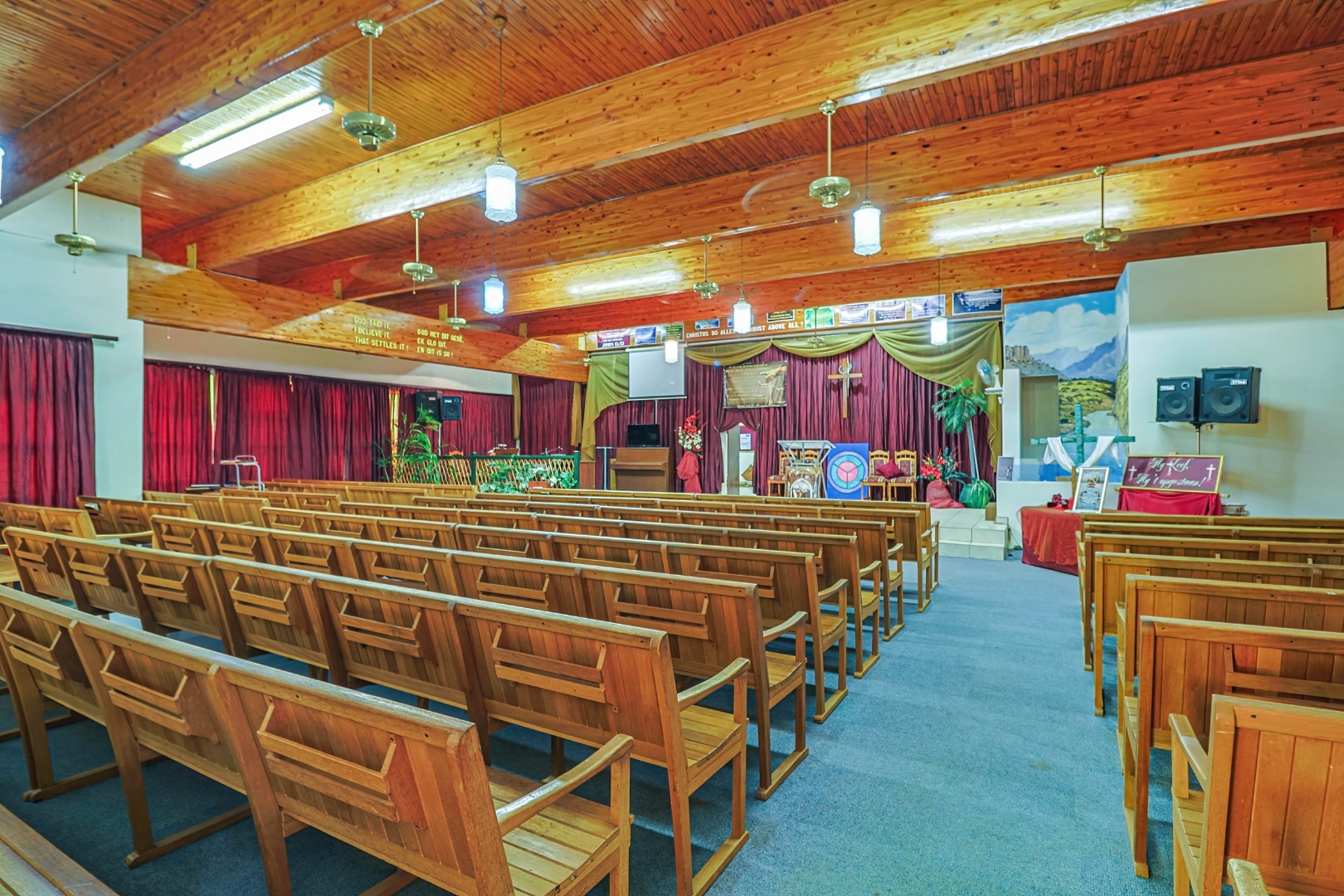 For decades, this sanctuary has been a place of faith, worship, prayer, and fellowship. Inside, the warm wooden ceilings and rows of wooden pews create a peaceful atmosphere where many gatherings, sermons, and moments of reflection have taken place.