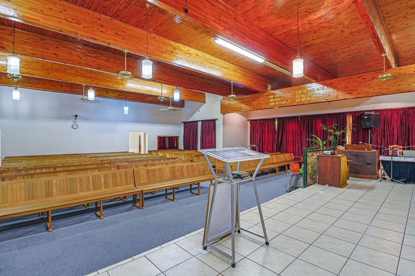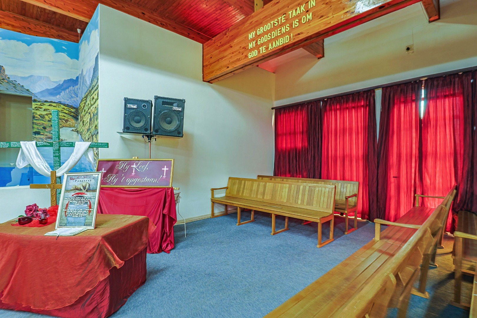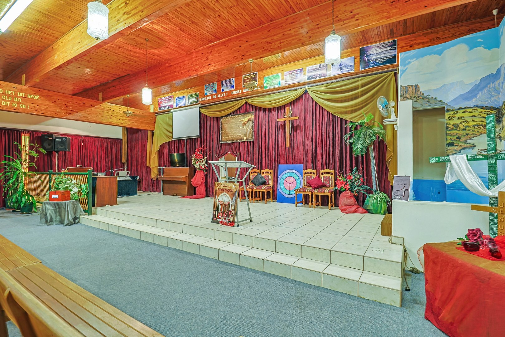 For decades, this sanctuary has been a place of faith, worship, prayer, and fellowship. Inside, the warm wooden ceilings and rows of wooden pews create a peaceful atmosphere where many gatherings, sermons, and moments of reflection have taken place.