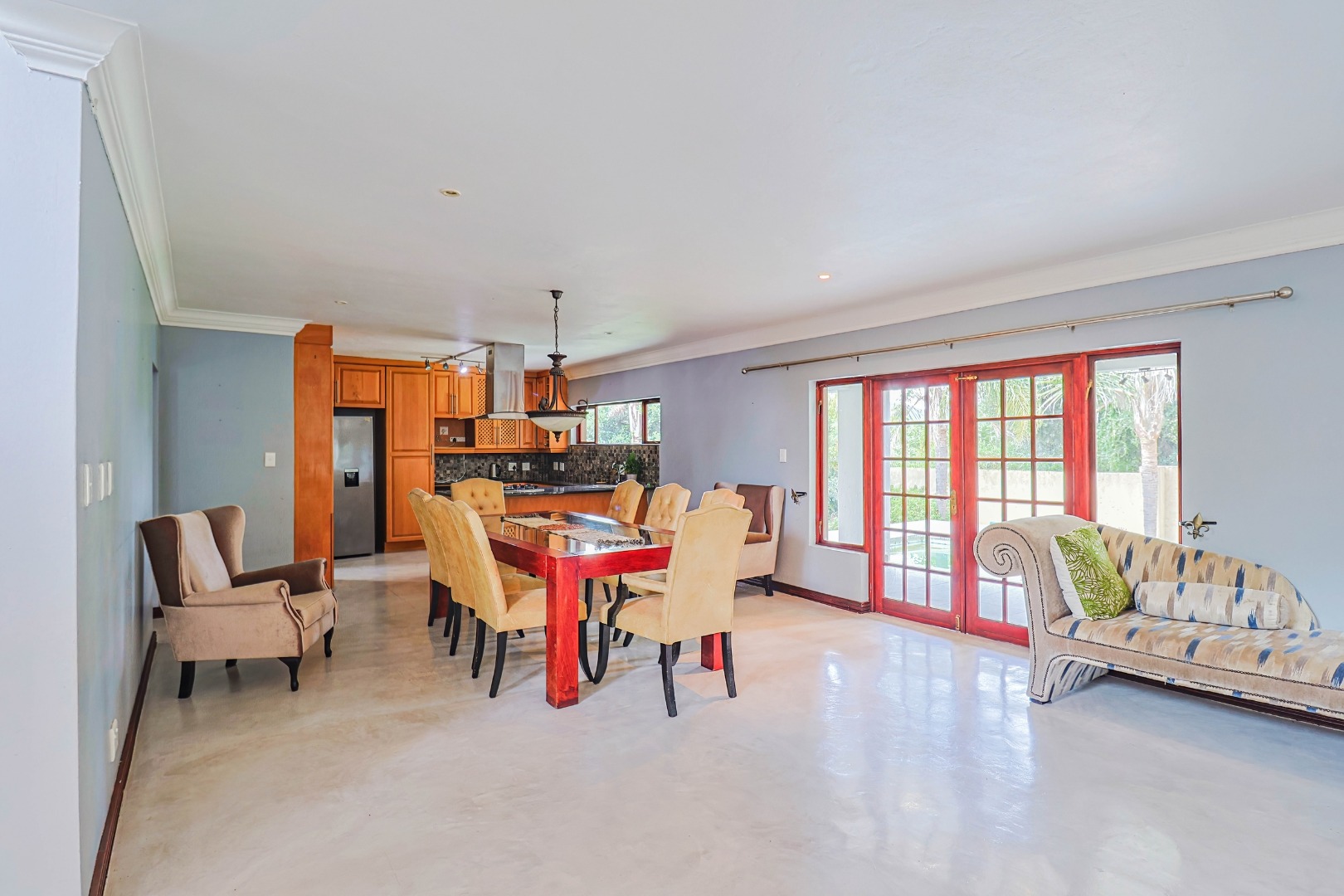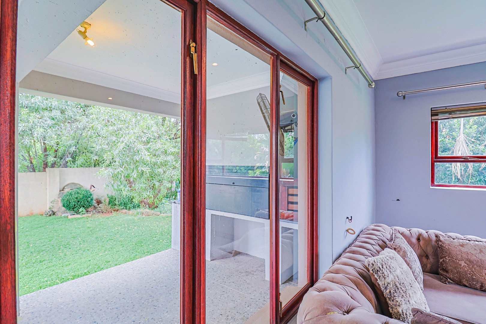This exceptional property, offered under an Exclusive Sole Mandate, presents a unique opportunity within the highly desirable Birdwood Estate, Hartbeespoort. A well-maintained driveway and garden lead to an inviting entrance hall, setting the tone for the quality and comfort found throughout this residence. Designed for contemporary living, the home features an open-plan layout seamlessly connecting the lounge, dining room, and a dedicated family/TV room. The modern kitchen is well-appointed with a pantry, while air conditioning, special lighting, and sliding doors ensure year-round comfort. A spacious patio and dedicated braai room with a built-in braai create the perfect setting for effortless entertaining.