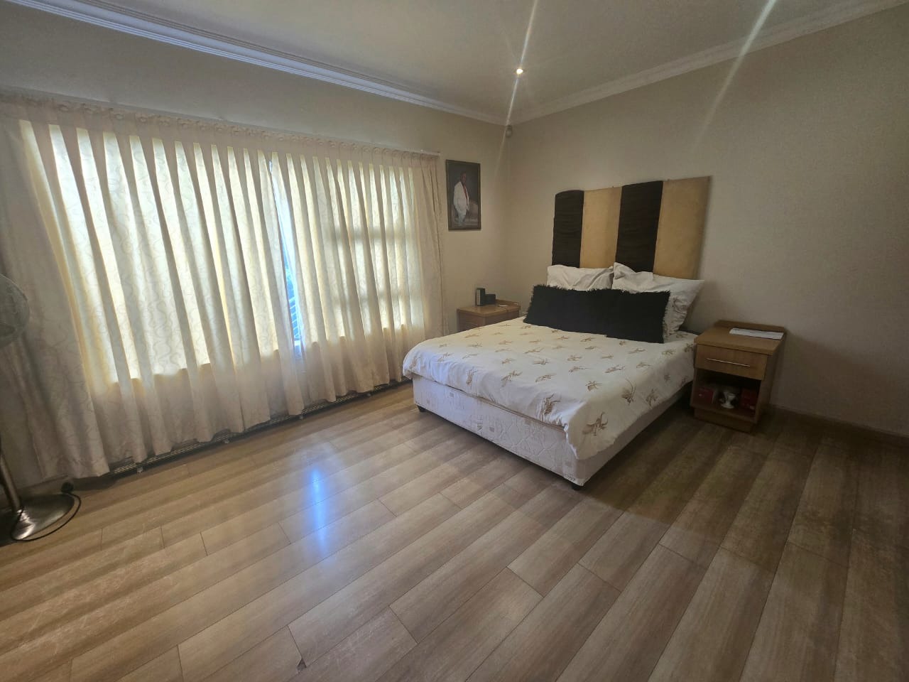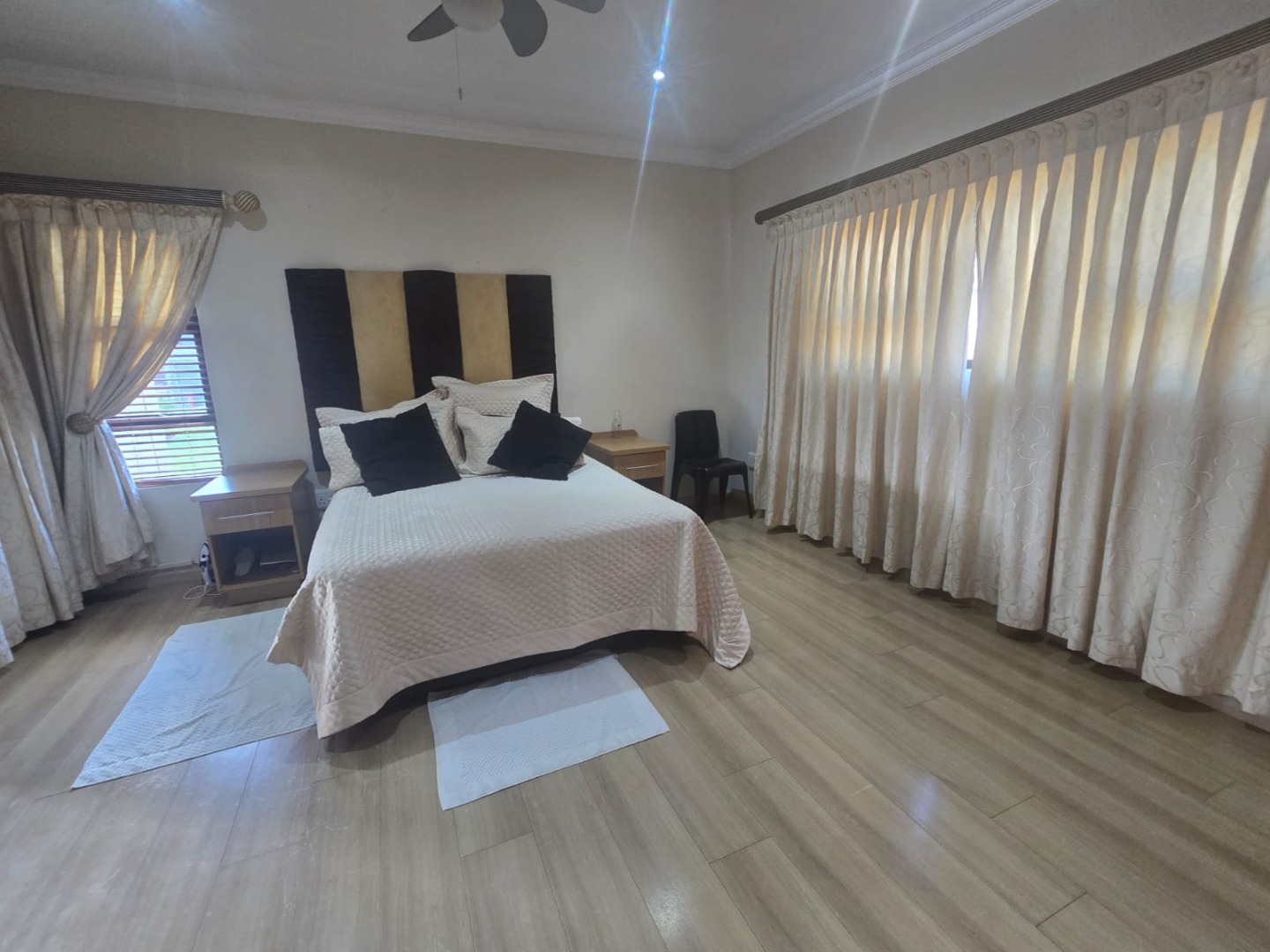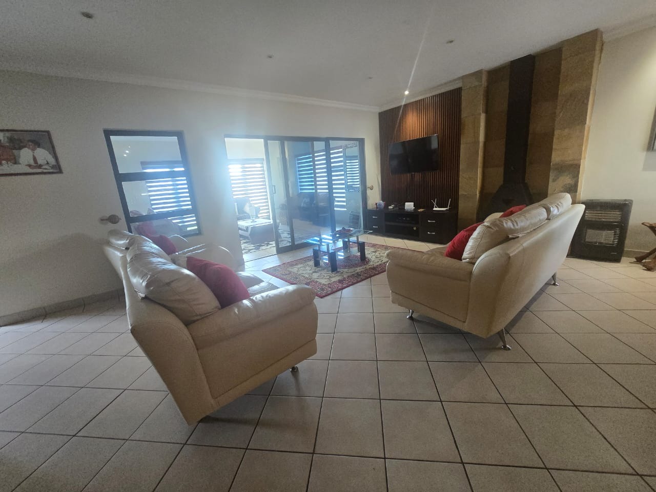 The property welcomes you with open-plan living and dining areas that flow effortlessly, creating a warm atmosphere. A separate lounge offers a peaceful space for relaxation or hosting guests. The kitchen features ample cupboards and a separate scullery, designed for ease and functionality.