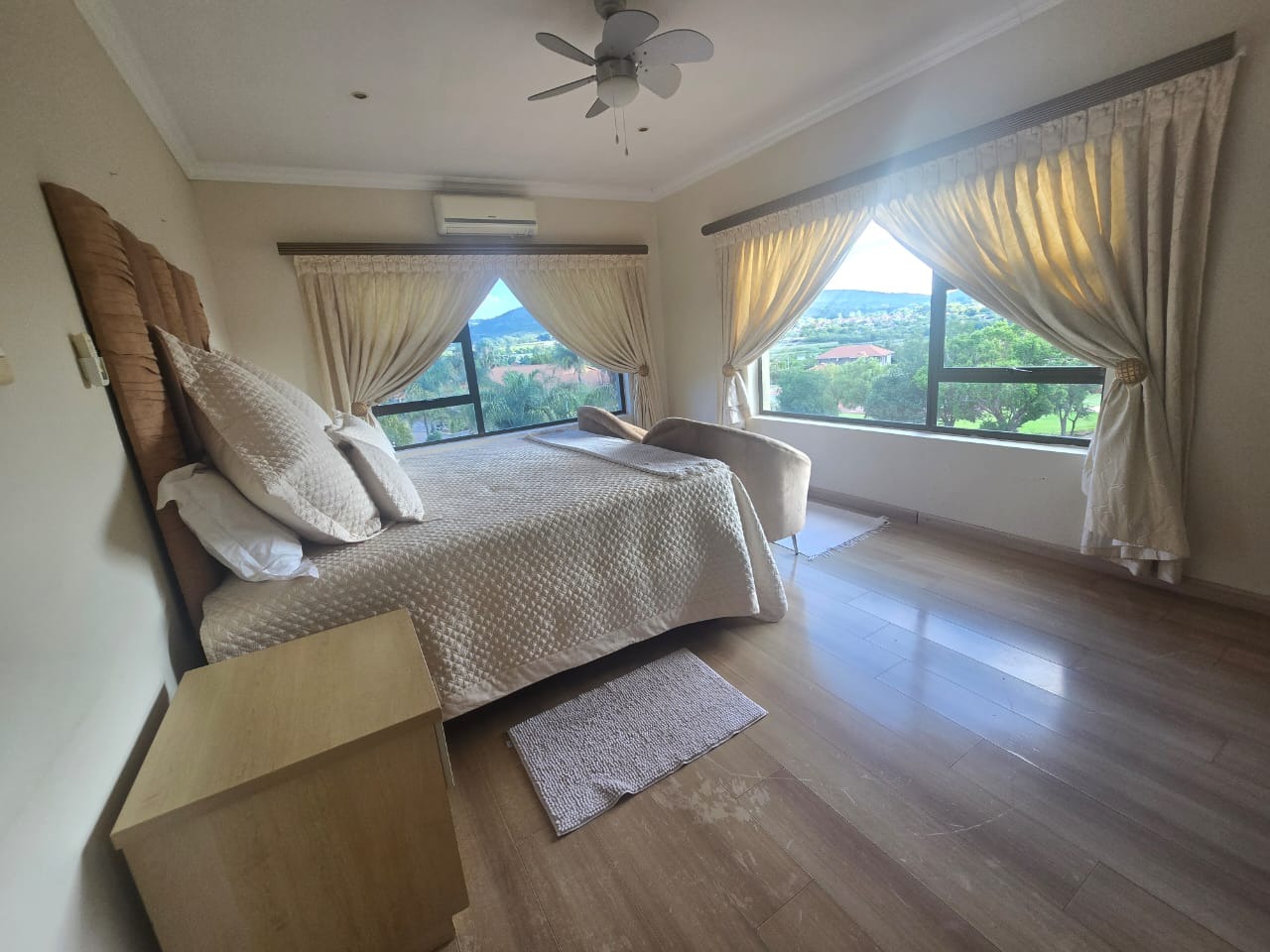 The upper- level hosts two well-proportioned bedrooms, including a spacious main suite with a full en-suite bathroom. The second bedroom is serviced by its own beautiful full bathroom. This level also boasts a cosy pyjama lounge, a dedicated study area, and a large balcony complete with braai facilities perfect for enjoying scenic views and quality time with loved ones.