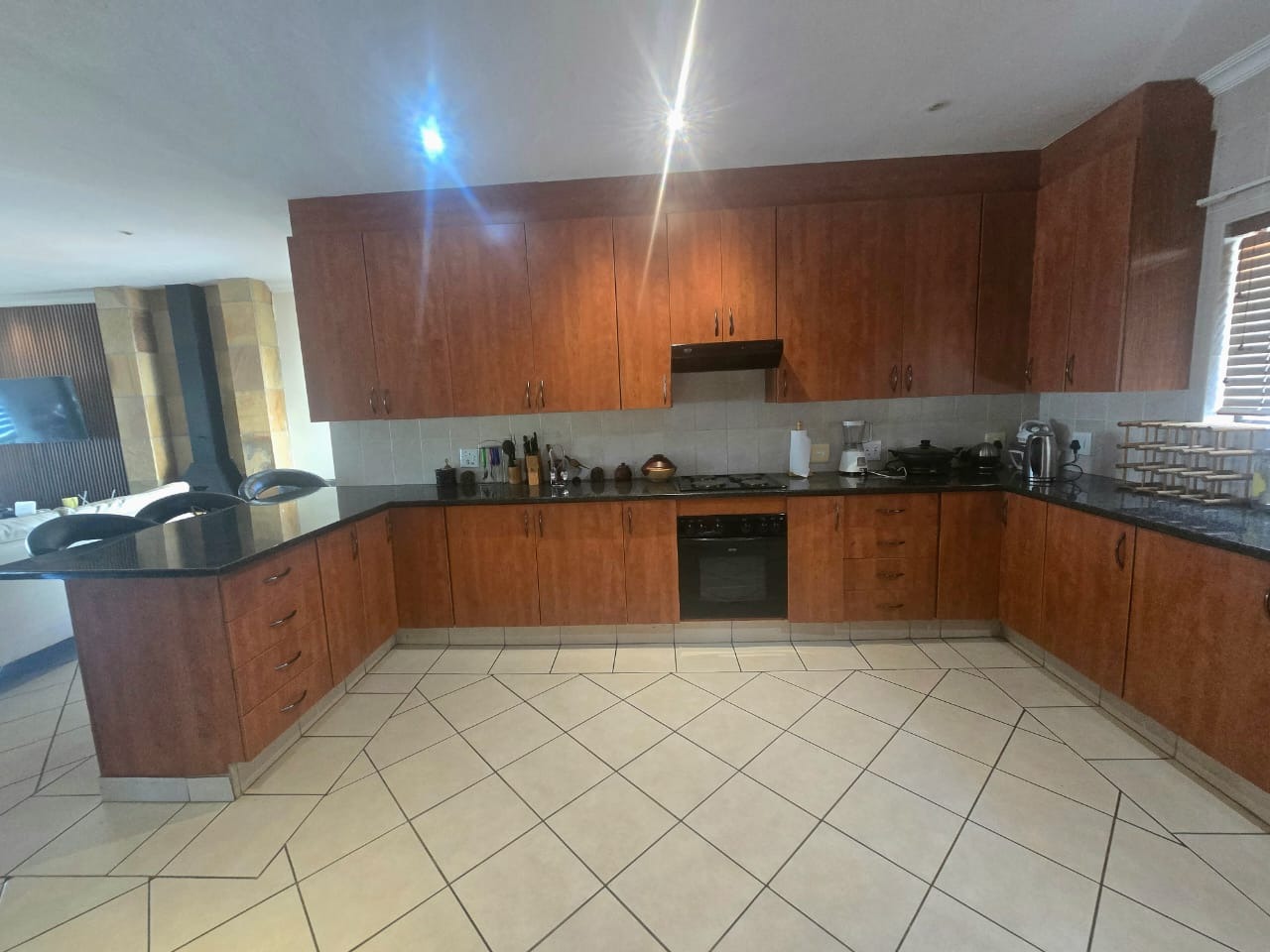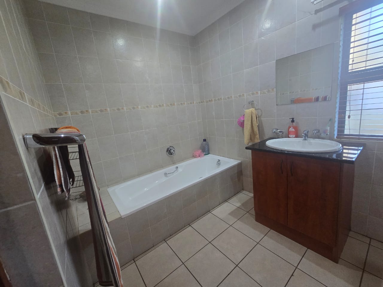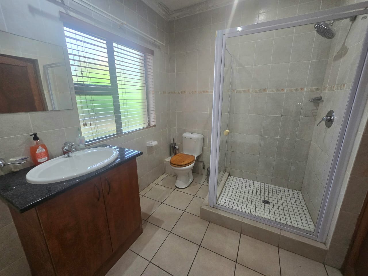 The property welcomes you with open-plan living and dining areas that flow effortlessly, creating a warm atmosphere. A separate lounge offers a peaceful space for relaxation or hosting guests. The kitchen features ample cupboards and a separate scullery, designed for ease and functionality.