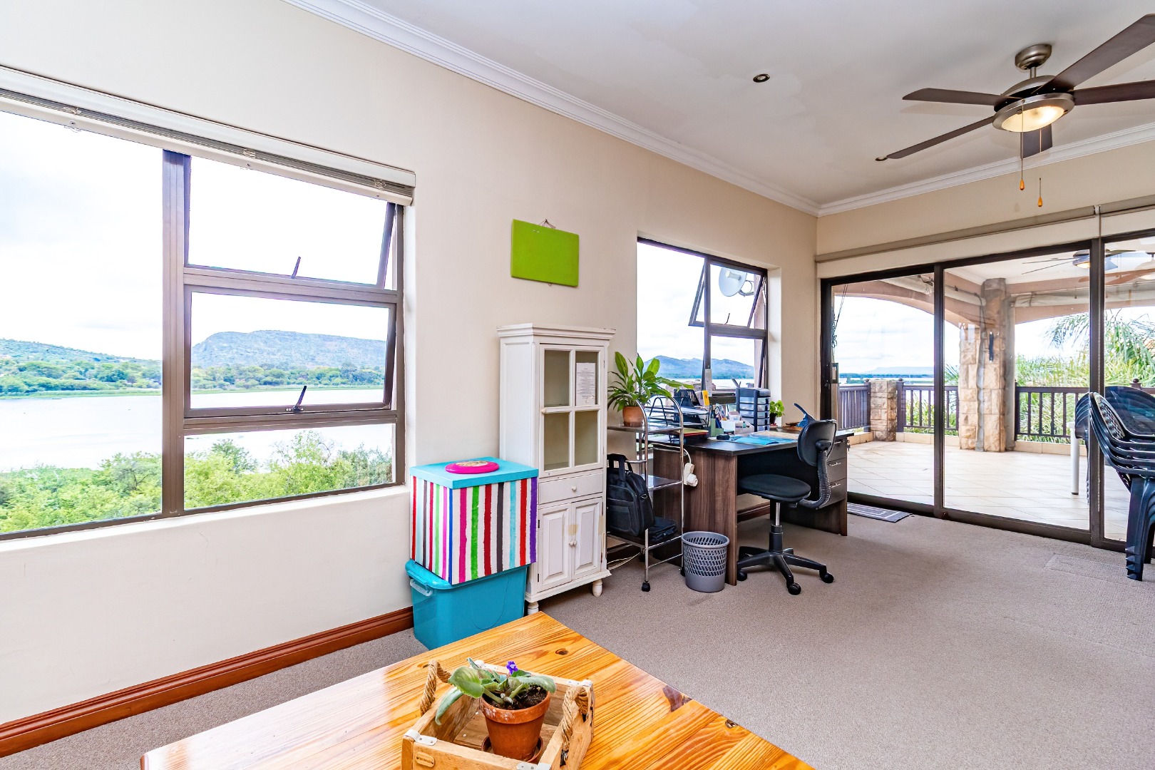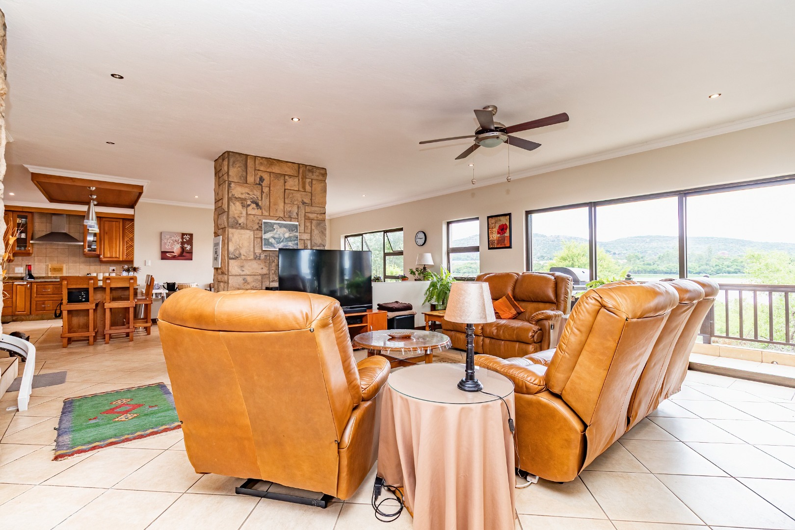 Discover luxury living with this 6-bedroom family home situated in an exclusive estate on the shores of Hartbeespoort Dam. The open-plan design seamlessly blends the kitchen, dining, and living areas, creating a light-filled, inviting atmosphere. Large windows frame the breathtaking backdrop of the dam, offering the perfect retreat from everyday life and an ideal space to entertain family and friends.