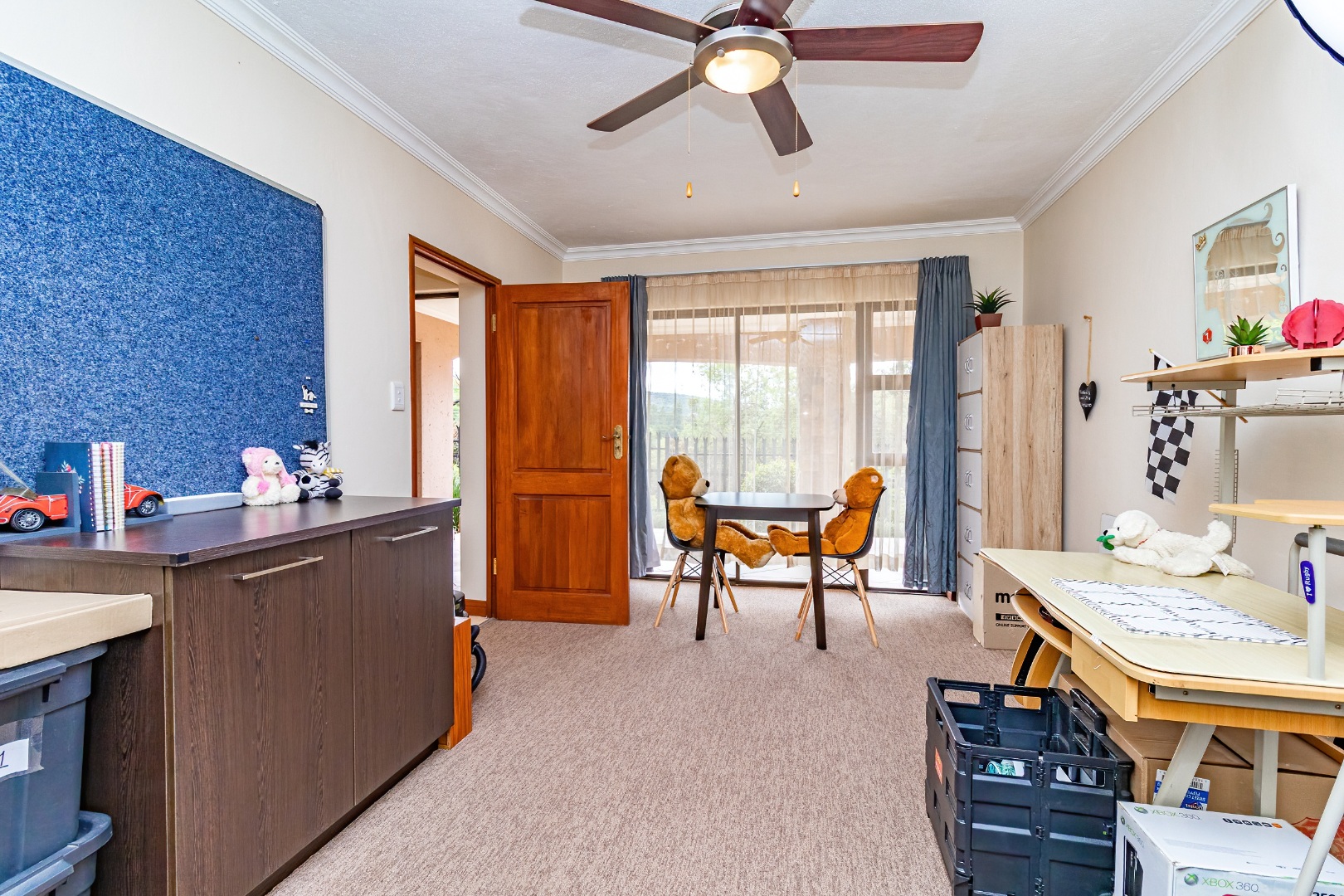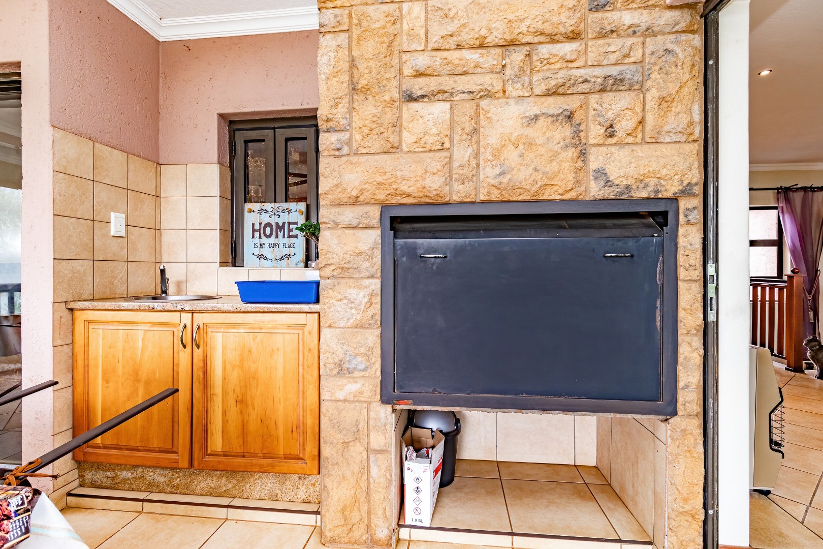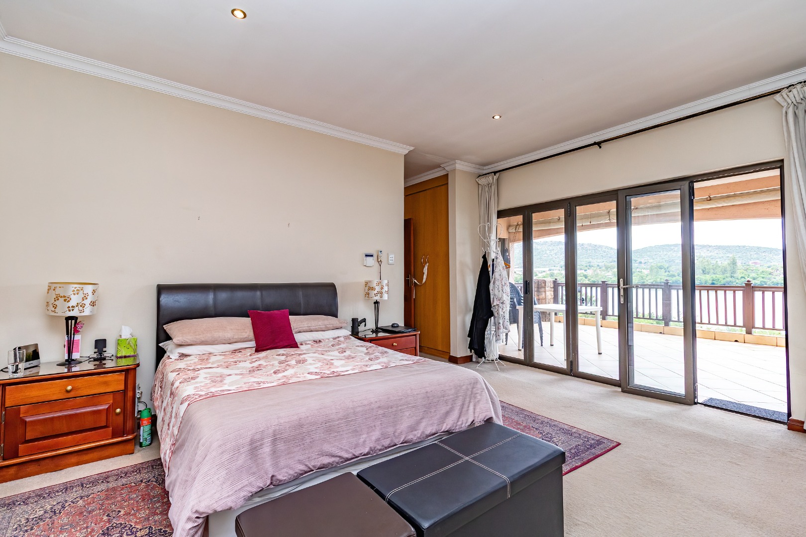 Four spacious bedrooms are located upstairs, each boasting serene views. The main bedroom is a true sanctuary featuring a full en-suite bathroom and a private balcony with a gas braai — perfect for enjoying outdoor moments in style. With a triple garage, ample additional parking, extra storage, and an outside room with a bathroom, this home balances luxury and practicality effortlessly. Don’t miss your chance to experience upscale living in one of Hartbeespoort's most sought-after estates.