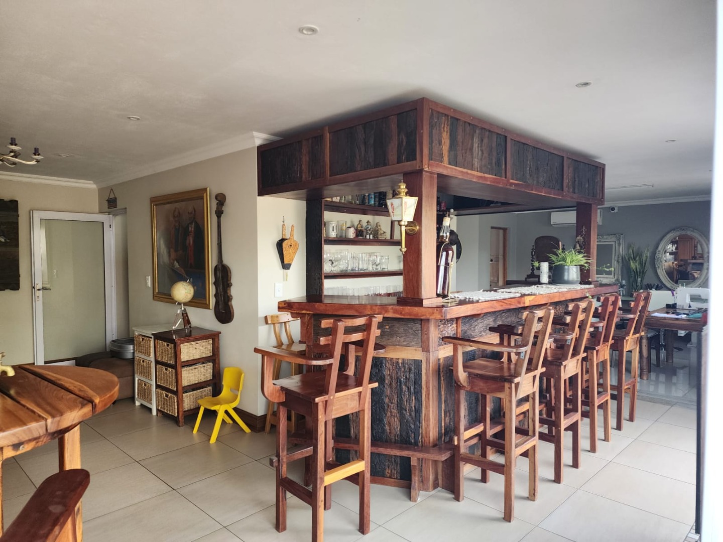 Or through the sliding doors into the man cave, complete with a built-in bar. From here, a staircase leads you into the heart of the home.