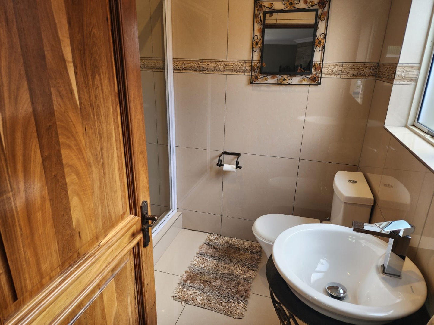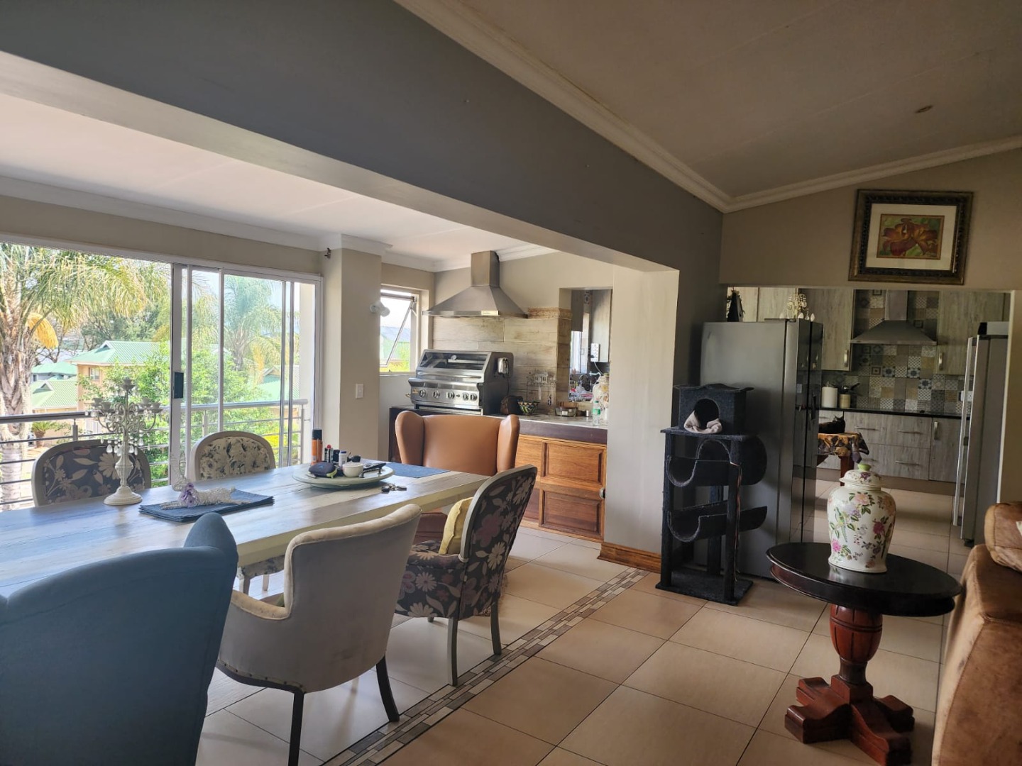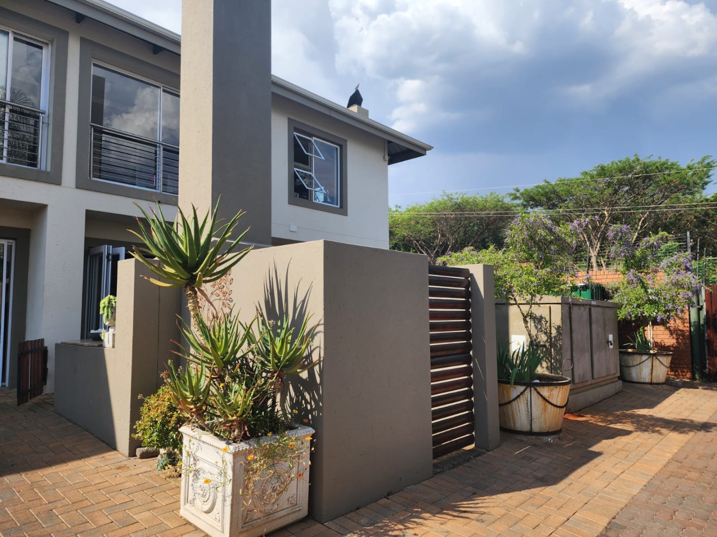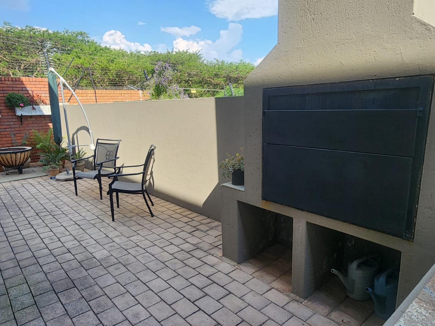 Step outside and you’ll find beautifully maintained gardens and a well-positioned braai area near the entrance — perfect for gatherings. There is also ample guest parking, with even more space available when the utility gate to the complex is not in use.