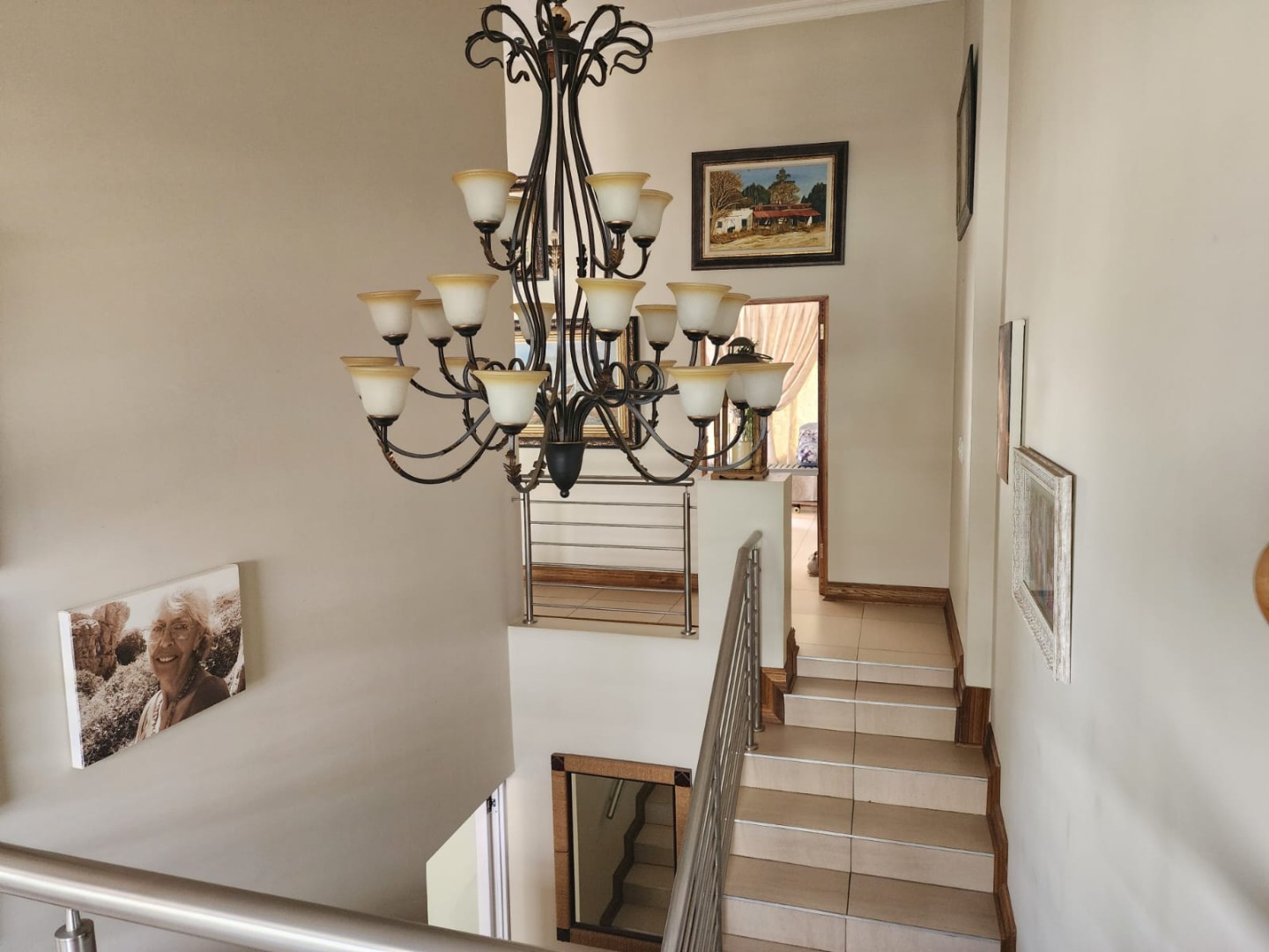 A side staircase leading directly to the main entrance