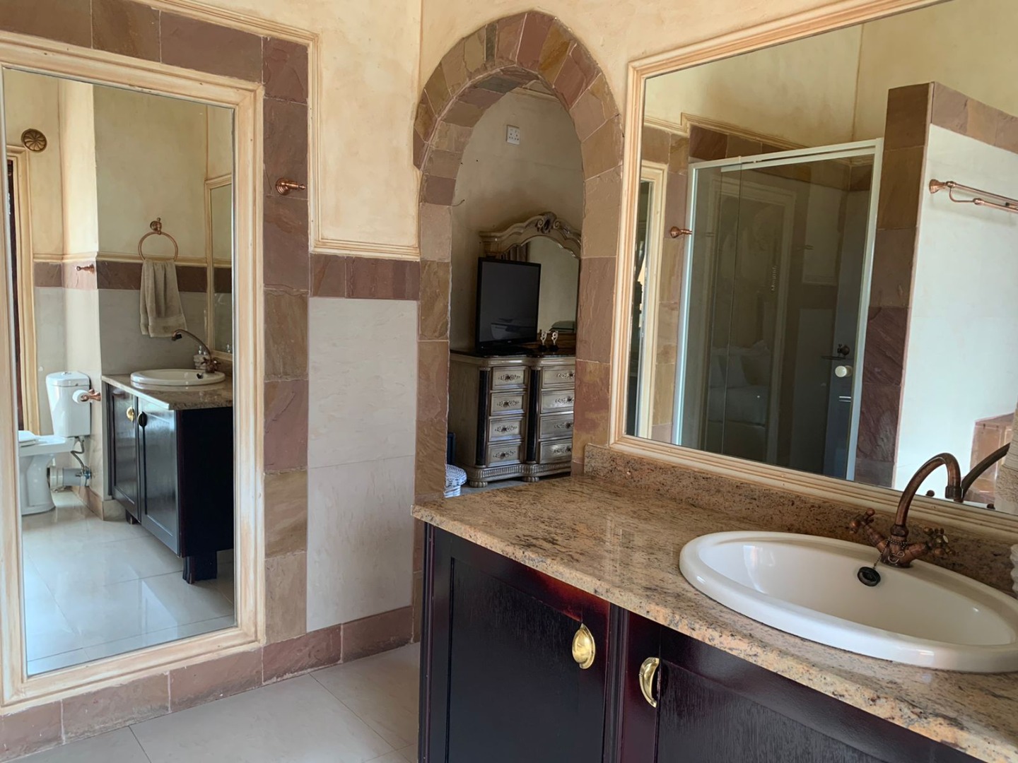 Hidden away in a peaceful lifestyle environment, this French inspired home is filled with warmth, character and a sense of lived in beauty. The open concept living area flows comfortably to a spacious lounge. The dining room’s easy access is enjoyed by the country style kitchen with well fitted cupboards and separate scullery. The main en-suite bedroom is situated on the first level and offers magnificent views of the dam. The staircase leads you downstairs to the pyjama lounge, study and three bedrooms, one bedroom is en-suite and the other two bedrooms are served by a bathroom. The bedrooms enjoys access to the garden and swimming pool. The entertainment patio is cosy and perfect for al fresco dining and good quality family time. Hard to find - quick to go in this popular estate.