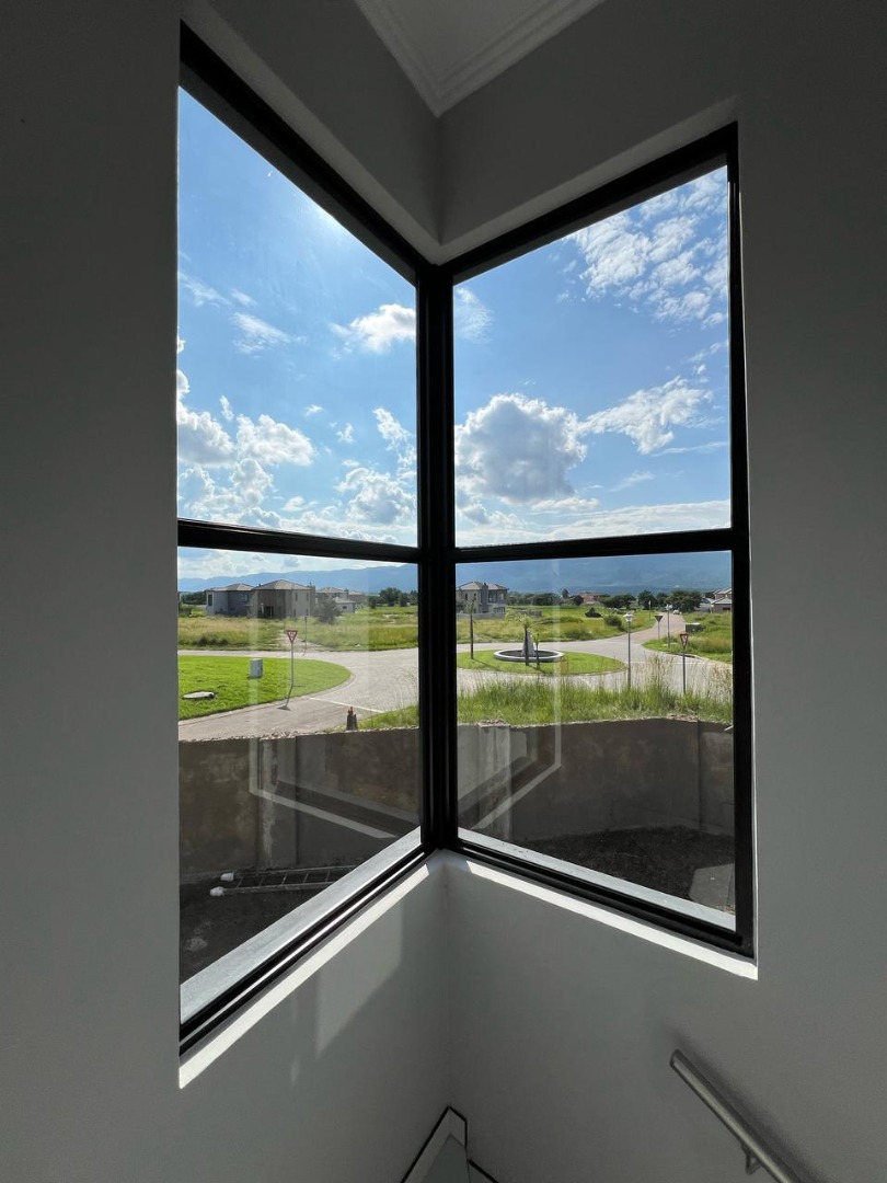 The property comprises three comfortable bedrooms and 2.5 bathrooms, including a luxurious en-suite, ideal for family living. Expansive black-framed corner windows frame beautiful mountain views while filling the home with light. Outdoor features include a private patio, balcony, garden area, paving and a built-in bar — perfect for entertaining. With 24-hour security, access control, a gas geyser and pet-friendly living, this home offers peace of mind and modern comfort in the sought-after Everglades Estate.