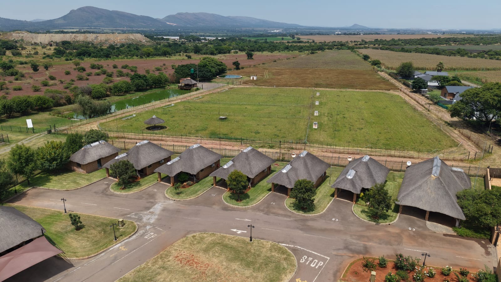 The property includes a modern manager’s house with 3 bedrooms, 2 bathrooms, kitchen, lounge, dining room, study and 2 garages. Additional improvements feature 13 chalets, 4 steel-structure workshops, an office block with 8 rooms and 2 bathrooms, staff quarters, guest toilets, reception area, clubhouse, pool, laundry, pantry, storage areas and ample parking. Infrastructure and security include 4 boreholes, water tanks, irrigation camps for livestock, 3-phase electricity, access gate, electric fencing, alarm, CCTV, intercom, 24-hour security, security post and paved driveways. Extras include air-conditioning, central heating, furnished units, satellite, built-in braai and bar, deck, patio, garden, sprinkler system, wheelchair-friendly access and more.