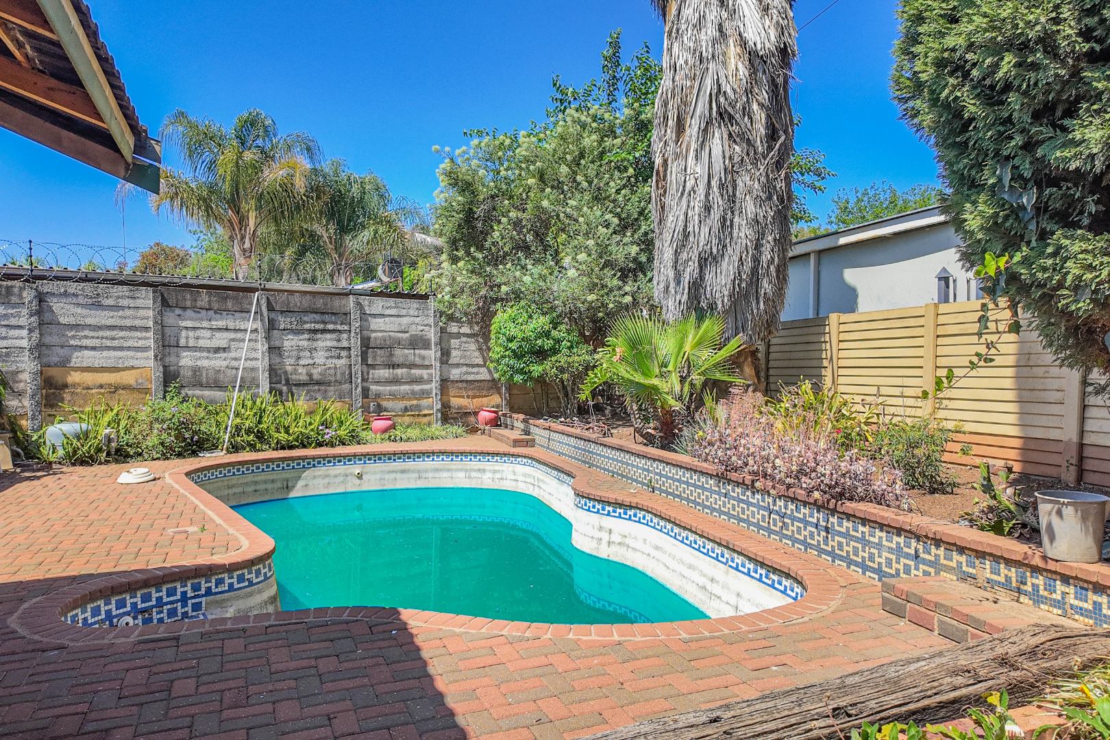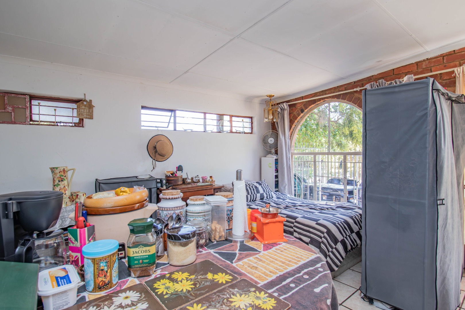 Outside, the fun continues! Imagine sunny days by your very own private swimming pool – it's just waiting for a little refresh to sparkle and become your personal oasis. There's also a super inviting thatched lapa, ideal for entertaining friends and family or just chilling out in the shade. With a generous 925 sqm erf, there's plenty of space to enjoy, and yes, your furry friends are welcome too! Plus, the property features a handy flatlet, ideal for guests, a home office, or even potential rental income: Flat 1 – Left Side: 1 bedroom, 1 bathroom with shower only, lounge, and kitchenette; Flat 2 – Right Side: 1 bedroom, 1 bathroom with bath only, lounge, and kitchenette. For your peace of mind, the property comes with enhanced security features like burglar bars and security gates, ensuring you feel safe and sound in your new home.
