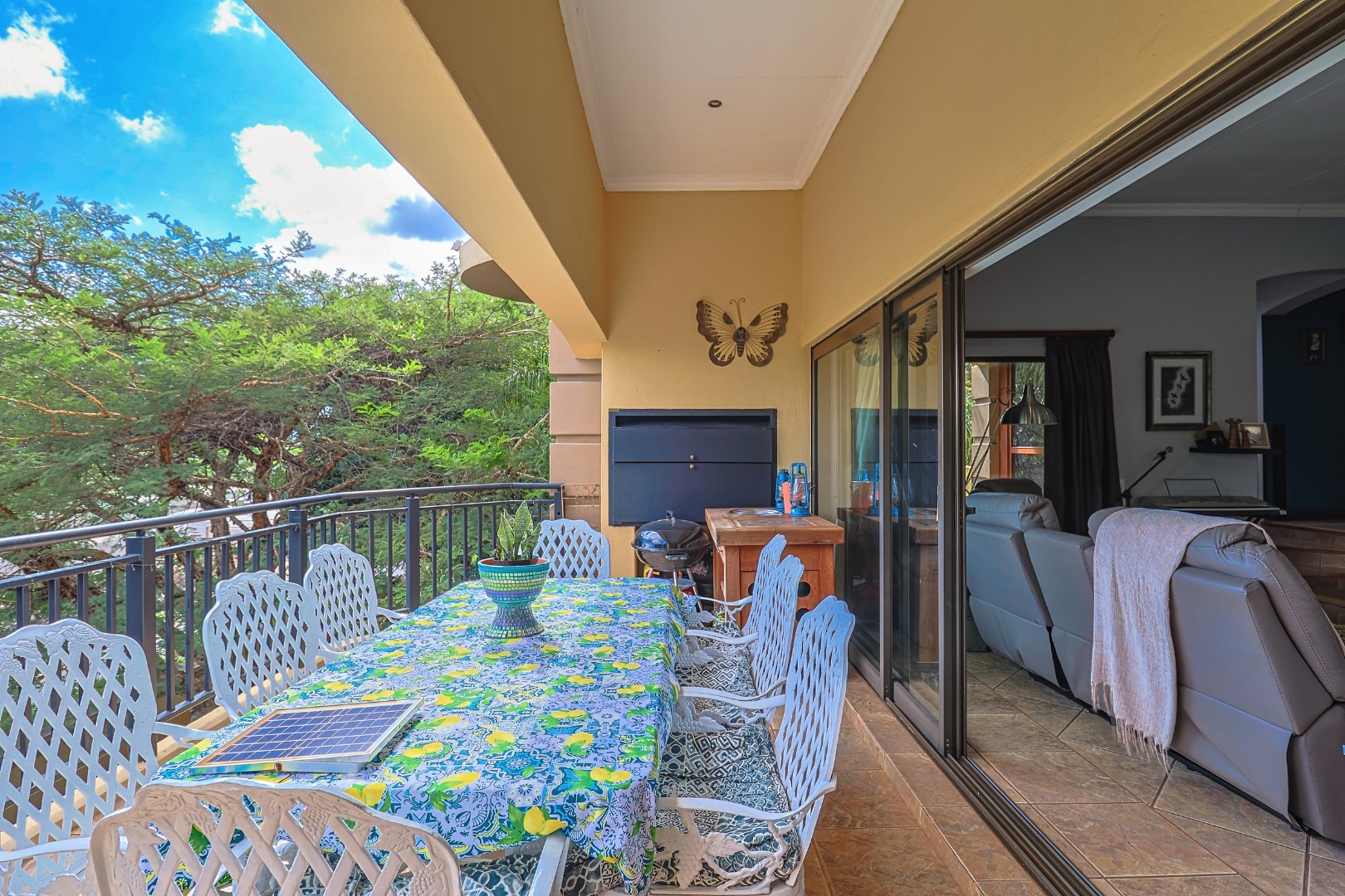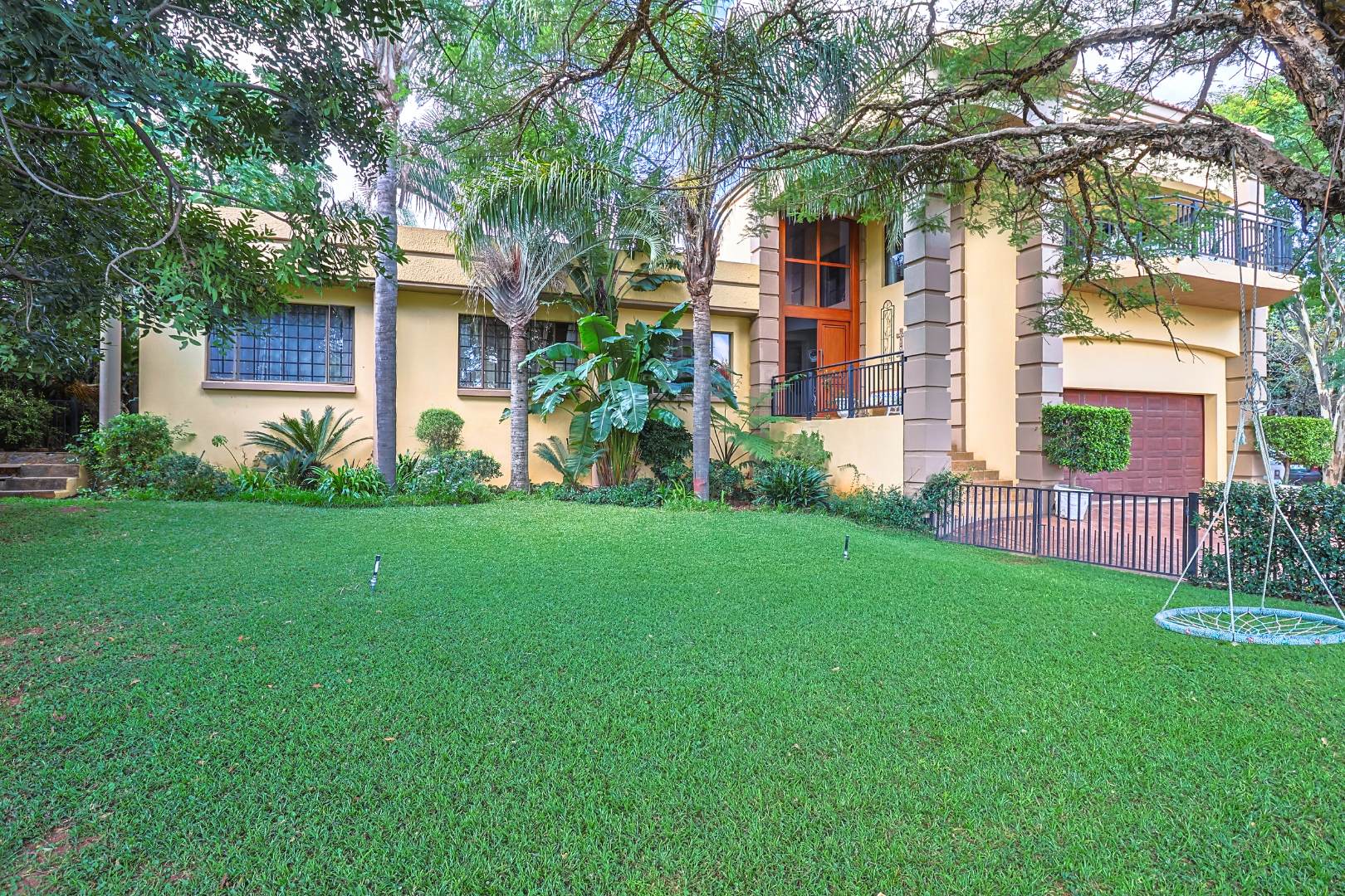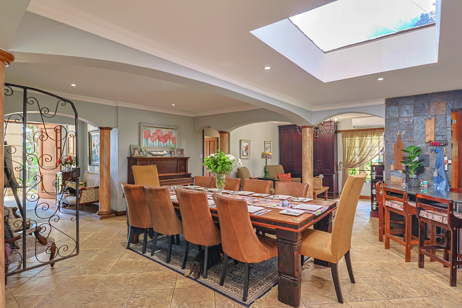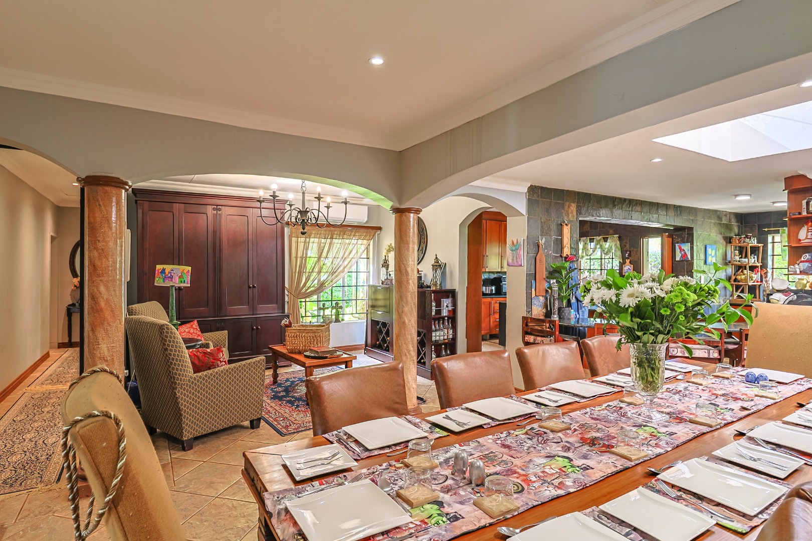 The main house features multiple living areas, including lounges, a study, a craft or hobby room, and a striking dining room. An open plan layout with skylight and sliding doors enhances natural light and indoor outdoor flow, while multiple patios and balconies provide ideal spaces for entertaining. Outdoor amenities include a swimming pool, built in braai, and a well maintained garden with a vegetable patch.