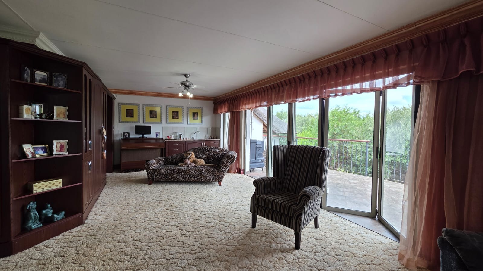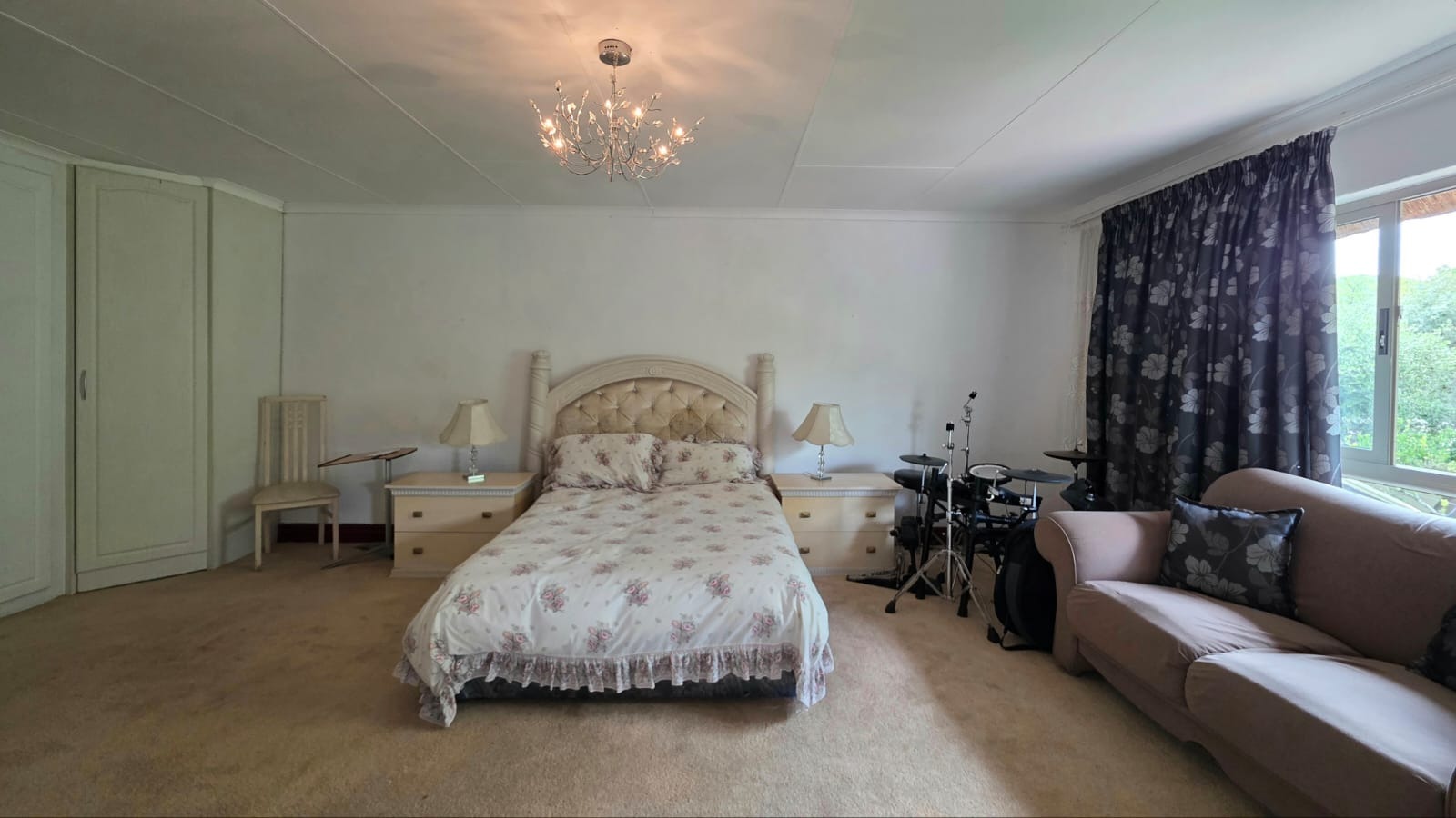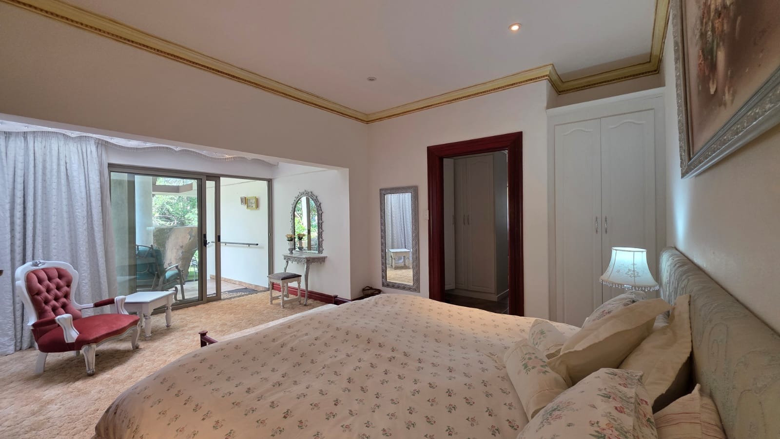 This exceptional residence boasts nine luxurious bedrooms and seven and a half bathrooms, including a guest toilet, as well as three dining areas, two lounges, a fully equipped flatlet, staff quarters, and outside facilities. The gourmet kitchen is a culinary showpiece, offering extensive cabinetry, gleaming granite countertops, multiple islands, integrated appliances, and a welcoming breakfast bar overlooking the garden. Outdoor living is elevated with a spacious covered thatched patio featuring a built-in braai, seamlessly connecting to manicured gardens, a tranquil pond, and breathtaking mountain views. Additional features include four garages, six parking bays, a solar geyser, a sprinkler system, and comprehensive estate security with controlled access.
