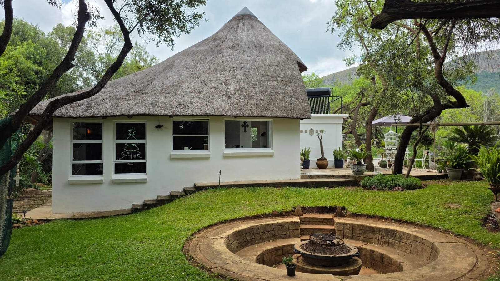 Thatch-Roofed Outdoor Entertainment Area with Built-in Braai