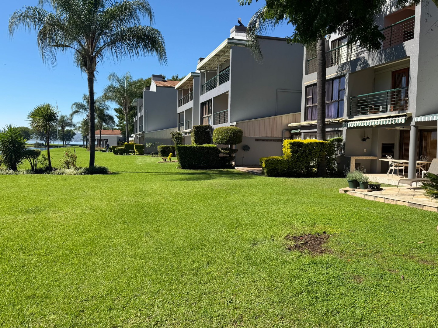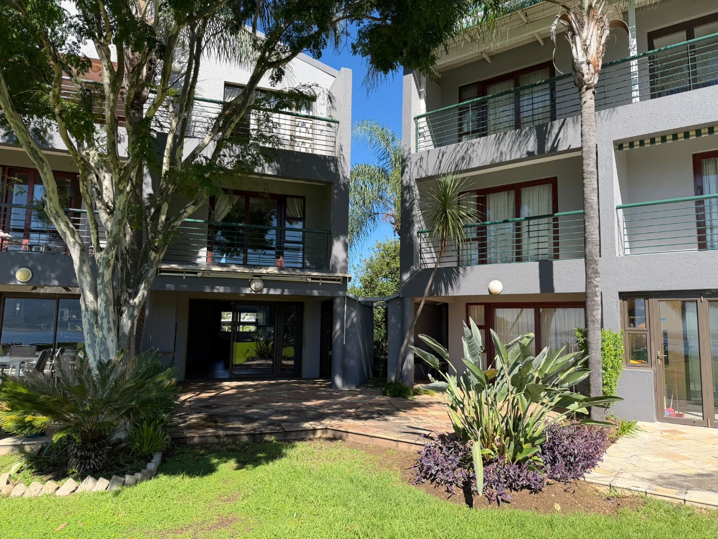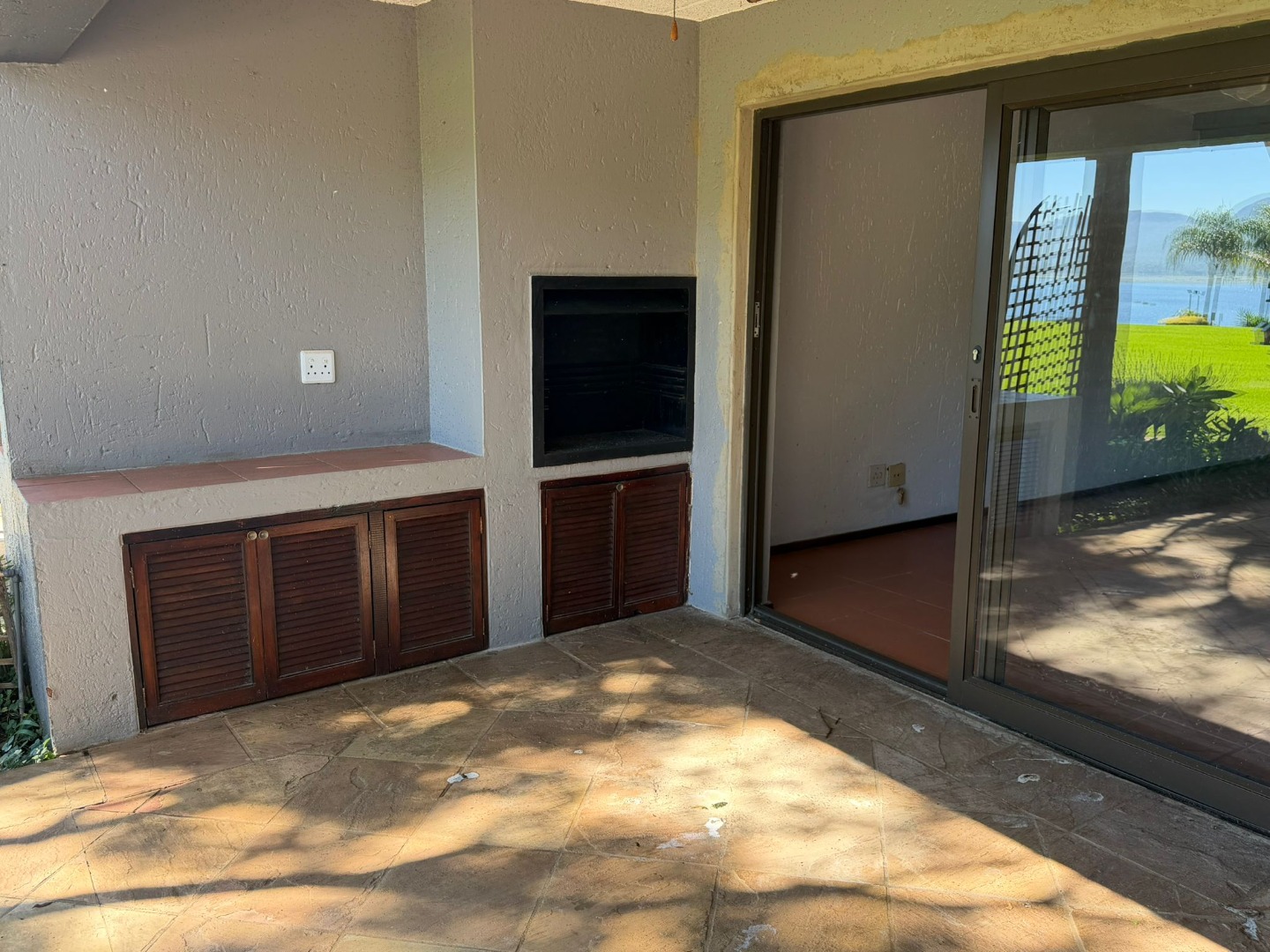 This upgraded two-bedroom duplex offers the ideal lock-up-and-go lifestyle. Designed for easy living, the open-plan living spaces flow onto a covered patio with a built-in braai, overlooking beautifully manicured communal lawns, the dam, and surrounding natural scenery. The recently updated kitchen features modern finishes, a gas hob, and ample cupboard space, making it both stylish and functional. A guest toilet and additional storage are conveniently located on the ground floor. Upstairs, the main bedroom includes an en-suite bathroom and enjoys stunning views of the dam, creating a peaceful retreat. The second bedroom is well-sized with built-in cupboards and is serviced by a separate bathroom with a shower, basin, and toilet. Additional features include air-conditioning in both the living area and main bedroom, a covered carport, and the added benefit of a private boathouse included in the sale.