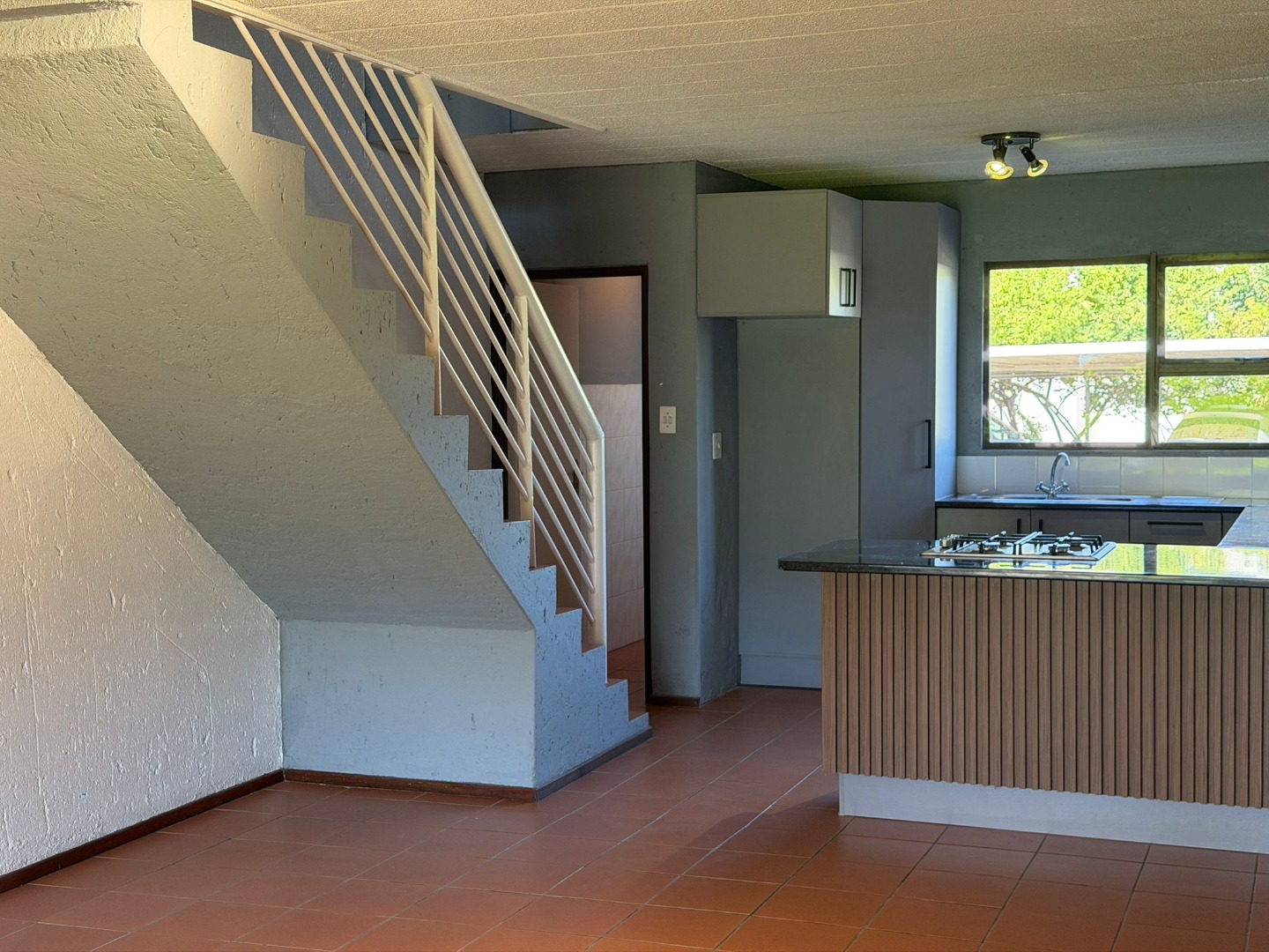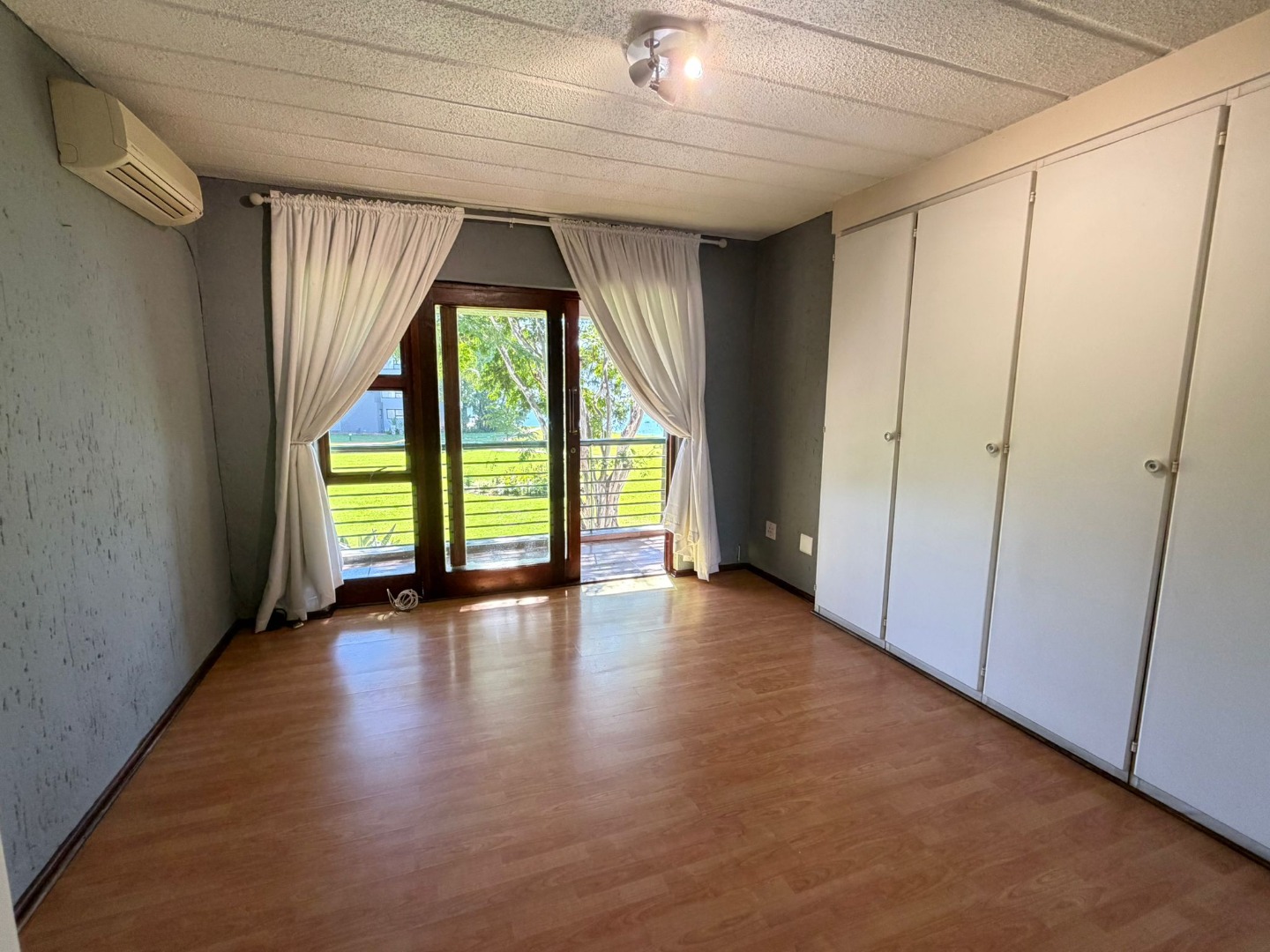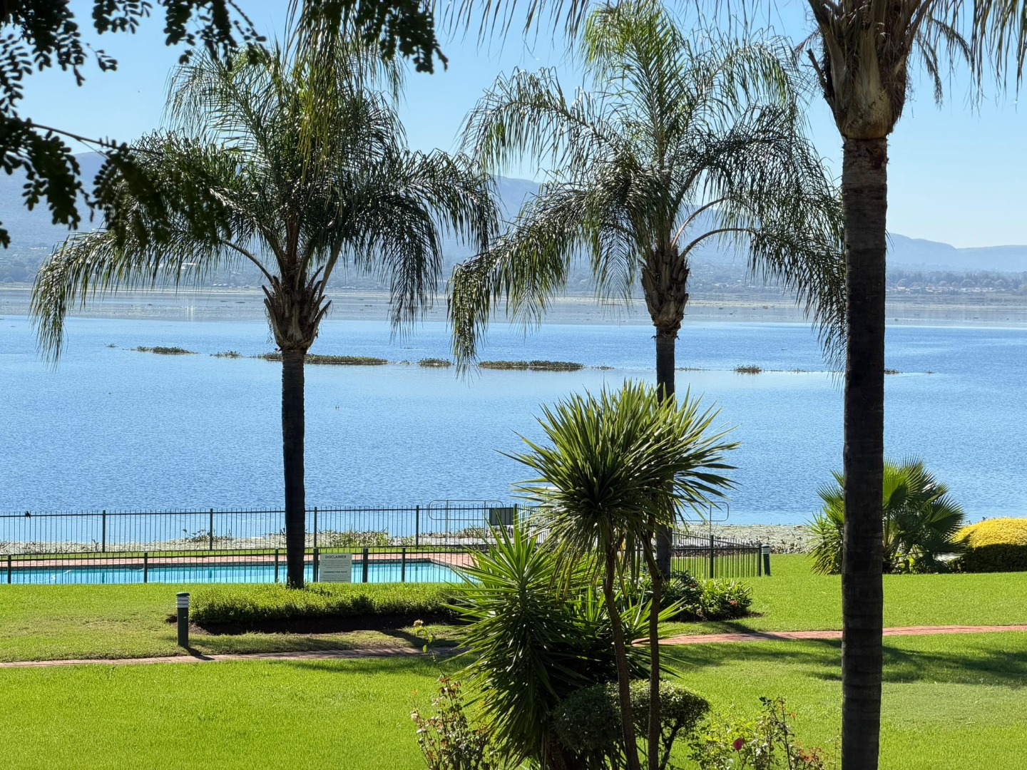 This upgraded two-bedroom duplex offers the ideal lock-up-and-go lifestyle. Designed for easy living, the open-plan living spaces flow onto a covered patio with a built-in braai, overlooking beautifully manicured communal lawns, the dam, and surrounding natural scenery. The recently updated kitchen features modern finishes, a gas hob, and ample cupboard space, making it both stylish and functional. A guest toilet and additional storage are conveniently located on the ground floor. Upstairs, the main bedroom includes an en-suite bathroom and enjoys stunning views of the dam, creating a peaceful retreat. The second bedroom is well-sized with built-in cupboards and is serviced by a separate bathroom with a shower, basin, and toilet. Additional features include air-conditioning in both the living area and main bedroom, a covered carport, and the added benefit of a private boathouse included in the sale.