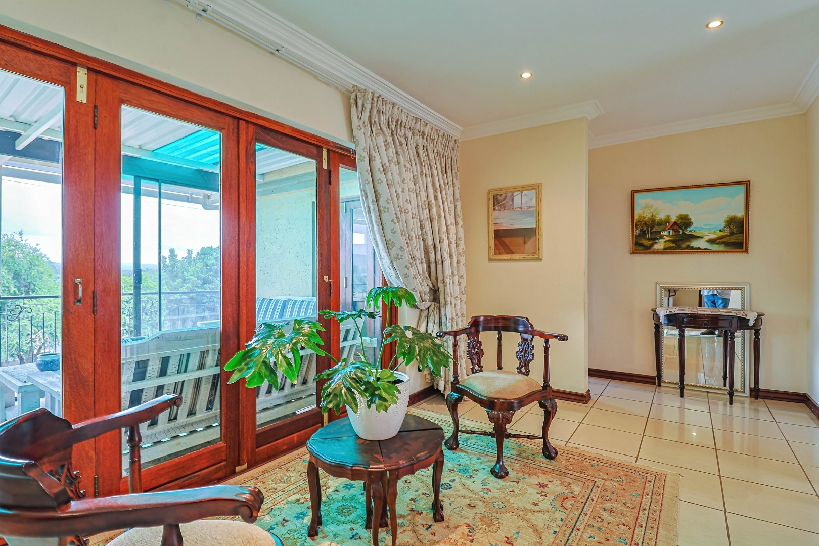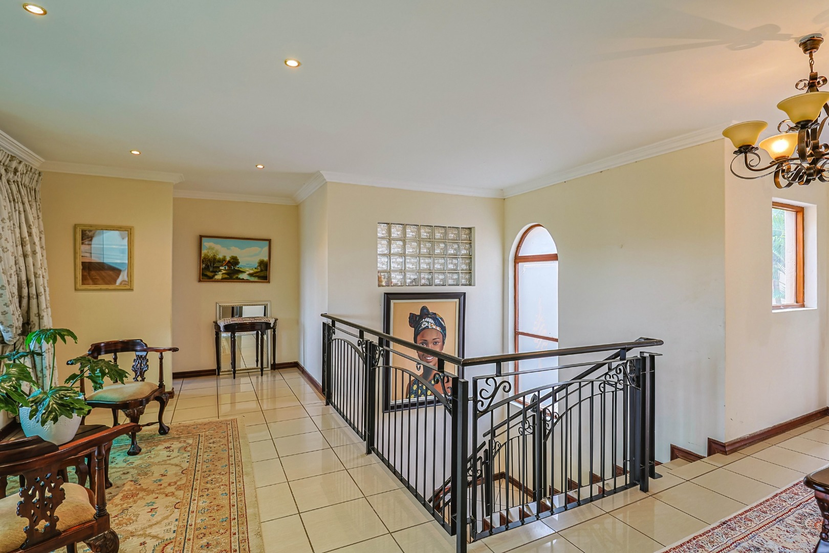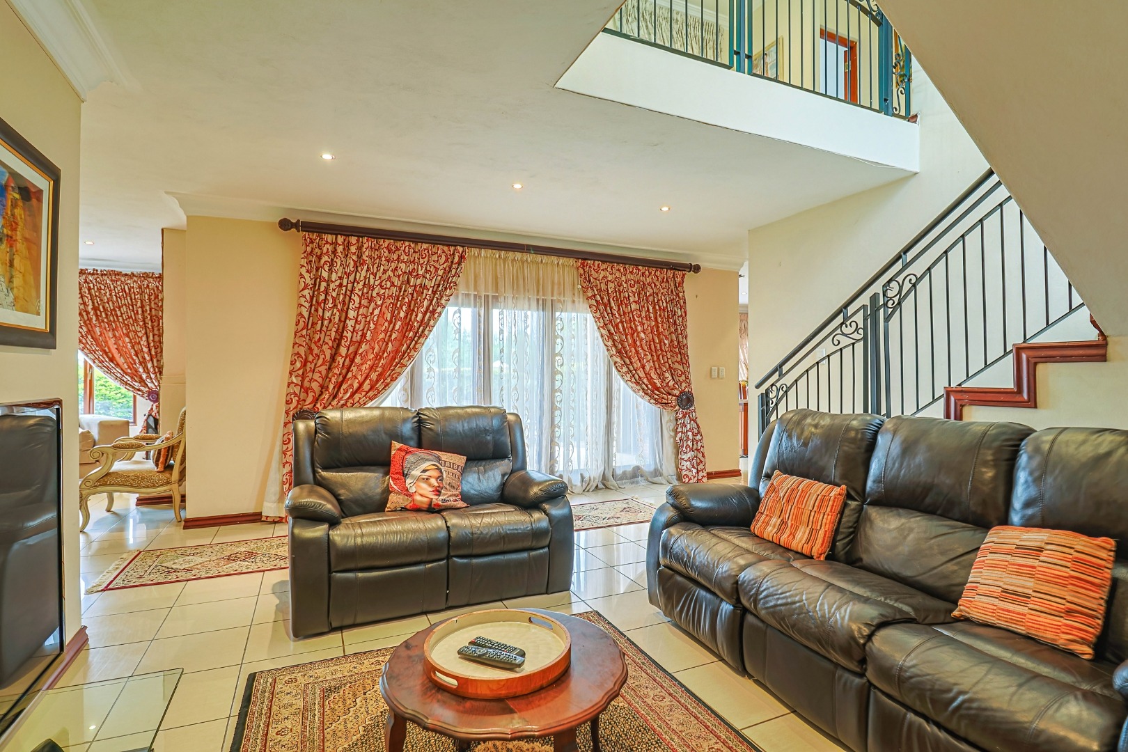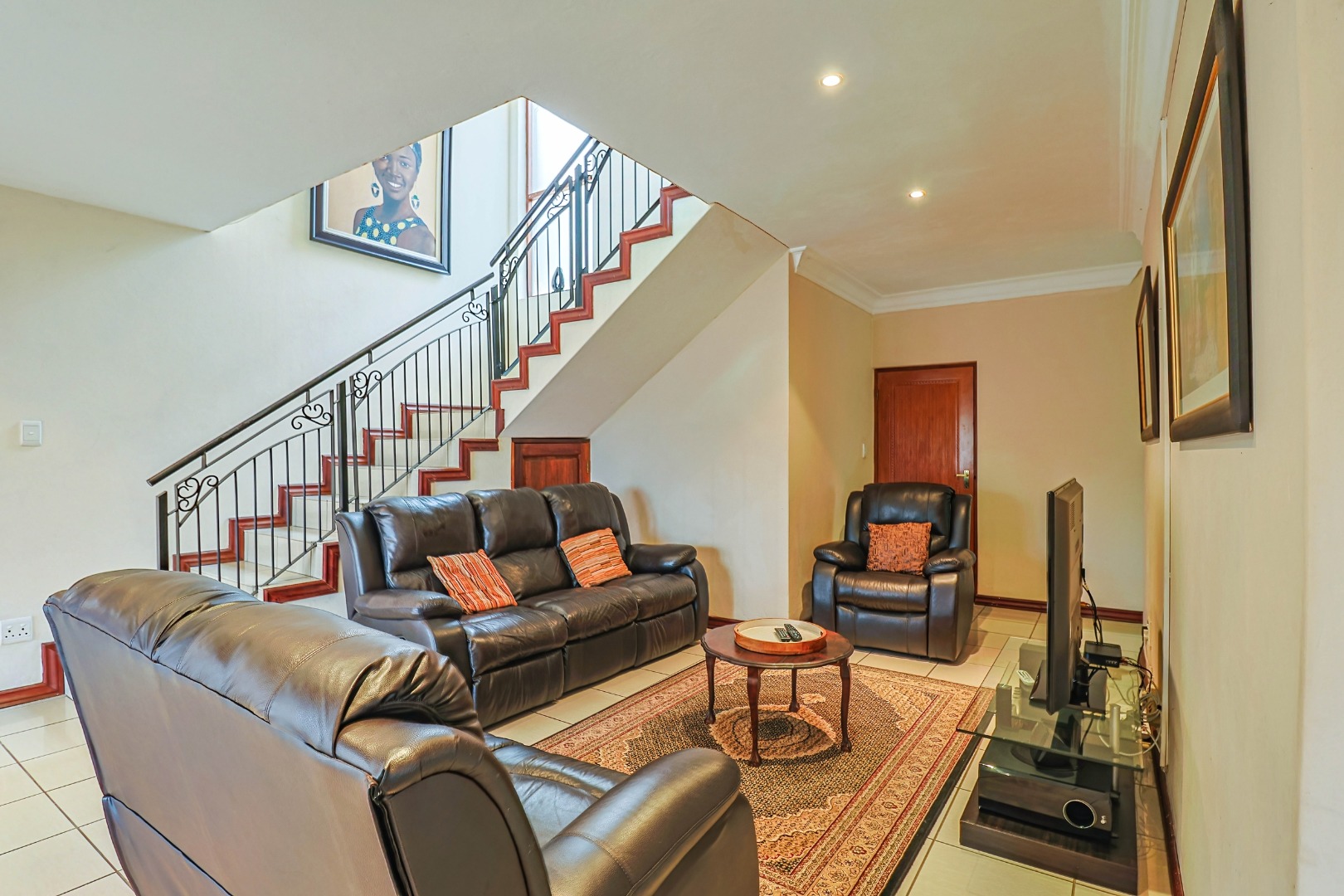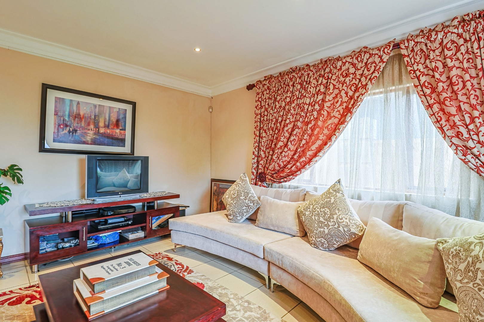 Discover this inviting 3-bedroom, 2-bathroom home set within the secure Kosmos Ridge estate in Hartbeespoort. The property offers excellent kerb appeal with distinctive architecture, wrought-iron railings, a paved brick driveway, and a beautifully maintained tropical garden. Inside, generous living areas include two lounges, a dining room, and a family TV room, all tiled and enhanced by crown moulding, large windows, and a cosy fireplace. An enclosed veranda captures panoramic views of the treed surroundings and distant hills, ideal for relaxing or entertaining.