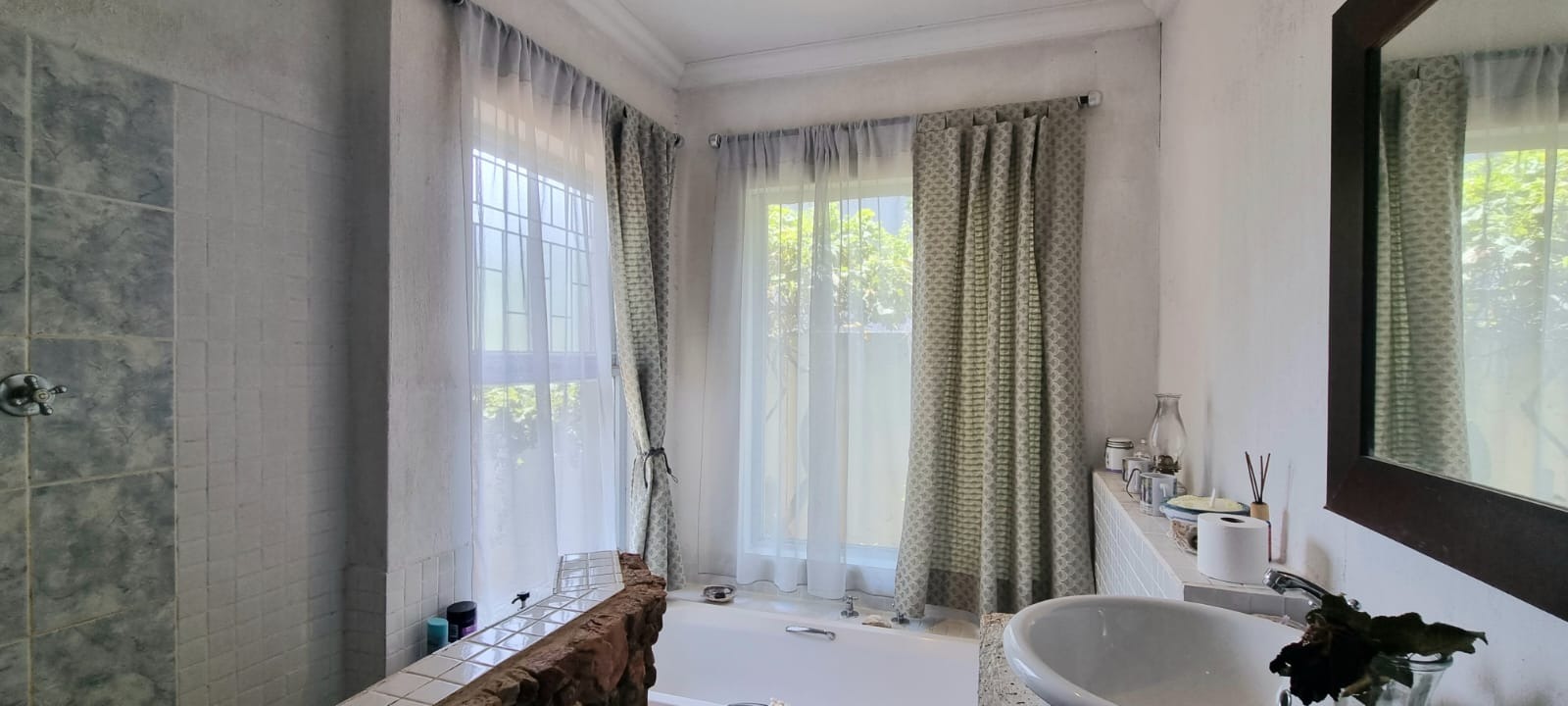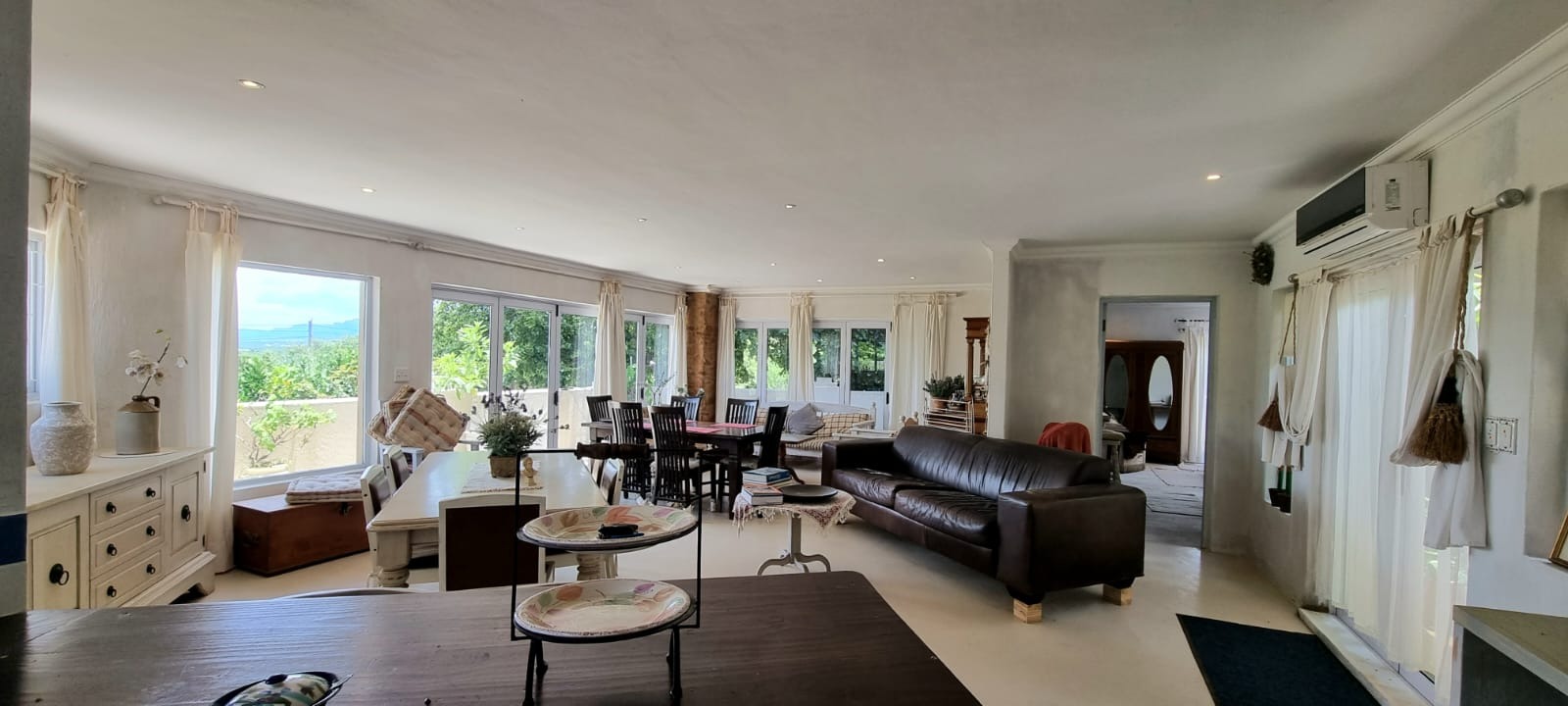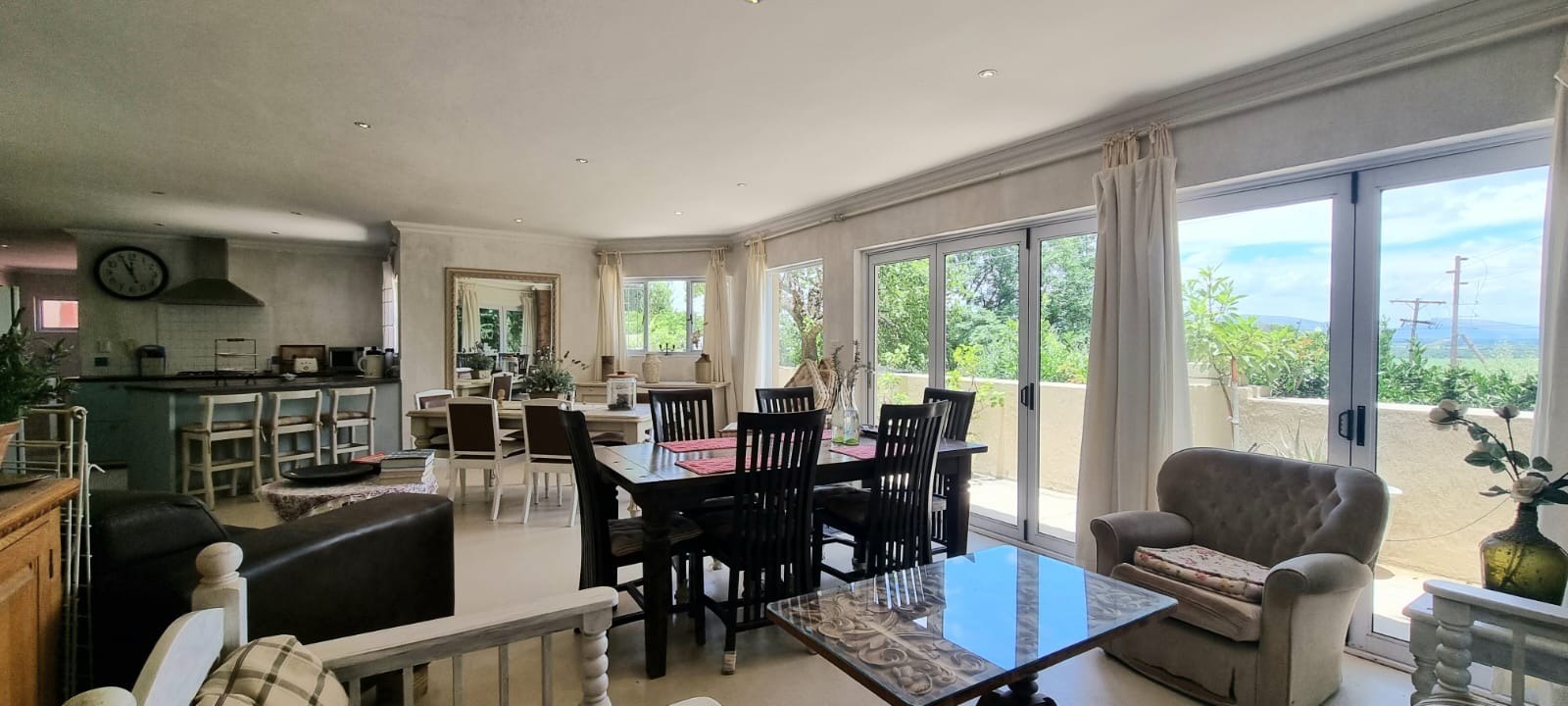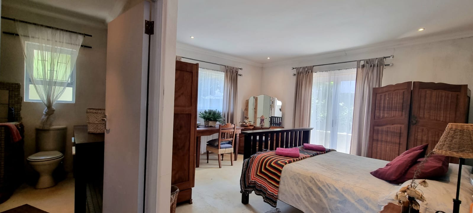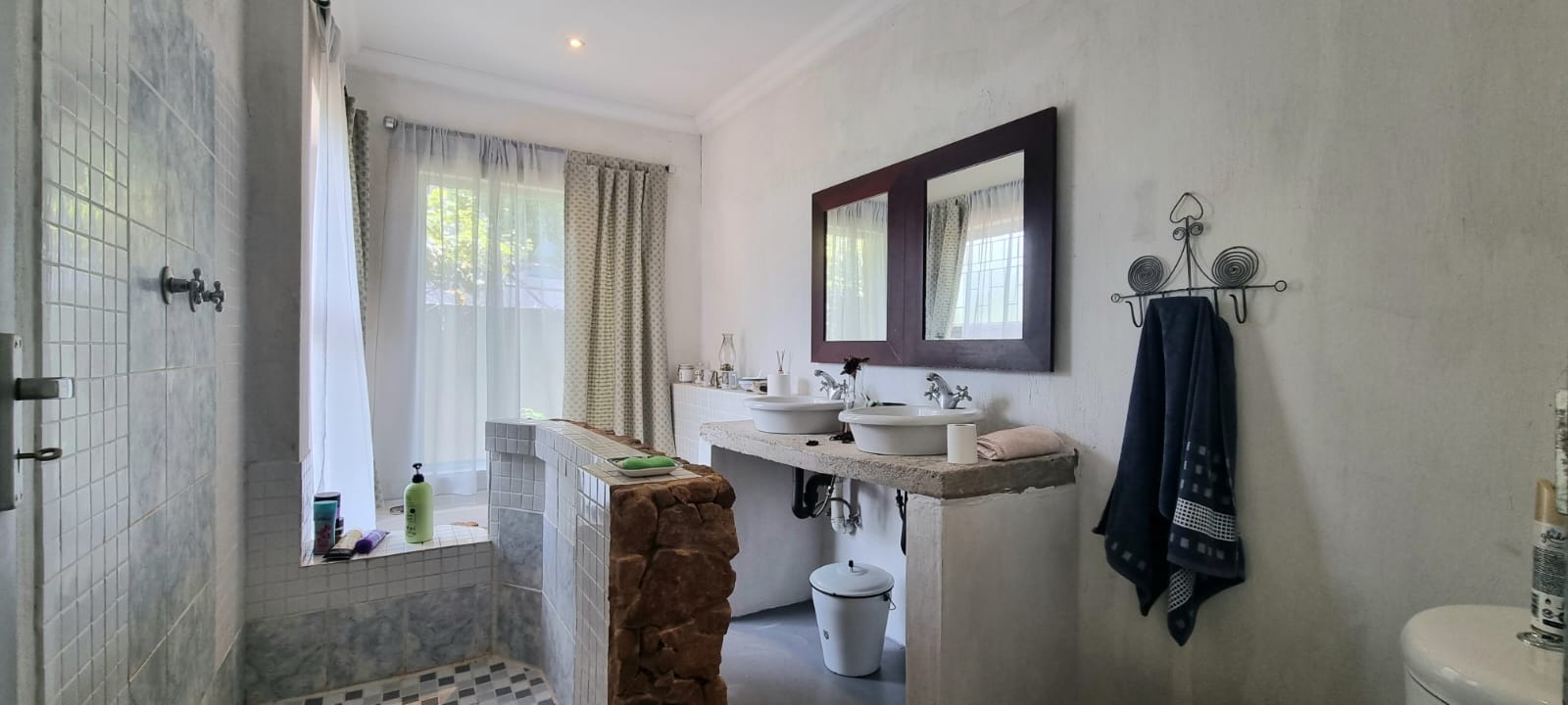 Nestled within the secure Kosmos Ridge Estate in Hartbeespoort, this expansive 6-bedroom, 4-bathroom residence offers a unique dual living opportunity across a generous 400 sqm floor plan on a 622 sqm erf. The property boasts an attractive kerb appeal with a well-maintained paved driveway leading to a two-car garage, complemented by lush, colourful landscaping. Enjoy breathtaking scenic mountain views from various vantage points, providing a tranquil backdrop to everyday life. The interior features an open-plan design, integrating two lounges, a dining room, and two kitchens, ensuring ample space for family living and entertaining. Large windows and sliding glass doors flood the living areas with natural light and provide seamless access to outdoor spaces, enhancing the indoor-outdoor flow. The kitchens, characterized by a rustic/eclectic style, are equipped with essential appliances, ample counter space, and practical islands, catering to diverse culinary needs. Air conditioning and a fireplace ensure comfort throughout the seasons. Accommodation includes six well-proportioned bedrooms, three of which are en-suite, offering privacy and convenience. Some bedrooms feature distinctive exposed brick walls and concrete ceilings, adding character. The property extends its living space outdoors with a built-in braai and sink, perfect for entertaining on the paved patio, surrounded by mature greenery. A balcony/deck provides additional outdoor enjoyment with picturesque views. Security is paramount within this 24-hour security estate, featuring an access gate, alarm system, and electric fencing. Sustainability is addressed with solar panels and water tanks, contributing to reduced utility costs. The property also benefits from an irrigation system, a garden, and is pet-friendly, making it an ideal family home in a sought-after South African location. Key Features: * 6 Bedrooms, 4 Bathrooms (3 En-suite) * Dual Living Potential with 2 Kitchens * 2 Lounges, 1 Dining Room * Built-in Braai and Paved Patio * Double Garage and Paved Driveway * Scenic Mountain Views * Security Estate with 24-hour Security * Solar Panels and Water Tanks * Air Conditioning and Fireplace * Pet-Friendly with Garden and Irrigation