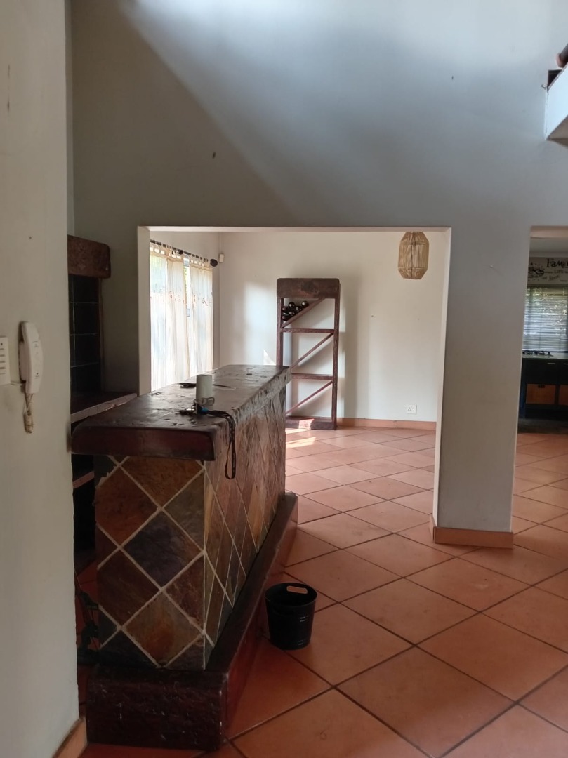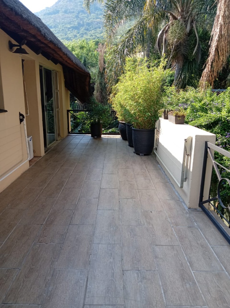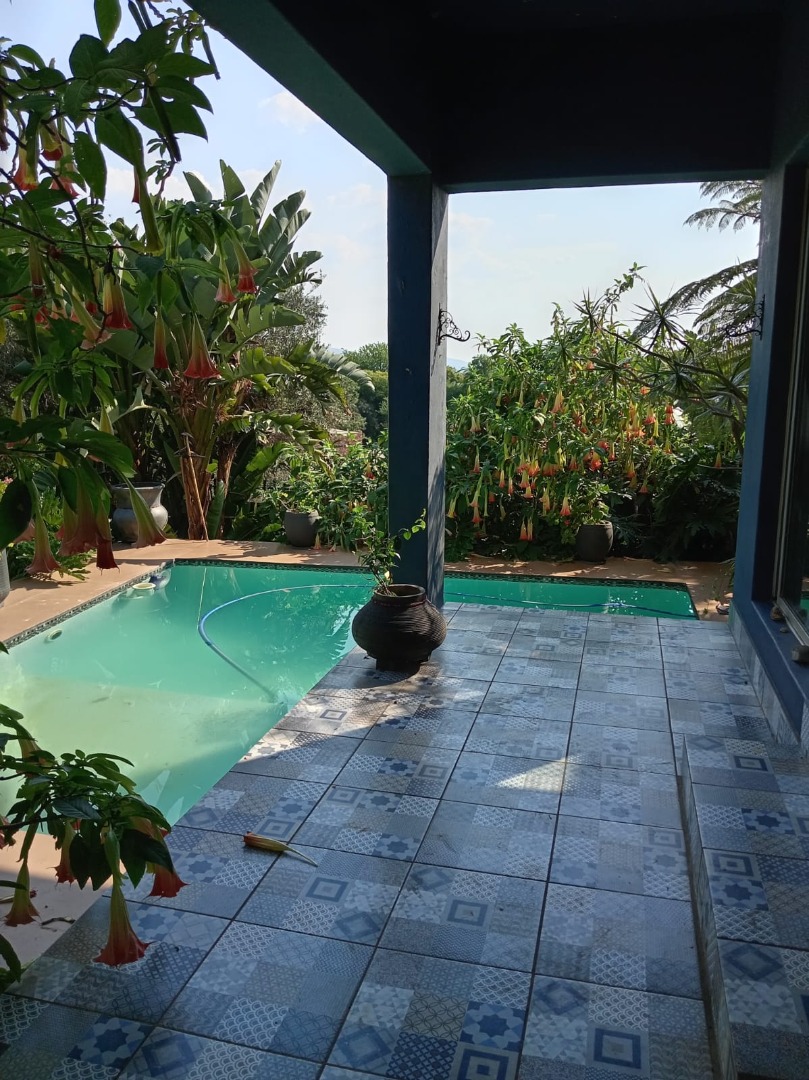 Tucked away in a quiet panhandle street, this thatch roof home offers great potential and charm. The ground floor features a kitchen, dining area, lounge, sun lounge, guest toilet, and a cosy bar corner that opens onto a veranda with an elevated pool and garden. Upstairs you will find three bedrooms, the main en suite, and a shared bathroom for the other two bedrooms.