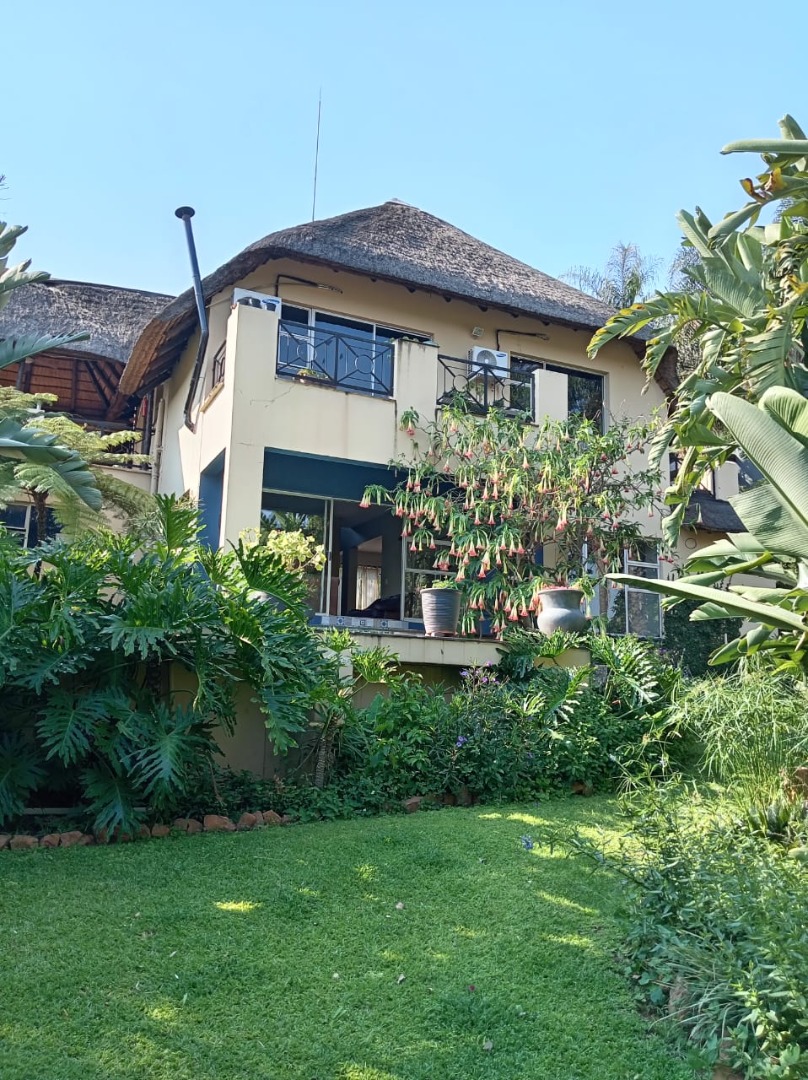 Tucked away in a quiet panhandle street, this thatch roof home offers great potential and charm. The ground floor features a kitchen, dining area, lounge, sun lounge, guest toilet, and a cosy bar corner that opens onto a veranda with an elevated pool and garden. Upstairs you will find three bedrooms, the main en suite, and a shared bathroom for the other two bedrooms.