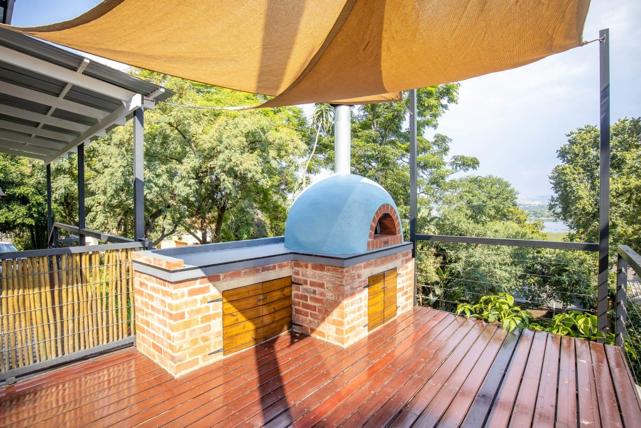 Step outside into the lovely garden, complete with a braai area and a refreshing pool. One of the standout features of this home is the pizza oven, perfect for those memorable family get-togethers. The patio and balcony offer stunning views of the mountains and the dam, creating a peaceful outdoor retreat.