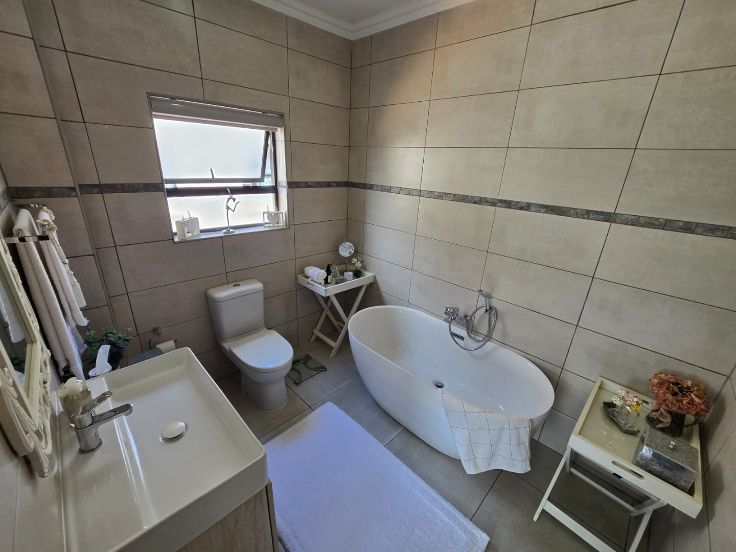 Discover modern eco-estate living in this stylish 2-bedroom, 2-bathroom home situated in the sought-after Leloko Lifestyle and Eco Estate. The home features contemporary architecture with gabled roofs, a stucco finish, and excellent kerb appeal. Inside, light-filled open-plan living areas boast high vaulted ceilings with exposed wooden beams and elegant tiled flooring, creating a spacious and welcoming atmosphere.