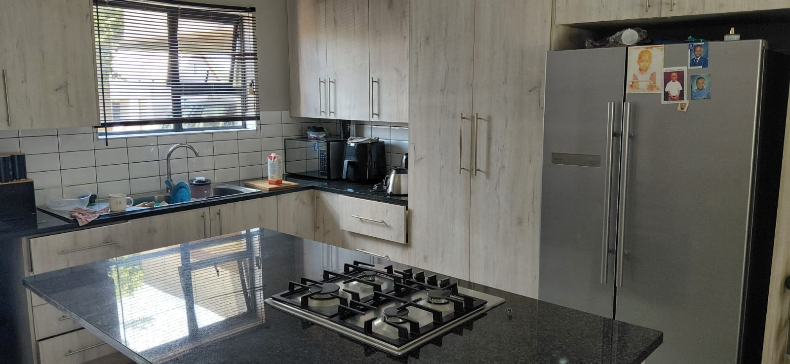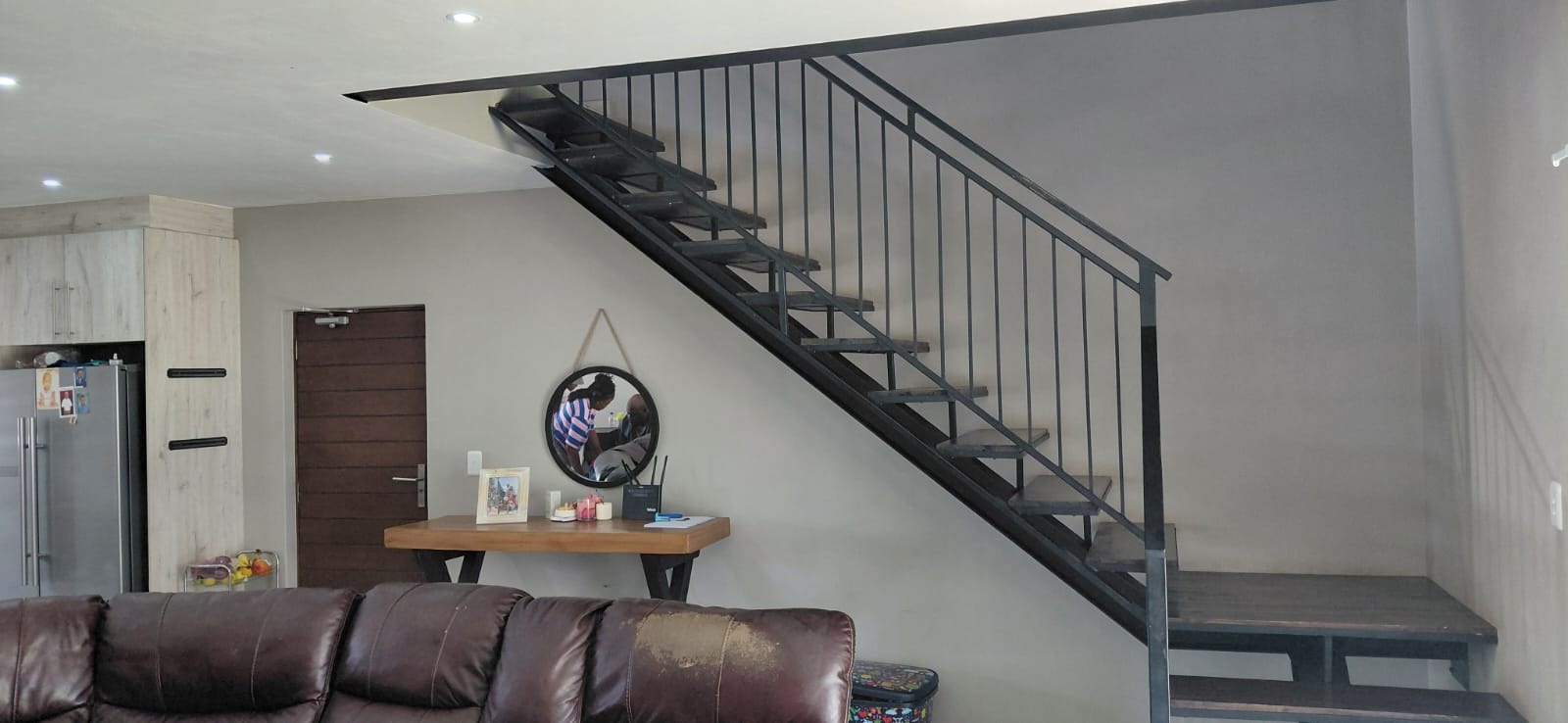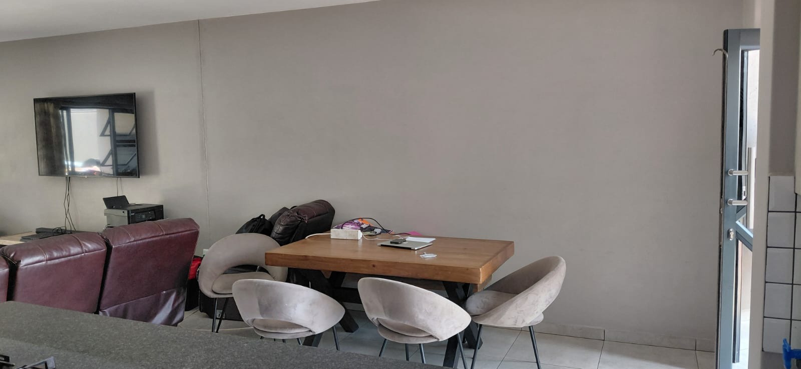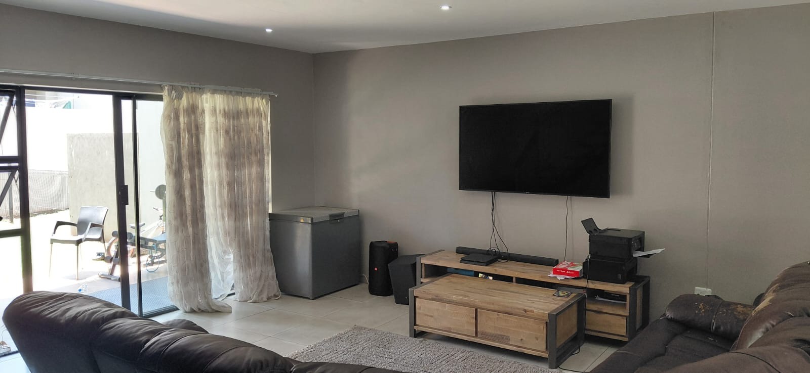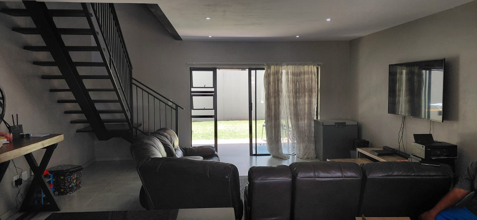 The ground floor welcomes you with an open-plan entrance leading into a spacious lounge and dining area, seamlessly connected to a modern kitchen designed for easy everyday living and entertaining. Sliding doors open onto a private patio with a built-in braai and a manageable garden - ideal for relaxed weekends and family gatherings. The property also includes a single garage and an under-roof carport.