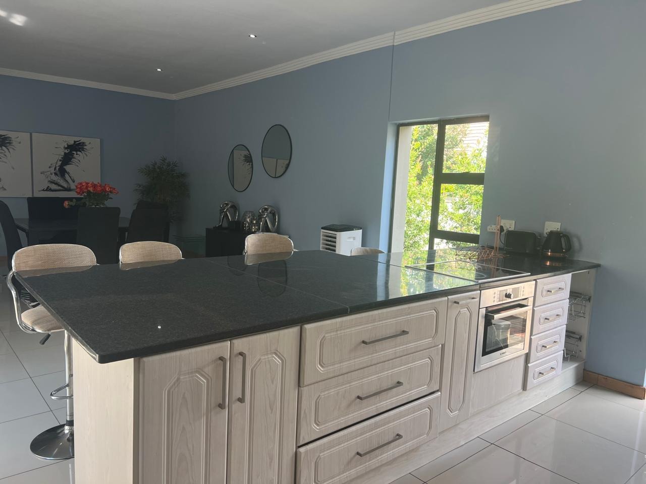 perfect for both formal gatherings and relaxed everyday moments. At the heart of the home is a well-appointed open-plan kitchen and dining area designed for entertaining and quality family time. The patio extends from the lounge, inviting indoor-outdoor living and overlooking a private garden that’s peaceful and brimming with potential. With four generously sized bedrooms and three bathrooms, there’s room for the whole family and more. The main bedroom features an en-suite, while a second en-suite is attached to one of the guest bedrooms — perfect for teens, guests, or extended family. The remaining bedrooms share a well-positioned third bathroom. Whether you’re looking to refresh the finishes, this property offers incredible scope to add value and tailor the space to your unique style.