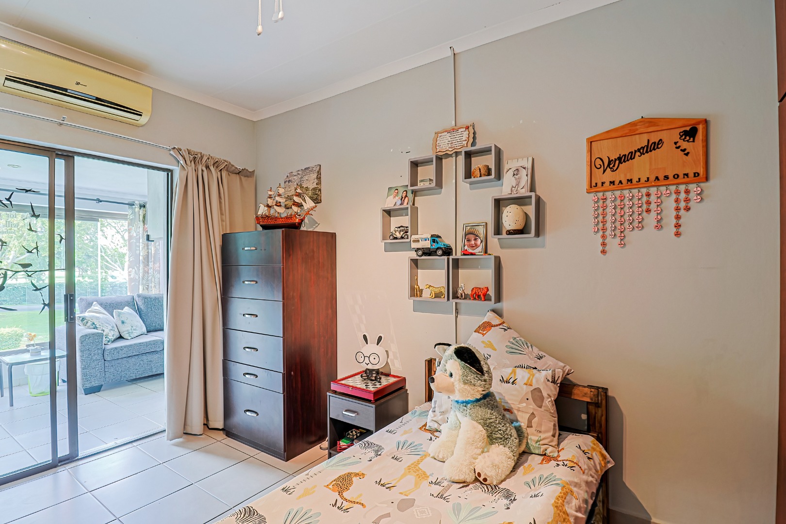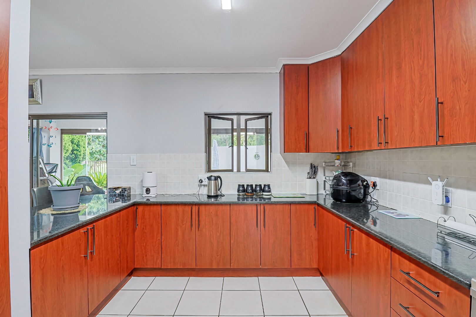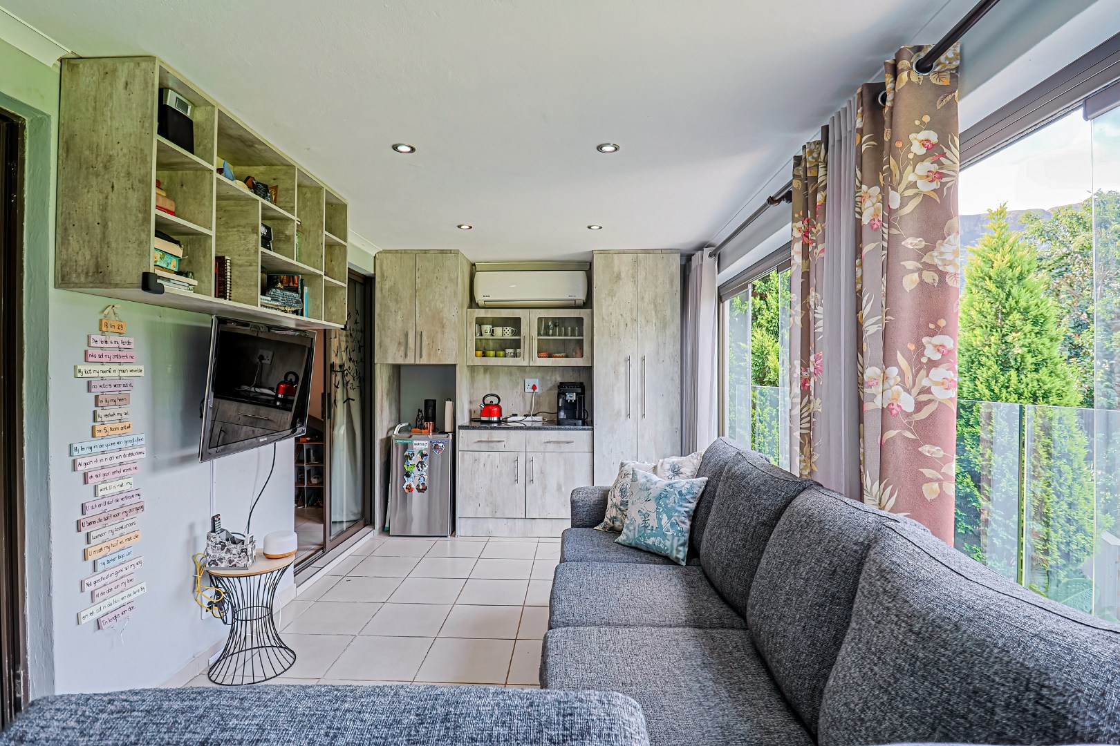 Upstairs, three spacious bedrooms open onto undercover balconies, allowing for elevated views and abundant natural light. The home offers three bedrooms and two-and-a-half bathrooms in total, thoughtfully designed for comfortable family living. Additional features include two inverters, two batteries, 14 solar panels, five air conditioners, three Big Blu water filtration systems, and filtered drinking water in the kitchen. Located within a secure golf and wildlife estate with 24-hour security, residents also enjoy access to Magalies Park facilities for a nominal annual fee.