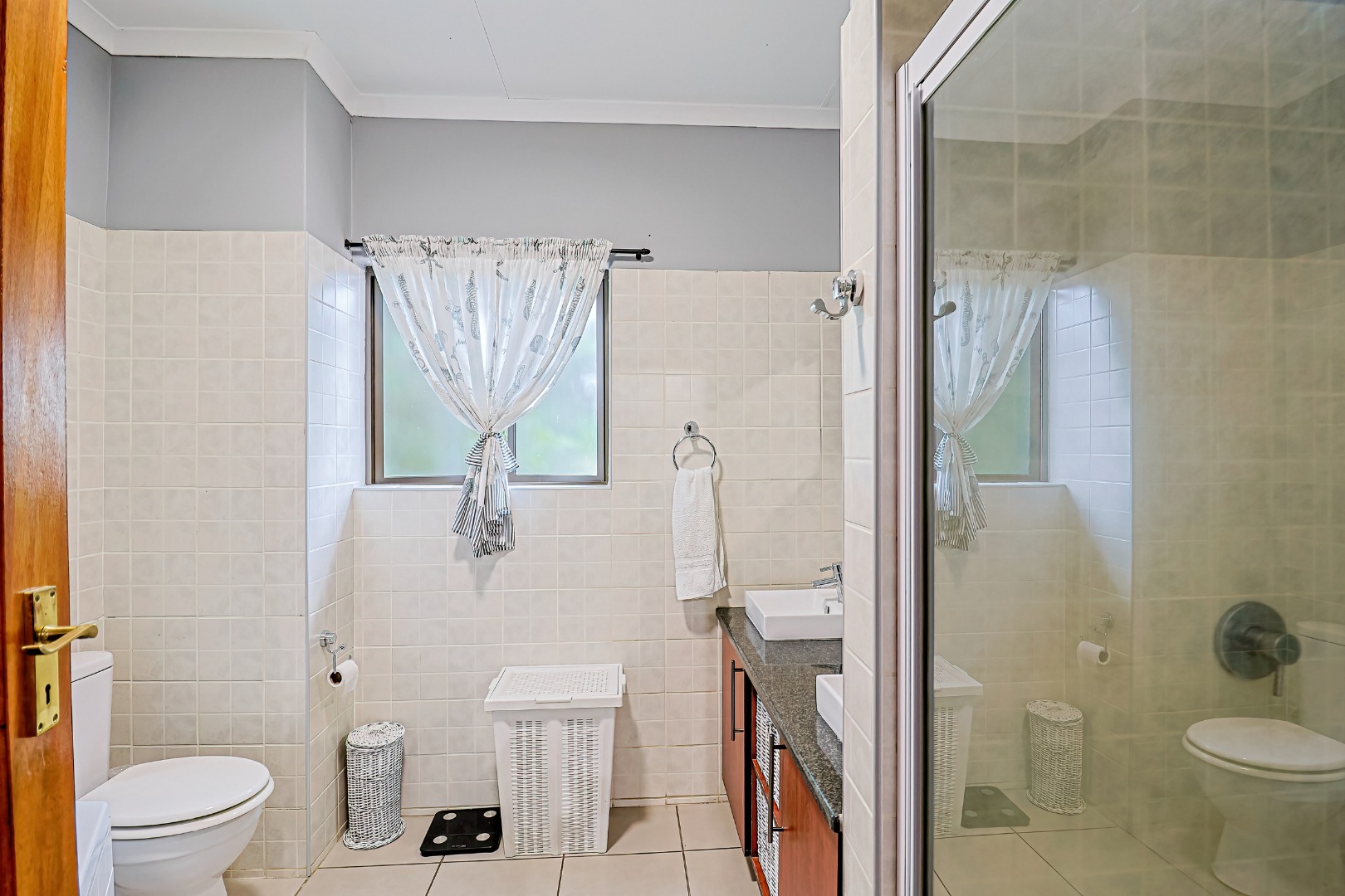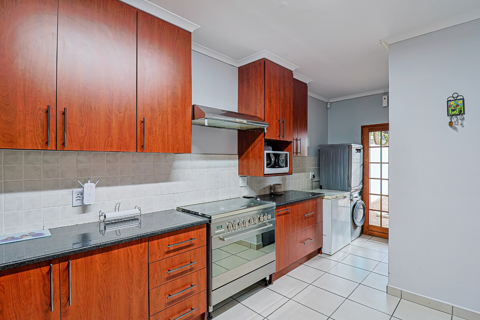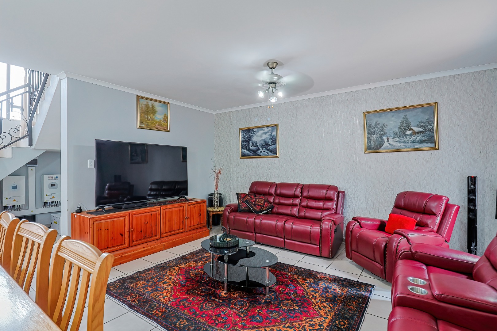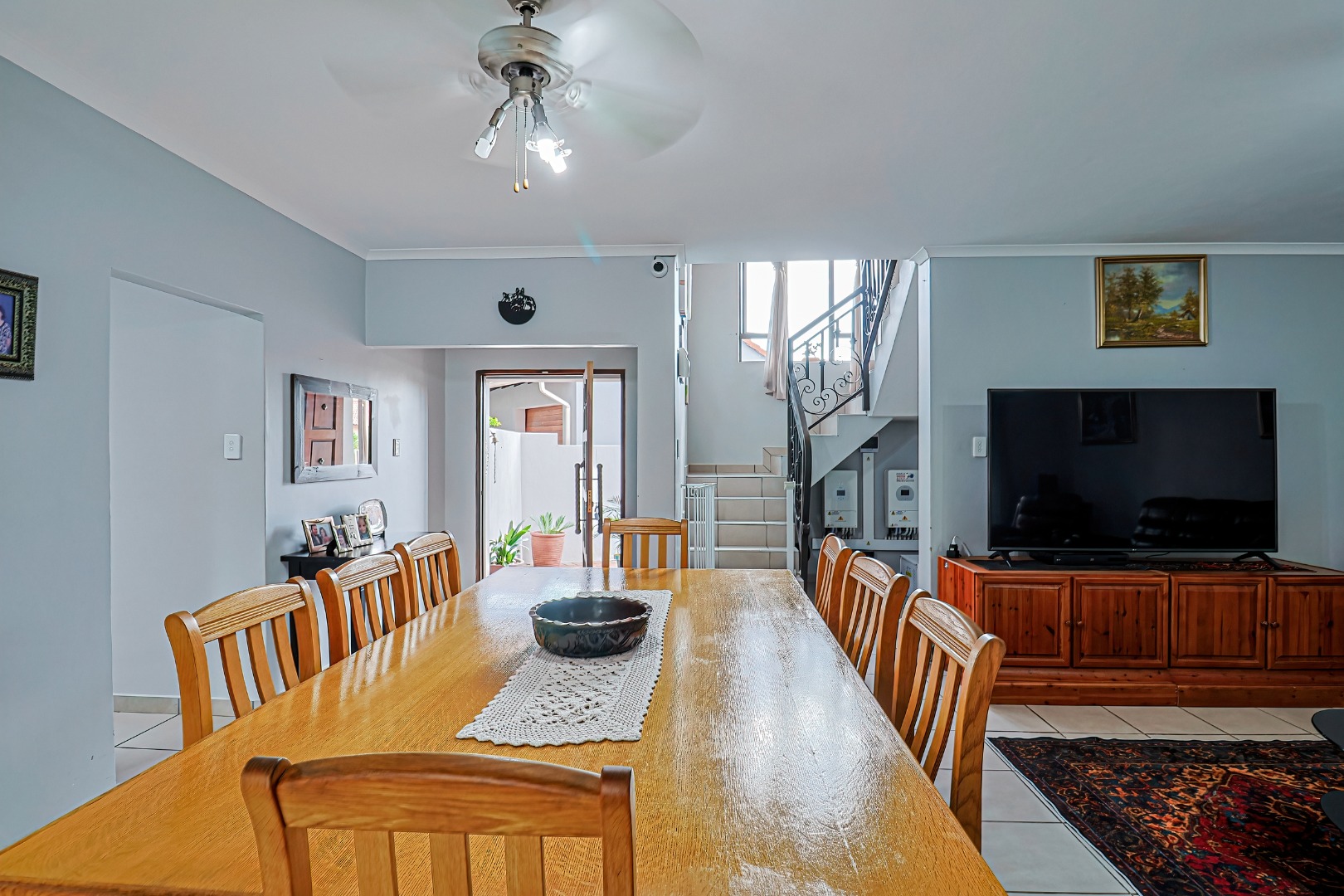 Upstairs, three spacious bedrooms open onto undercover balconies, allowing for elevated views and abundant natural light. The home offers three bedrooms and two-and-a-half bathrooms in total, thoughtfully designed for comfortable family living. Additional features include two inverters, two batteries, 14 solar panels, five air conditioners, three Big Blu water filtration systems, and filtered drinking water in the kitchen. Located within a secure golf and wildlife estate with 24-hour security, residents also enjoy access to Magalies Park facilities for a nominal annual fee.