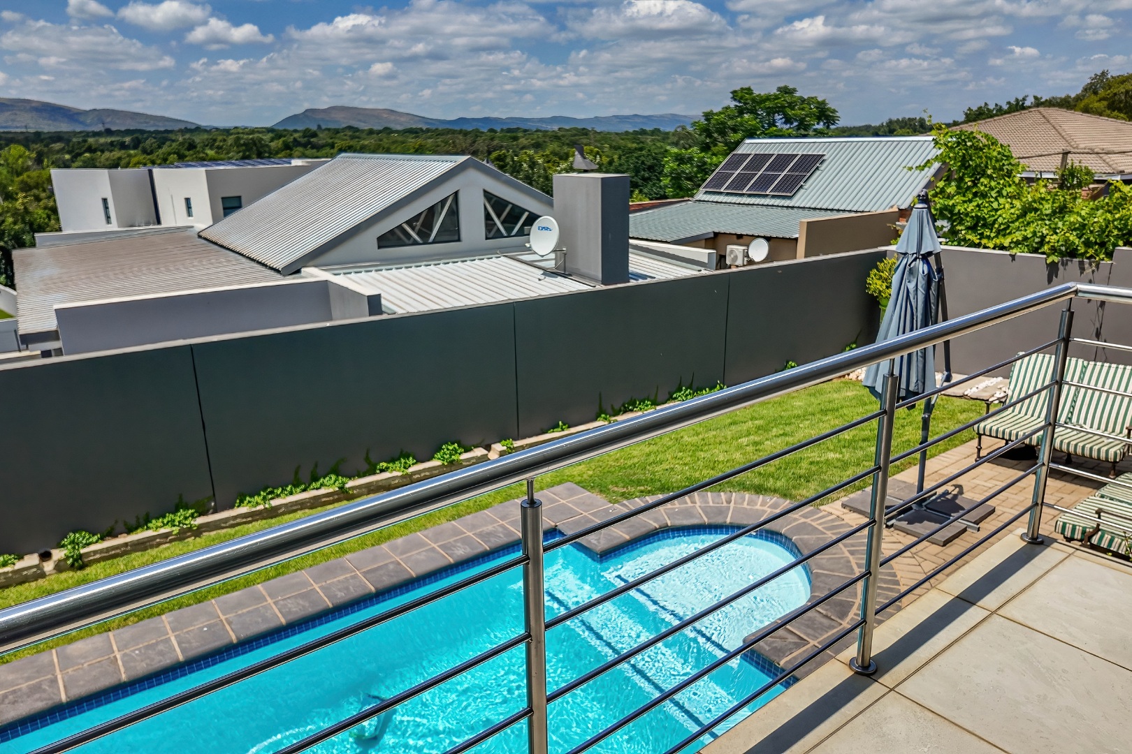 Situated within the sought-after Magalies River Club, this beautiful double-storey home offers a lifestyle defined by tranquillity, mountain views, roaming wildlife, and secure estate living. Enjoy full access to the 18-hole golf course and a range of facilities through Magalies Park at a nominal annual fee. The ground floor features spacious open-plan reception areas flowing seamlessly to an undercover patio with a built-in braai, a modern kitchen with centre island, gas hob and electric oven, a separate scullery and laundry with space for three appliances, a dedicated study, guest toilet, and a double automated garage with direct access into the home. The property is fully supported by an off-the-grid solar system, including 4 × 5kW batteries, an 8kW inverter, and 14 × 550W solar panels.