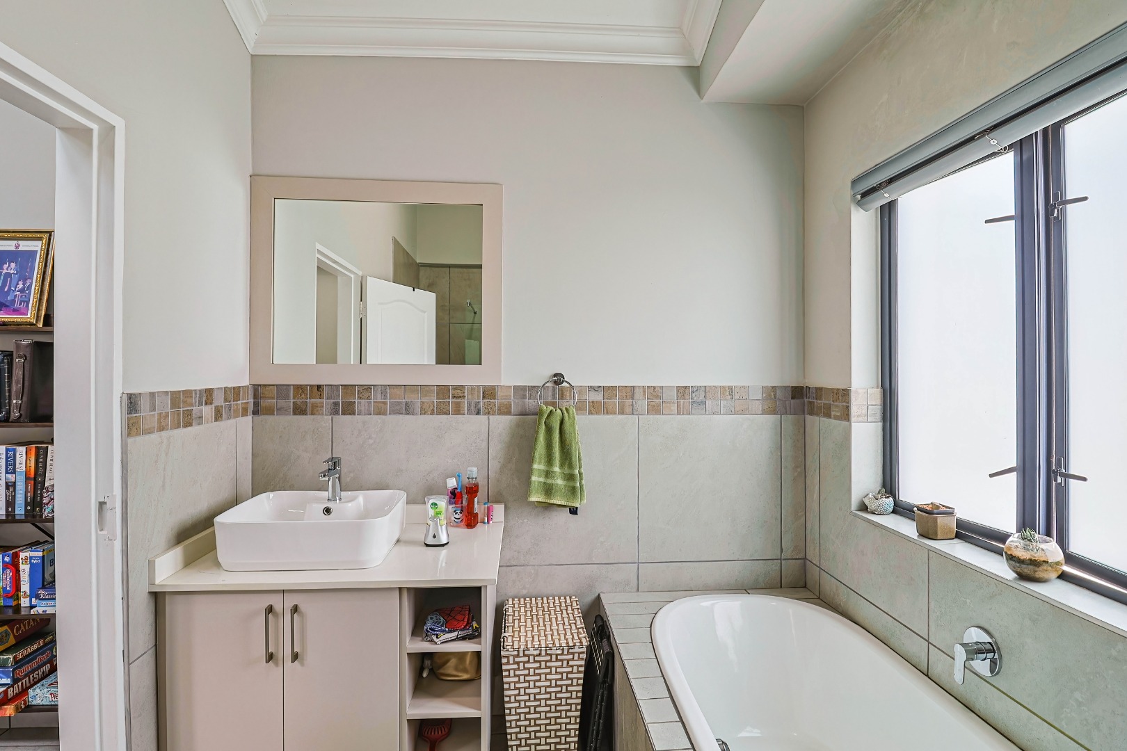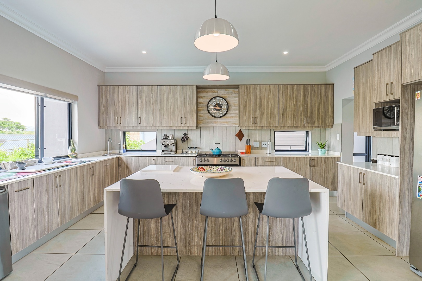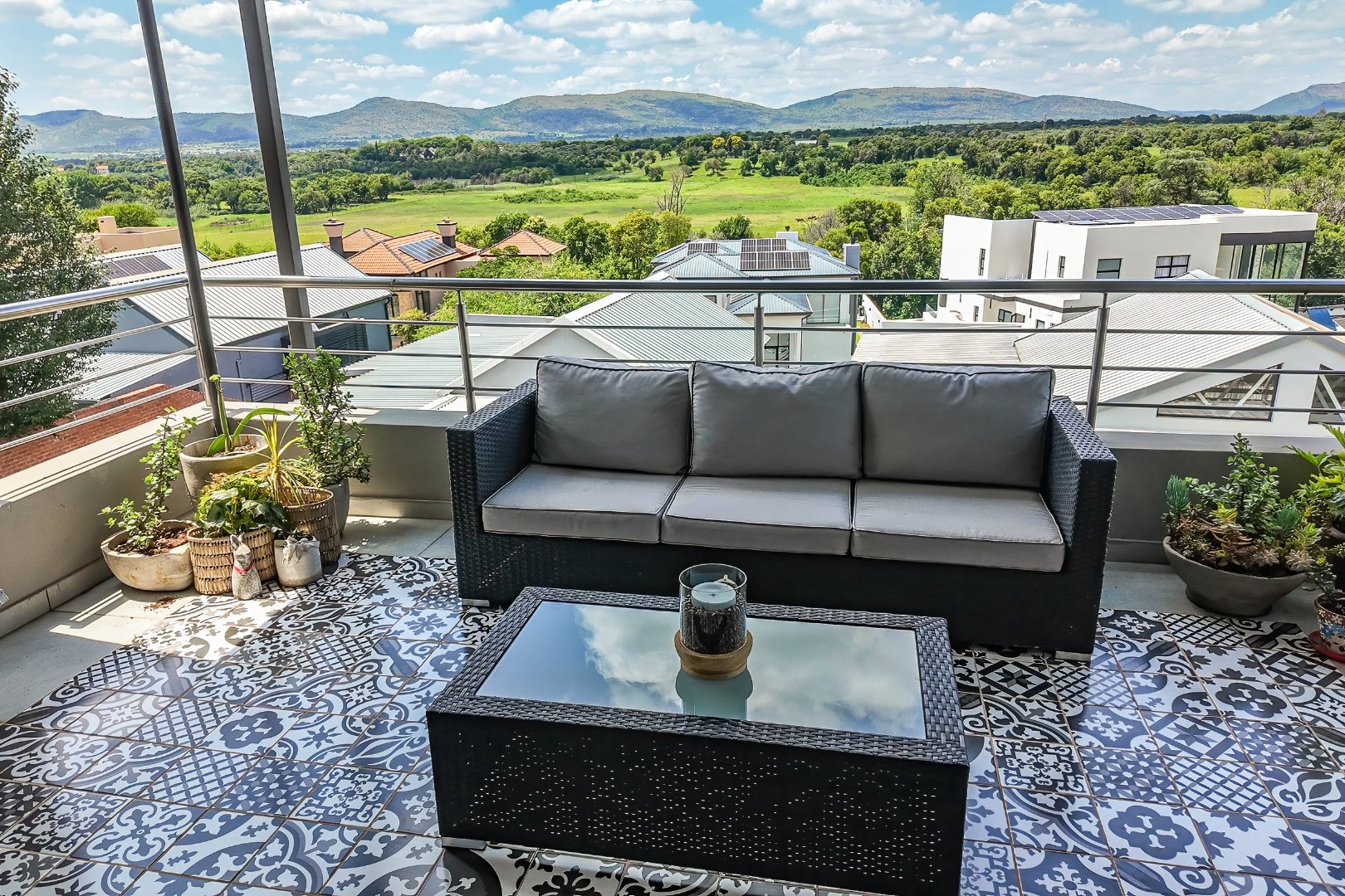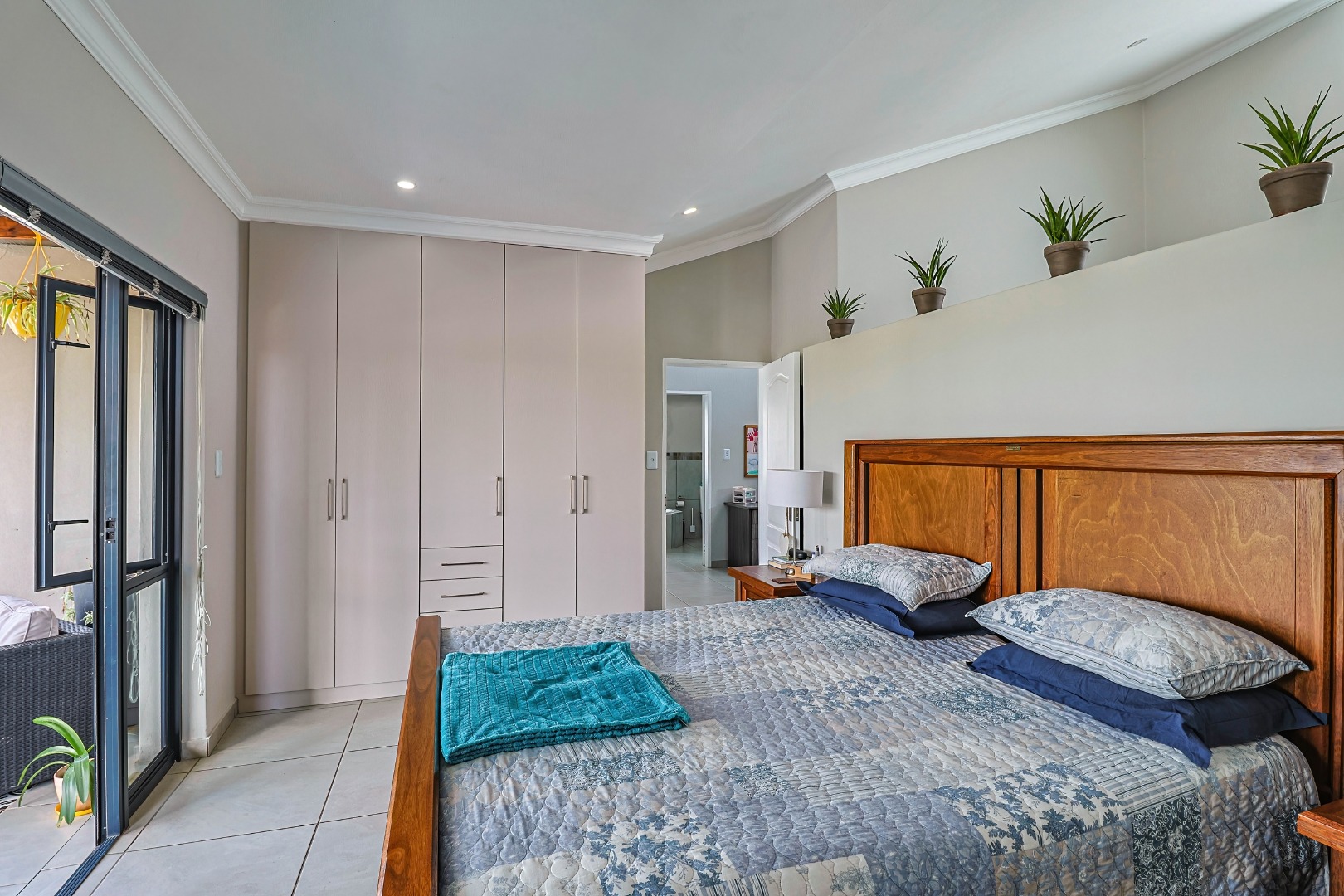 Upstairs, you’ll find three well-appointed bedrooms with built-in cupboards (two with air-conditioning), two modern bathrooms including a main en-suite, and a light-filled pajama lounge ideal for unwinding. Additional highlights include a sparkling swimming pool, beautiful natural surroundings, and top-tier estate security—offering a perfect blend of comfort, style, and serenity.
