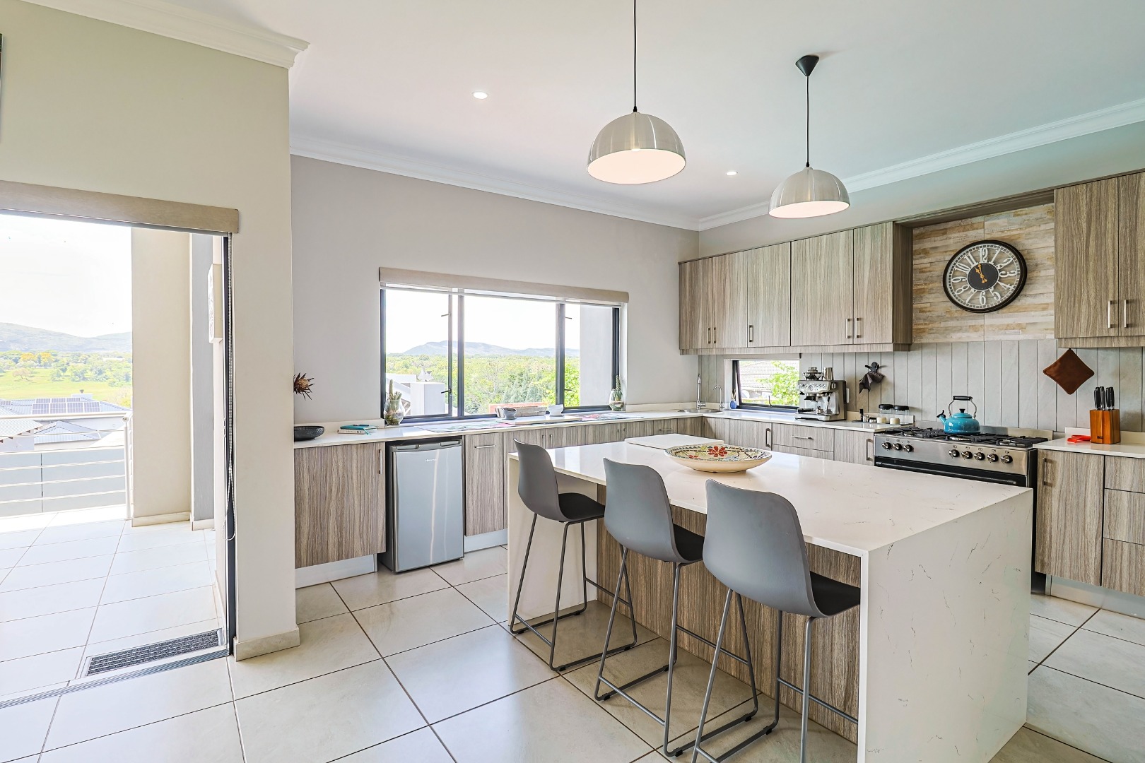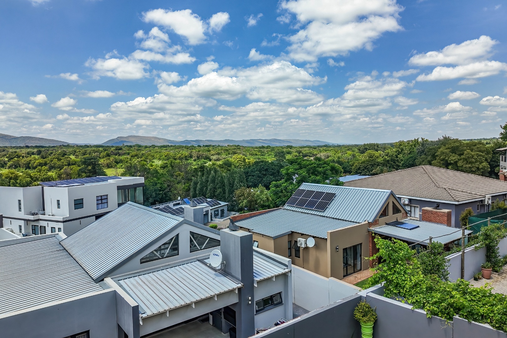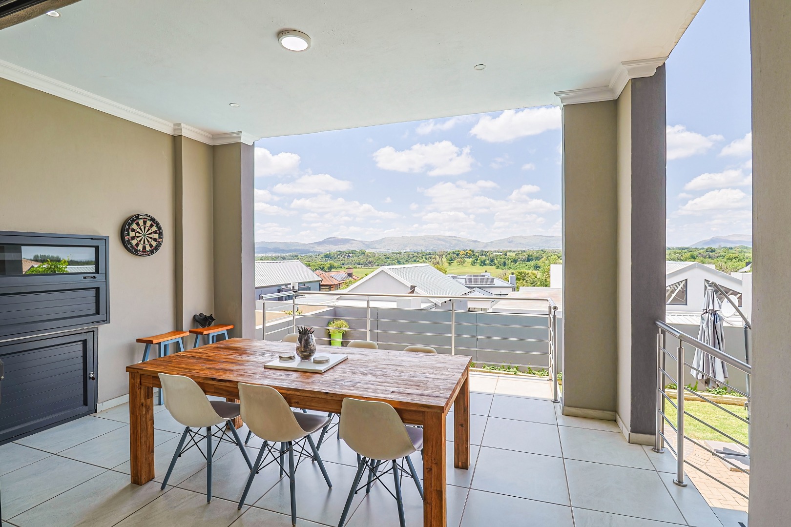 Situated within the sought-after Magalies River Club, this beautiful double-storey home offers a lifestyle defined by tranquillity, mountain views, roaming wildlife, and secure estate living. Enjoy full access to the 18-hole golf course and a range of facilities through Magalies Park at a nominal annual fee. The ground floor features spacious open-plan reception areas flowing seamlessly to an undercover patio with a built-in braai, a modern kitchen with centre island, gas hob and electric oven, a separate scullery and laundry with space for three appliances, a dedicated study, guest toilet, and a double automated garage with direct access into the home. The property is fully supported by an off-the-grid solar system, including 4 × 5kW batteries, an 8kW inverter, and 14 × 550W solar panels.