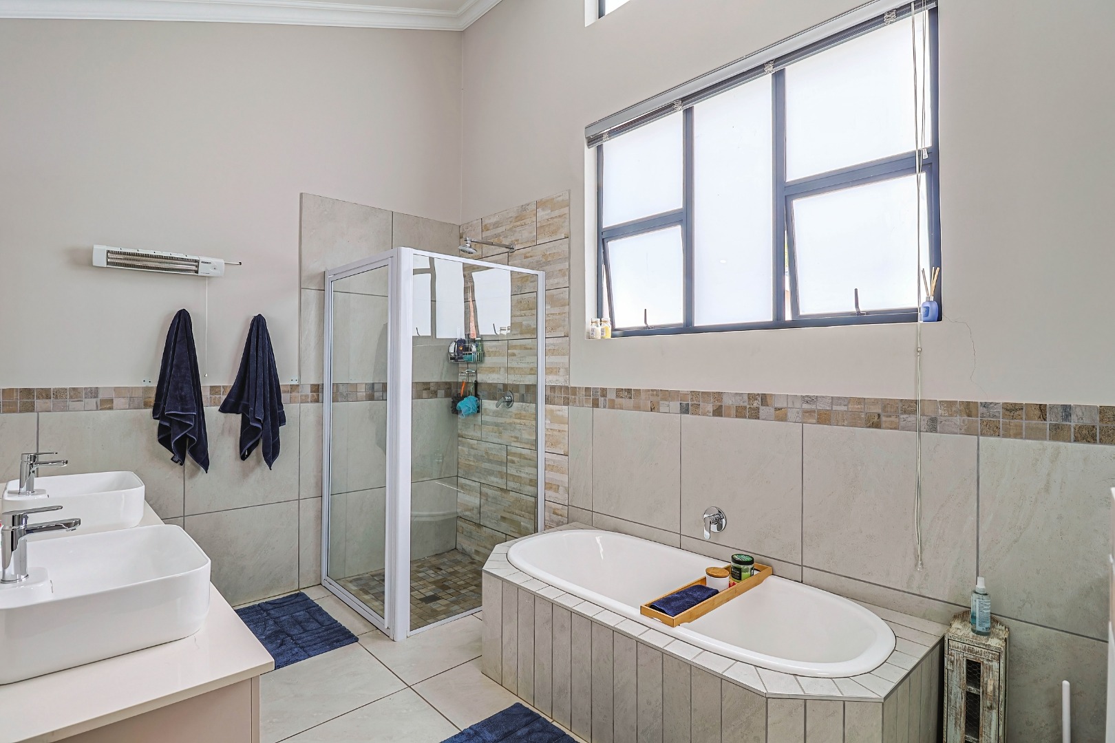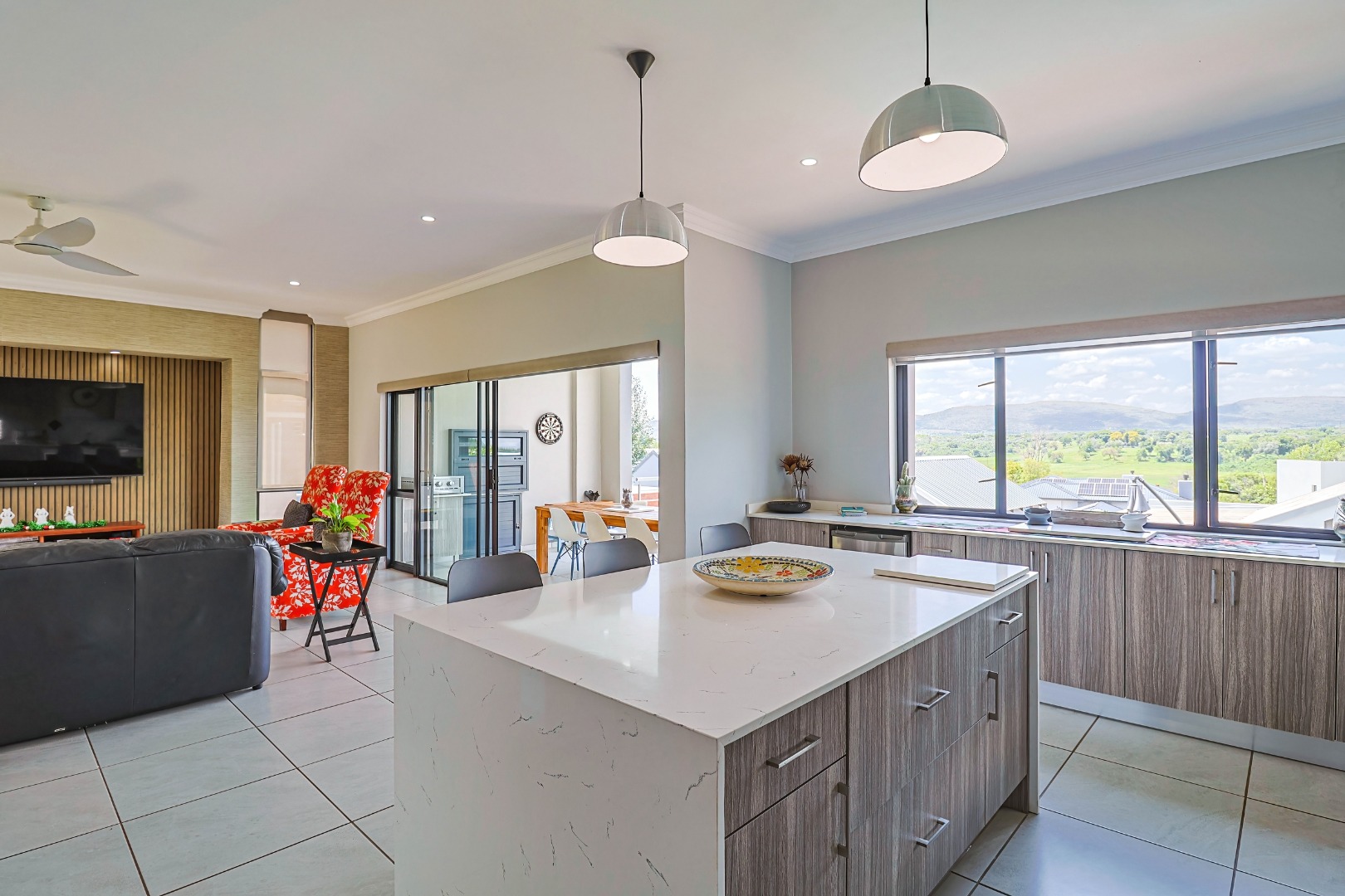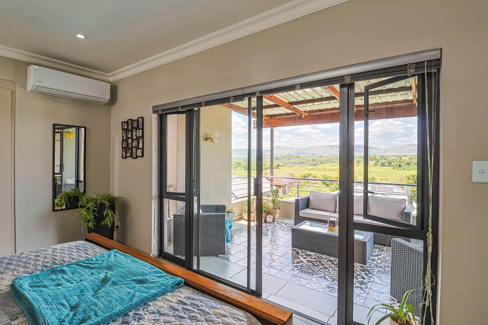 Situated within the sought-after Magalies River Club, this beautiful double-storey home offers a lifestyle defined by tranquillity, mountain views, roaming wildlife, and secure estate living. Enjoy full access to the 18-hole golf course and a range of facilities through Magalies Park at a nominal annual fee. The ground floor features spacious open-plan reception areas flowing seamlessly to an undercover patio with a built-in braai, a modern kitchen with centre island, gas hob and electric oven, a separate scullery and laundry with space for three appliances, a dedicated study, guest toilet, and a double automated garage with direct access into the home. The property is fully supported by an off-the-grid solar system, including 4 × 5kW batteries, an 8kW inverter, and 14 × 550W solar panels.
