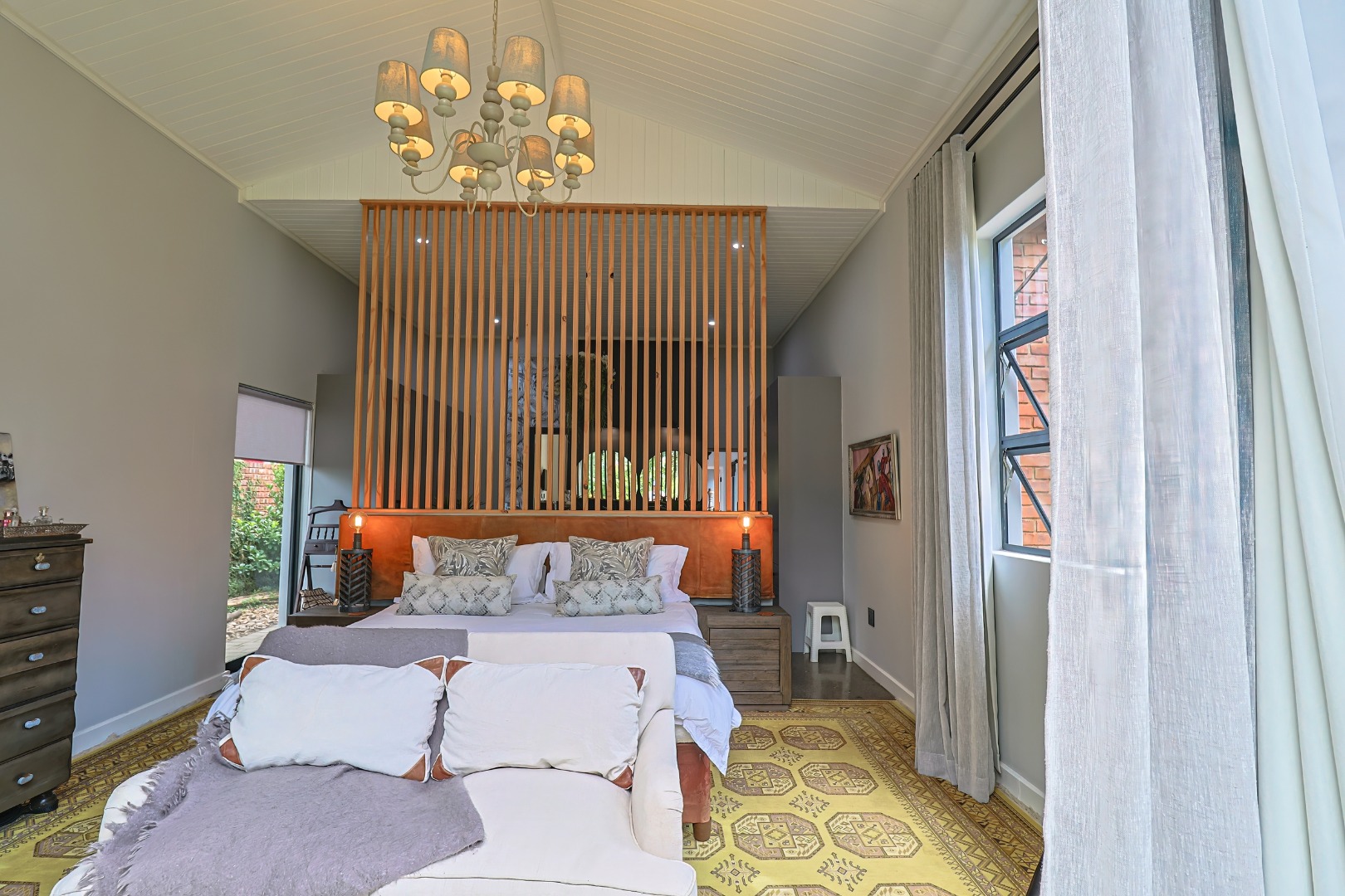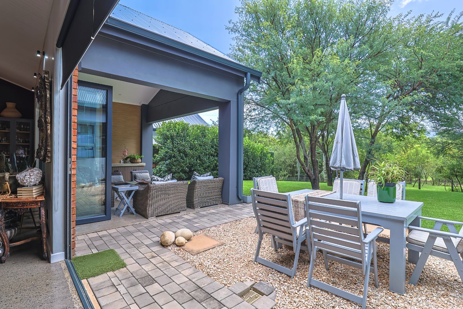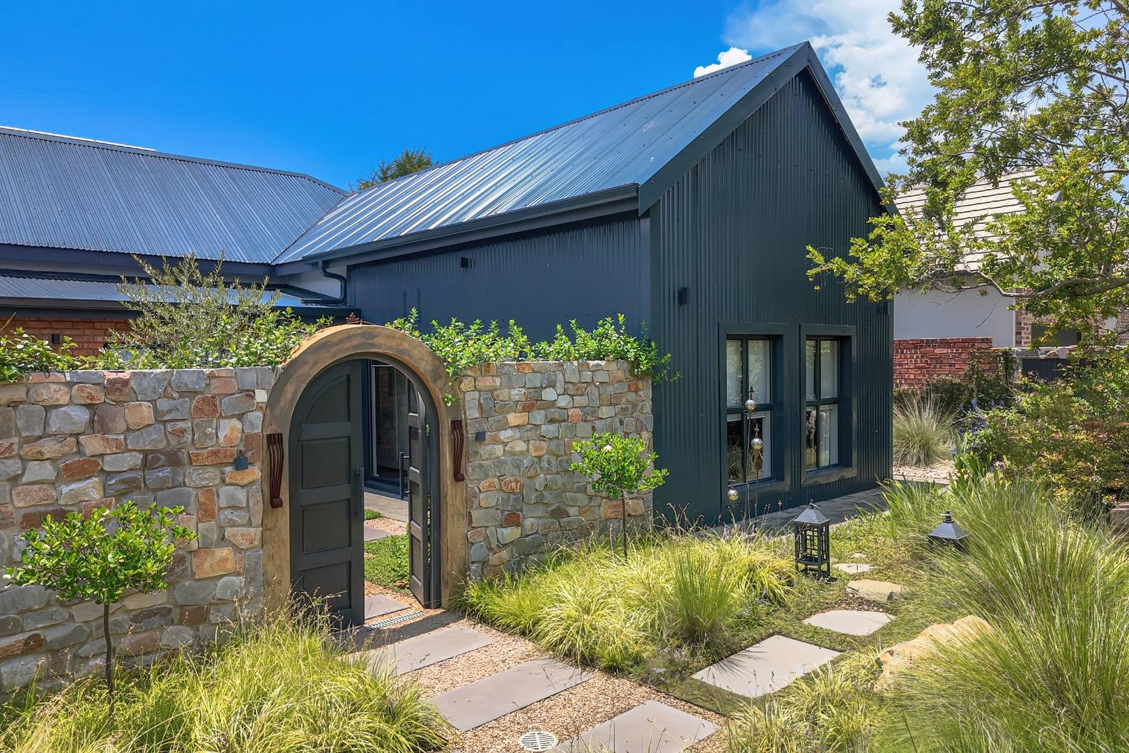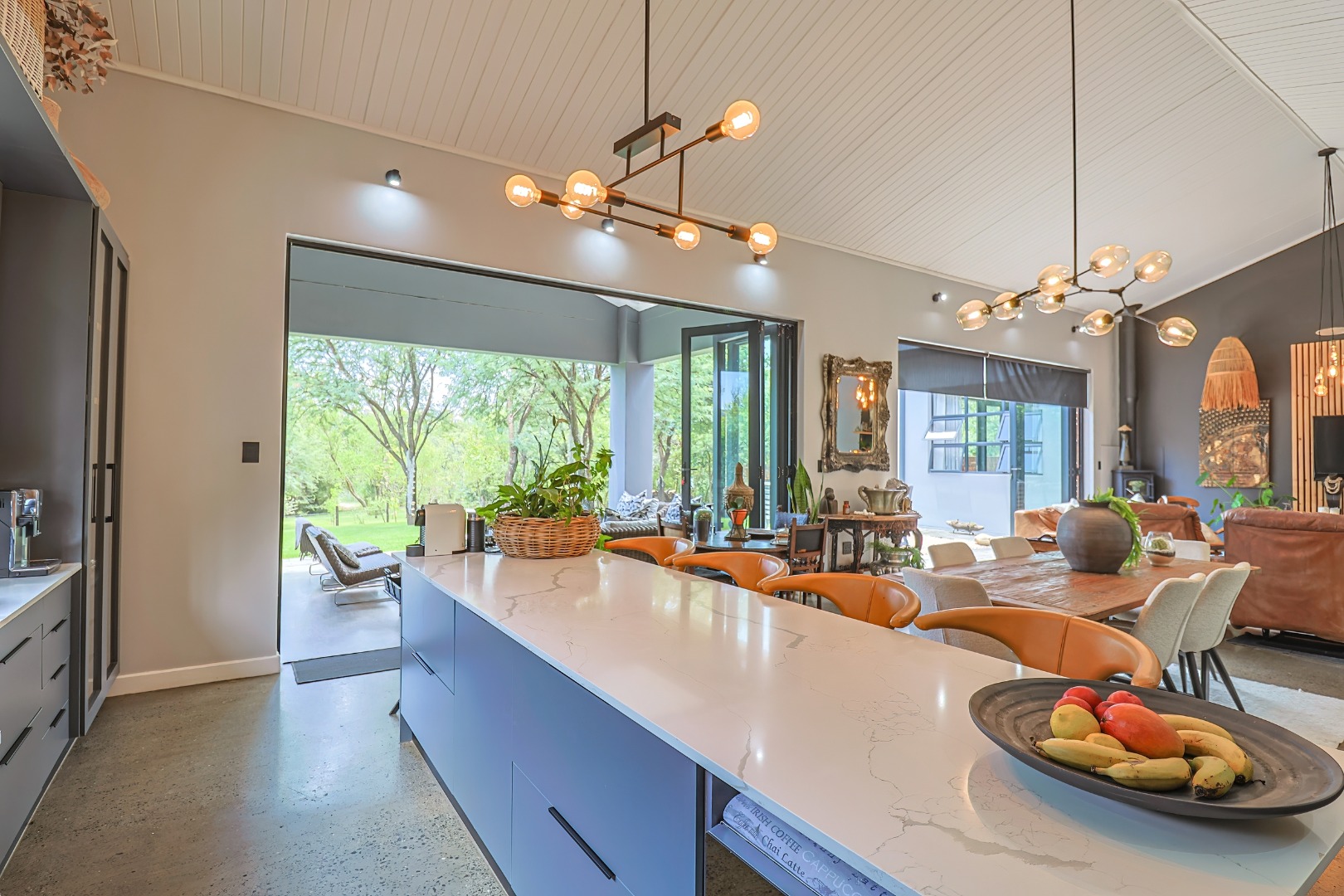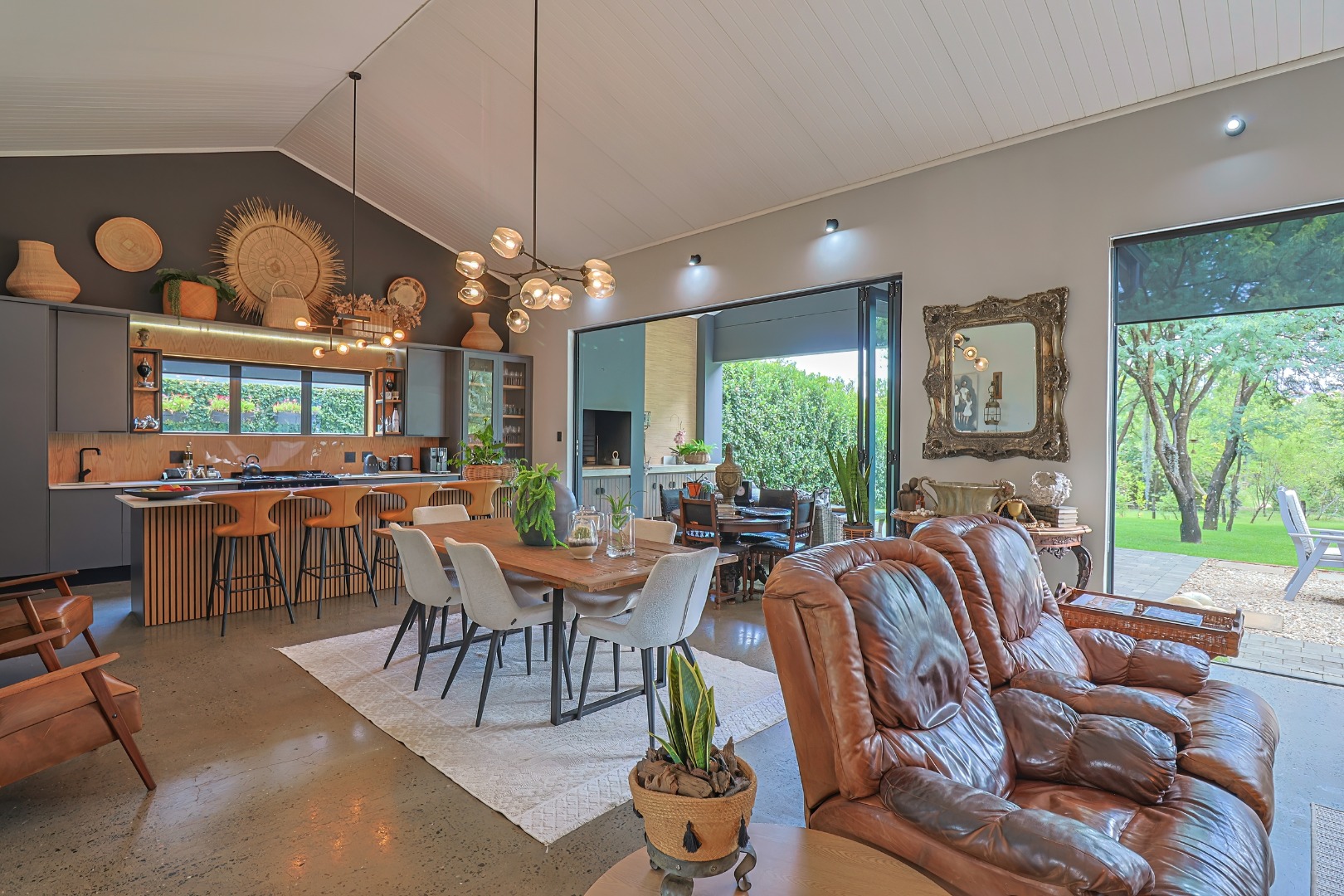 This home, situated in the lovely Landsmeer Equestrian Estate, reflects design and easy flow, textures and light, open plan living at its best. The home offers a large open plan living area which opens onto a veranda overlooking natural bush, separate scullery and laundry, practical store off the double garage, a study, three bedrooms, 3 bathrooms ( 2 en-suite). Entering the property, a classic courtyard greets one, before entering the home through the entrance hall. The double volume ceiling gives extra visual space. A wood burning stove takes the chill out of winter evenings. The bathrooms are a delight all on their own. A strong borehole and powerful solar system are extremely useful value adds. Words like peaceful, luxury and easy living all describe this modern day masterpiece. Phone me for a private viewing.