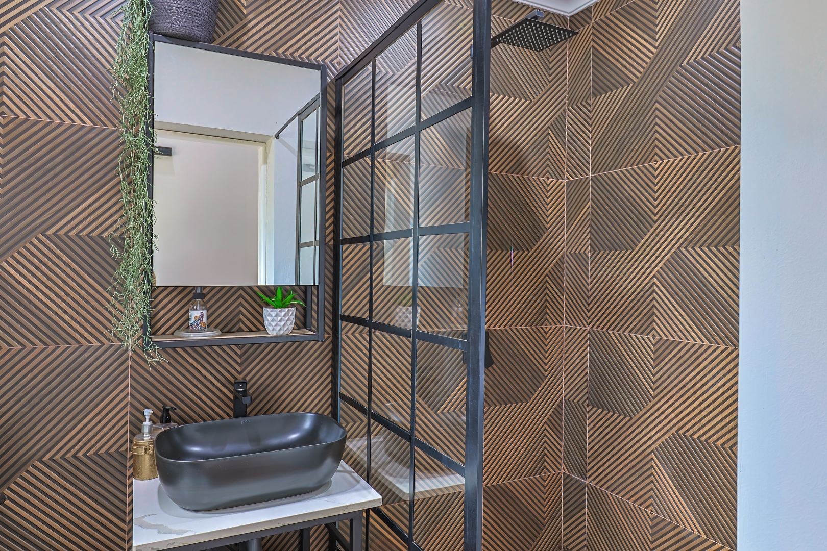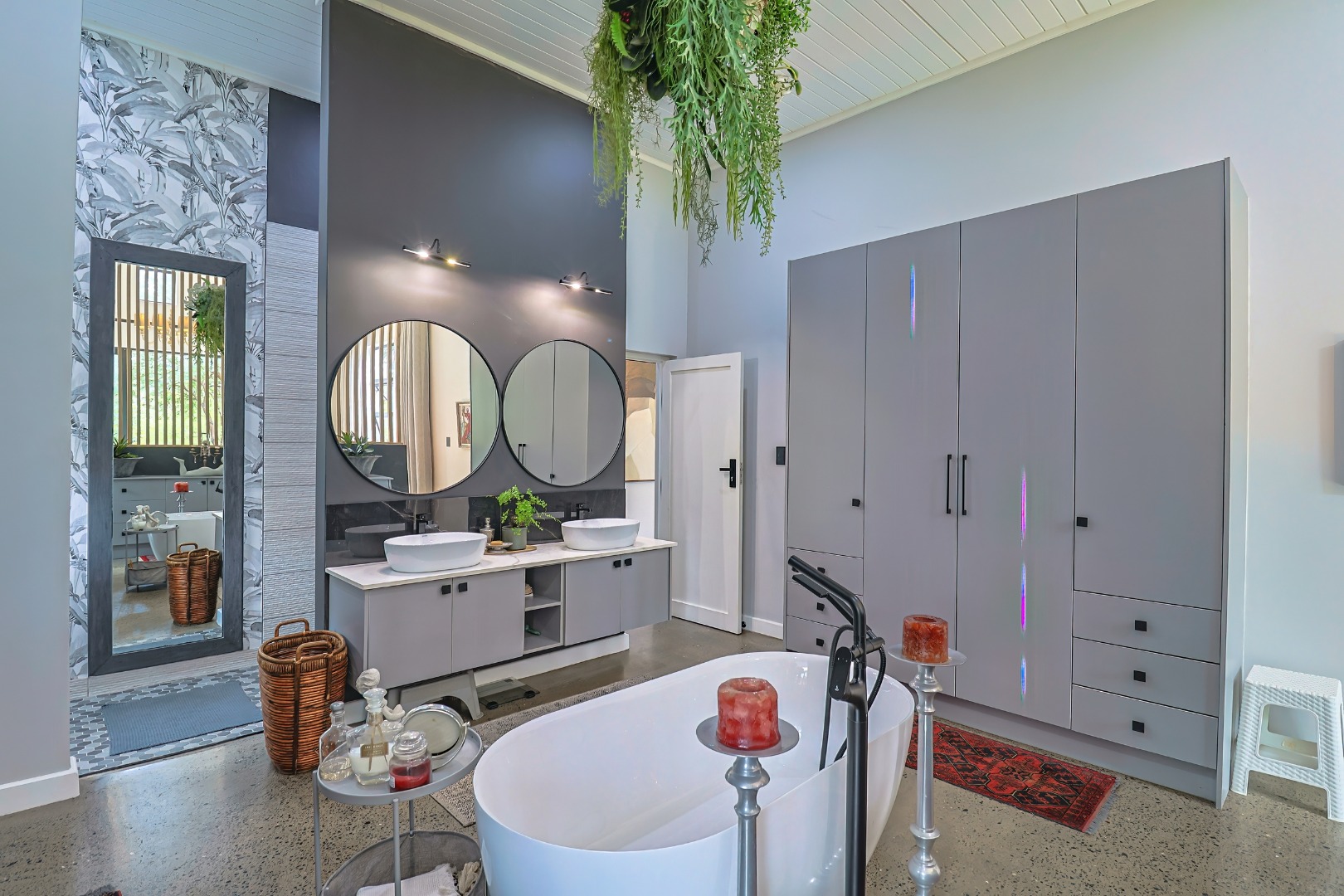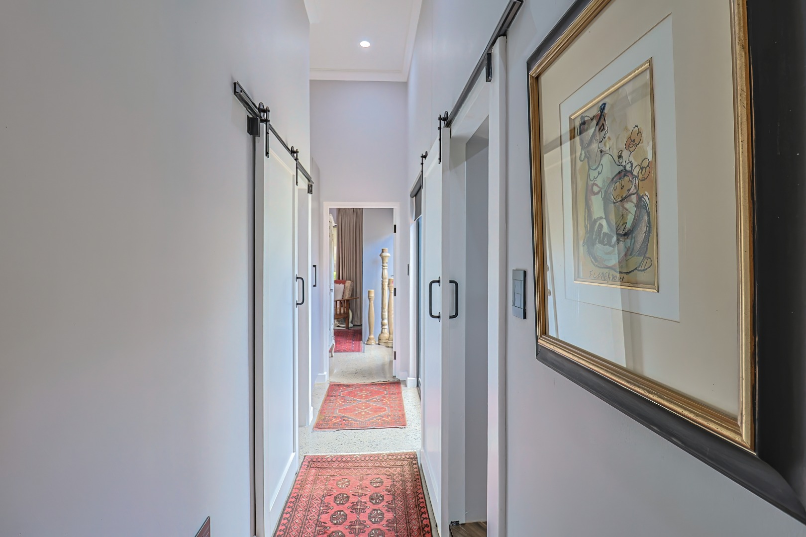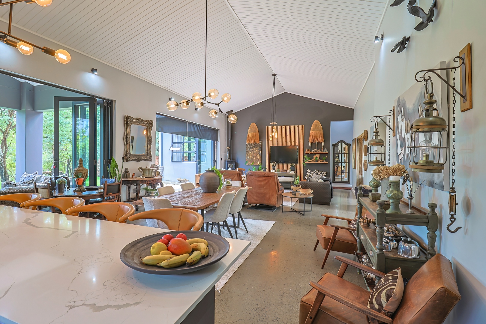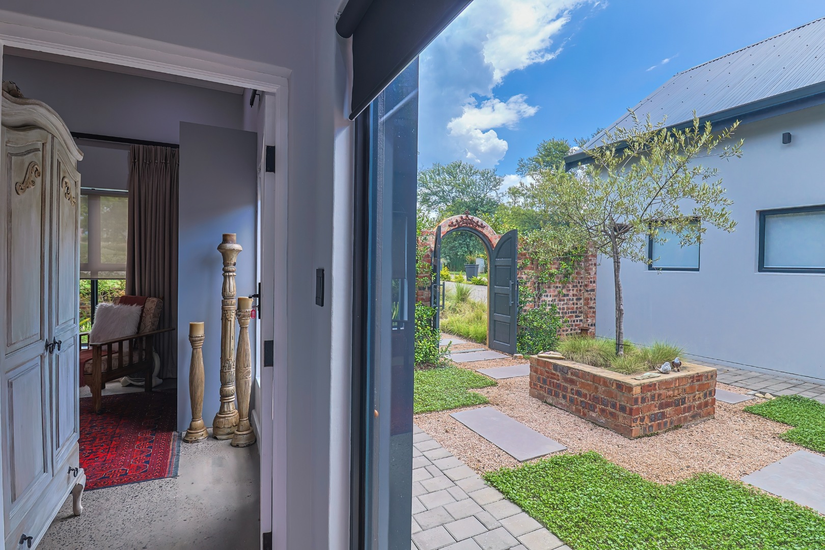 This home, situated in the lovely Landsmeer Equestrian Estate, reflects design and easy flow, textures and light, open plan living at its best. The home offers a large open plan living area which opens onto a veranda overlooking natural bush, separate scullery and laundry, practical store off the double garage, a study, three bedrooms, 3 bathrooms ( 2 en-suite). Entering the property, a classic courtyard greets one, before entering the home through the entrance hall. The double volume ceiling gives extra visual space. A wood burning stove takes the chill out of winter evenings. The bathrooms are a delight all on their own. A strong borehole and powerful solar system are extremely useful value adds. Words like peaceful, luxury and easy living all describe this modern day masterpiece. Phone me for a private viewing.