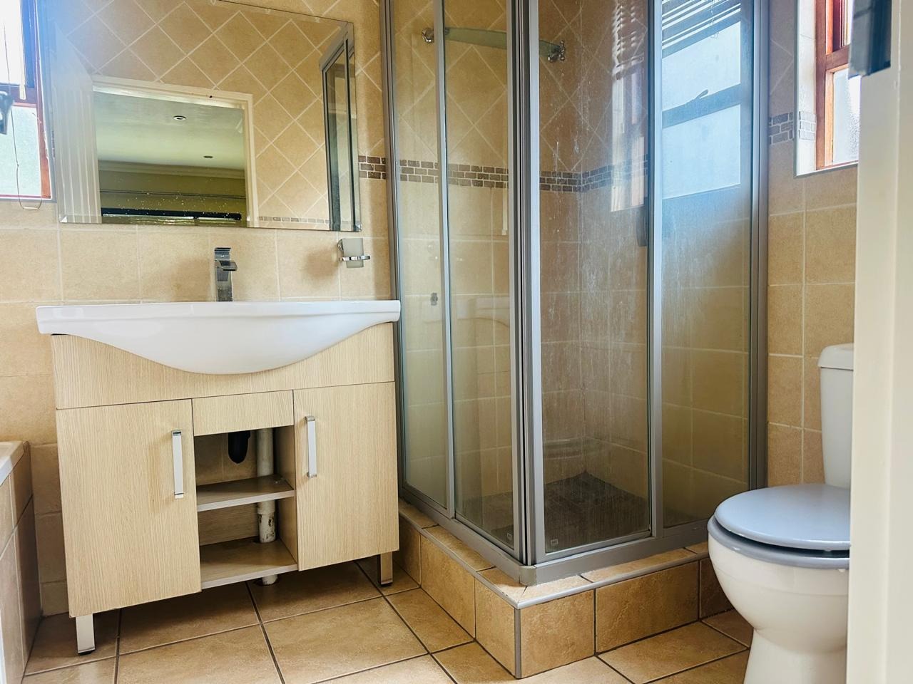 The home welcomes you with a double garage and direct home entry, offering both convenience and security. The ground floor boasts an open-plan lounge, dining area, and kitchen, designed for easy living and effortless entertaining. A guest toilet is also located on this level for added practicality. Flowing from the living areas is a covered patio with a built-in braai, ideal for hosting friends and family while overlooking the outdoor space.