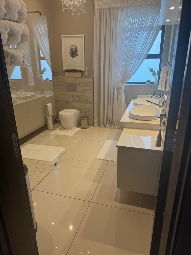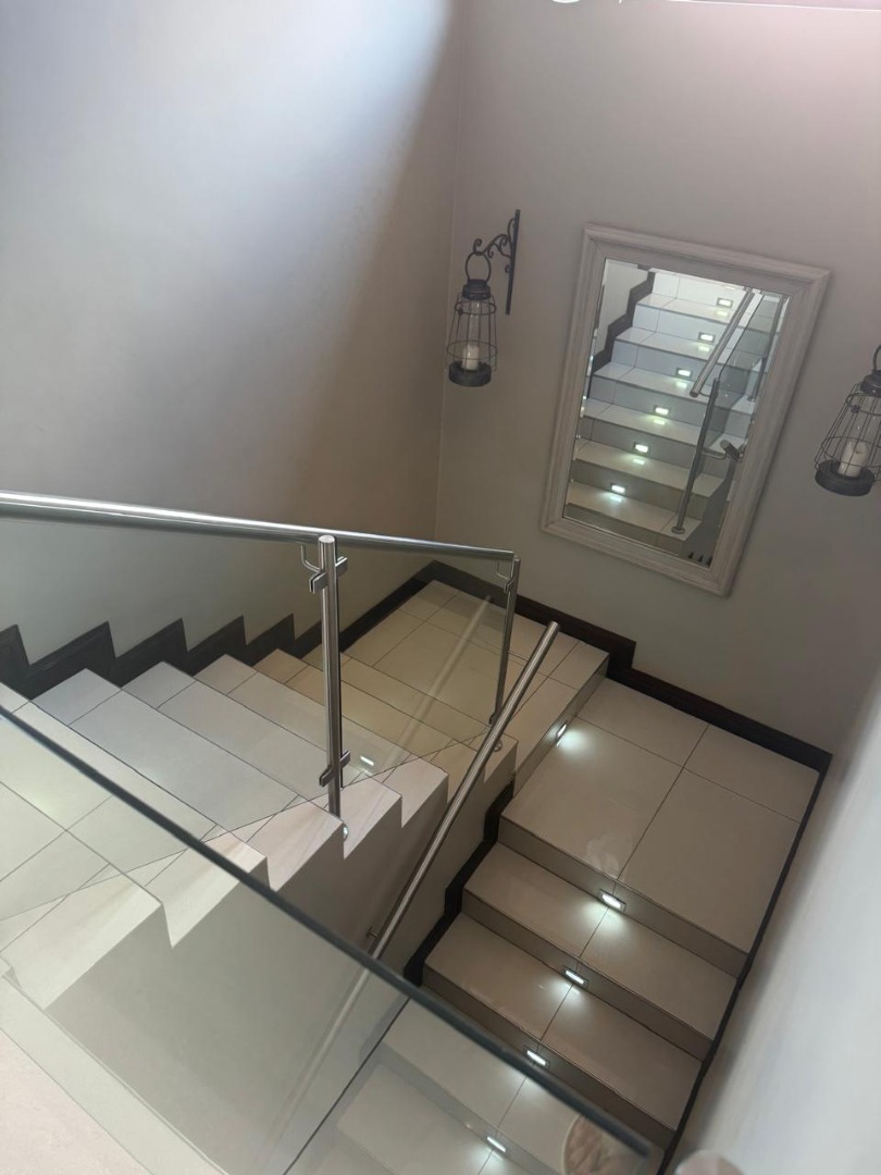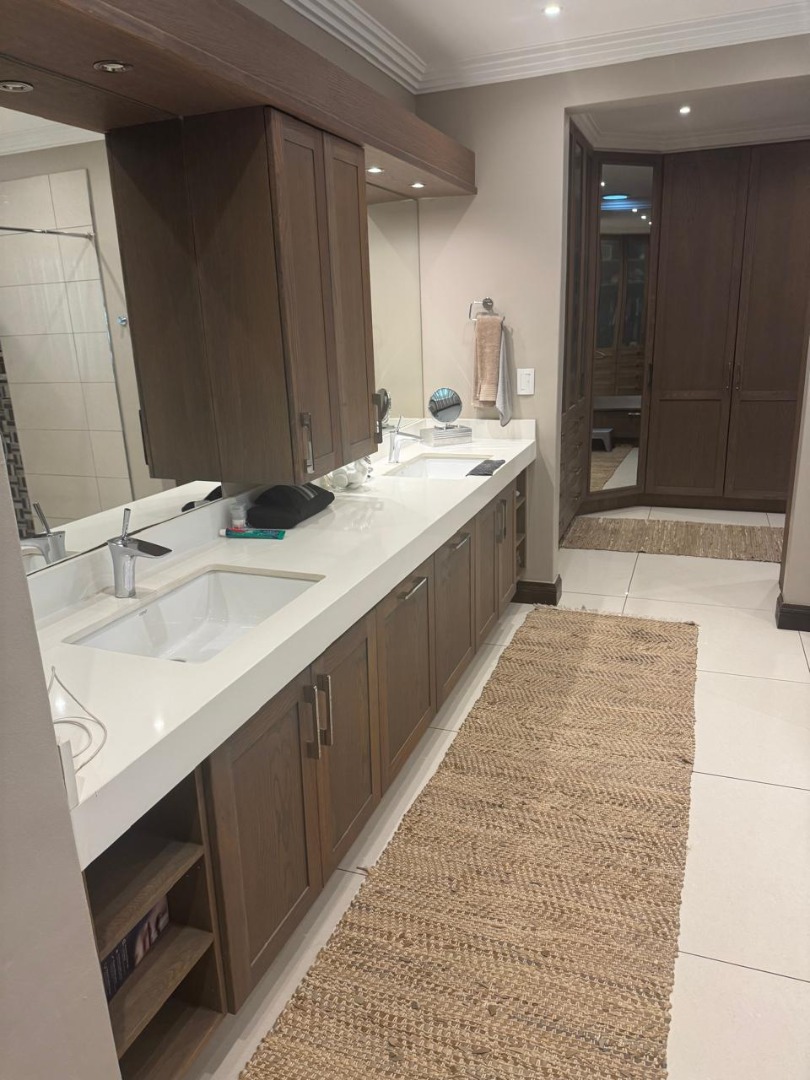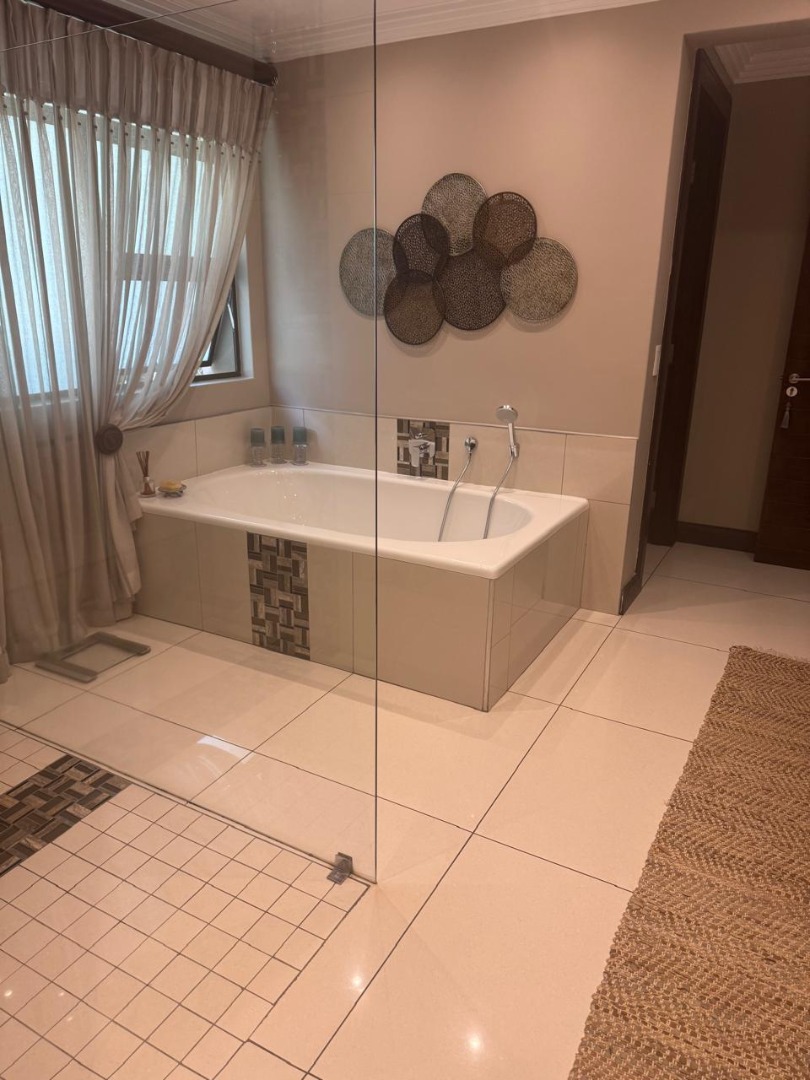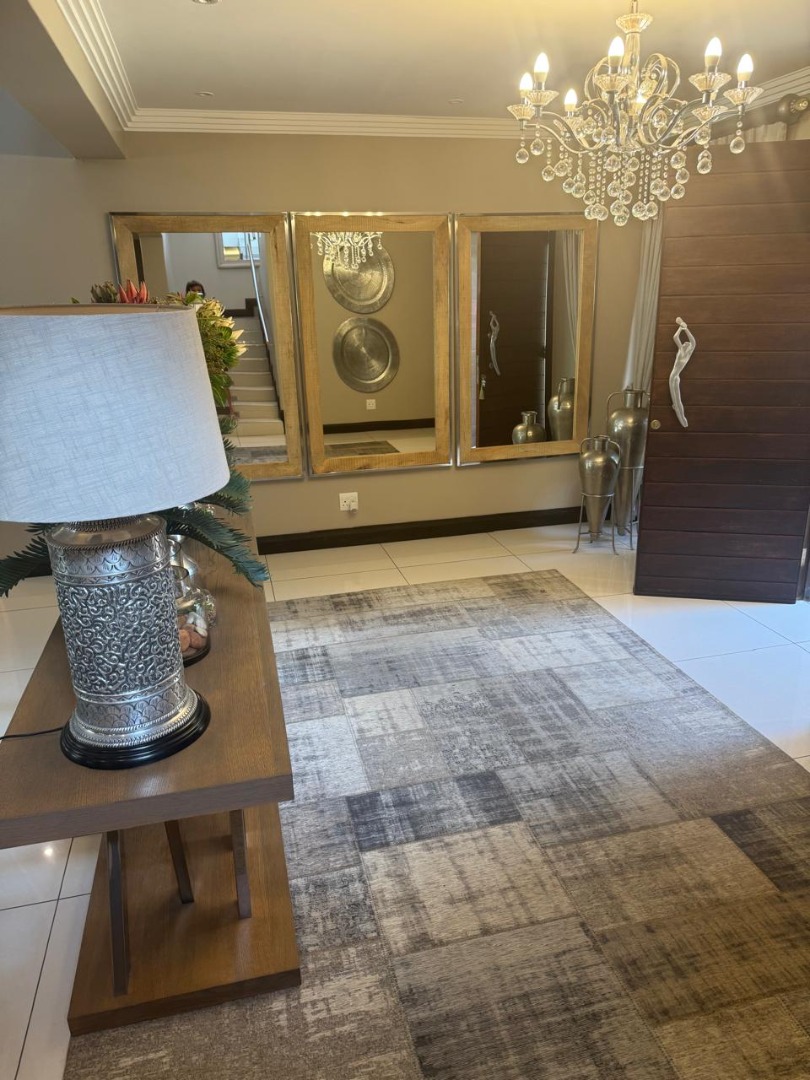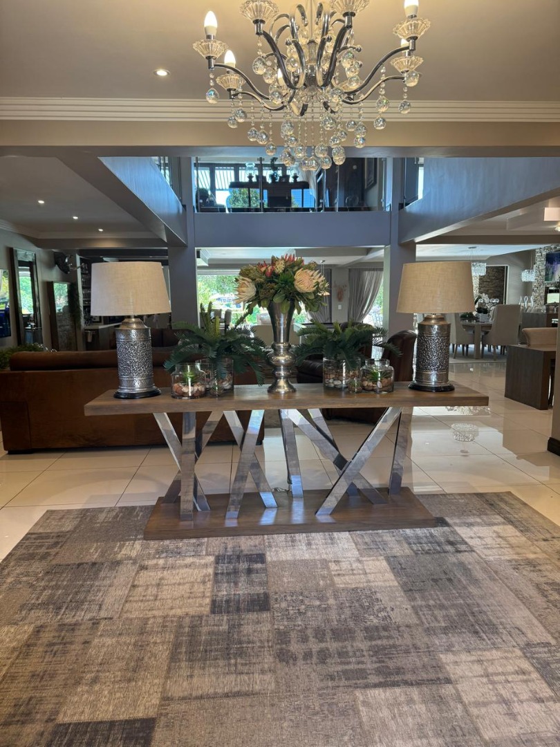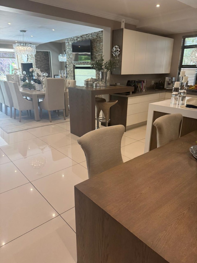 Step through the grand double-volume entrance into light-filled open spaces featuring designer bulkhead ceilings, premium finishes, and ambient lighting. The gourmet kitchen, fitted with top-quality appliances and a scullery, connects effortlessly to the dining room, lounge, bar, and entertainment areas — ideal for stylish hosting.