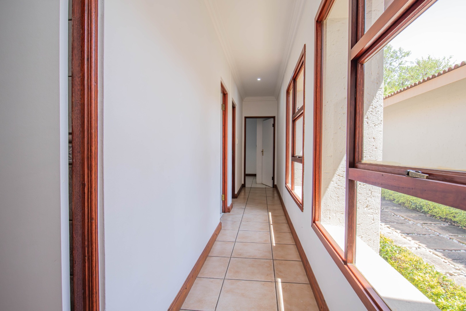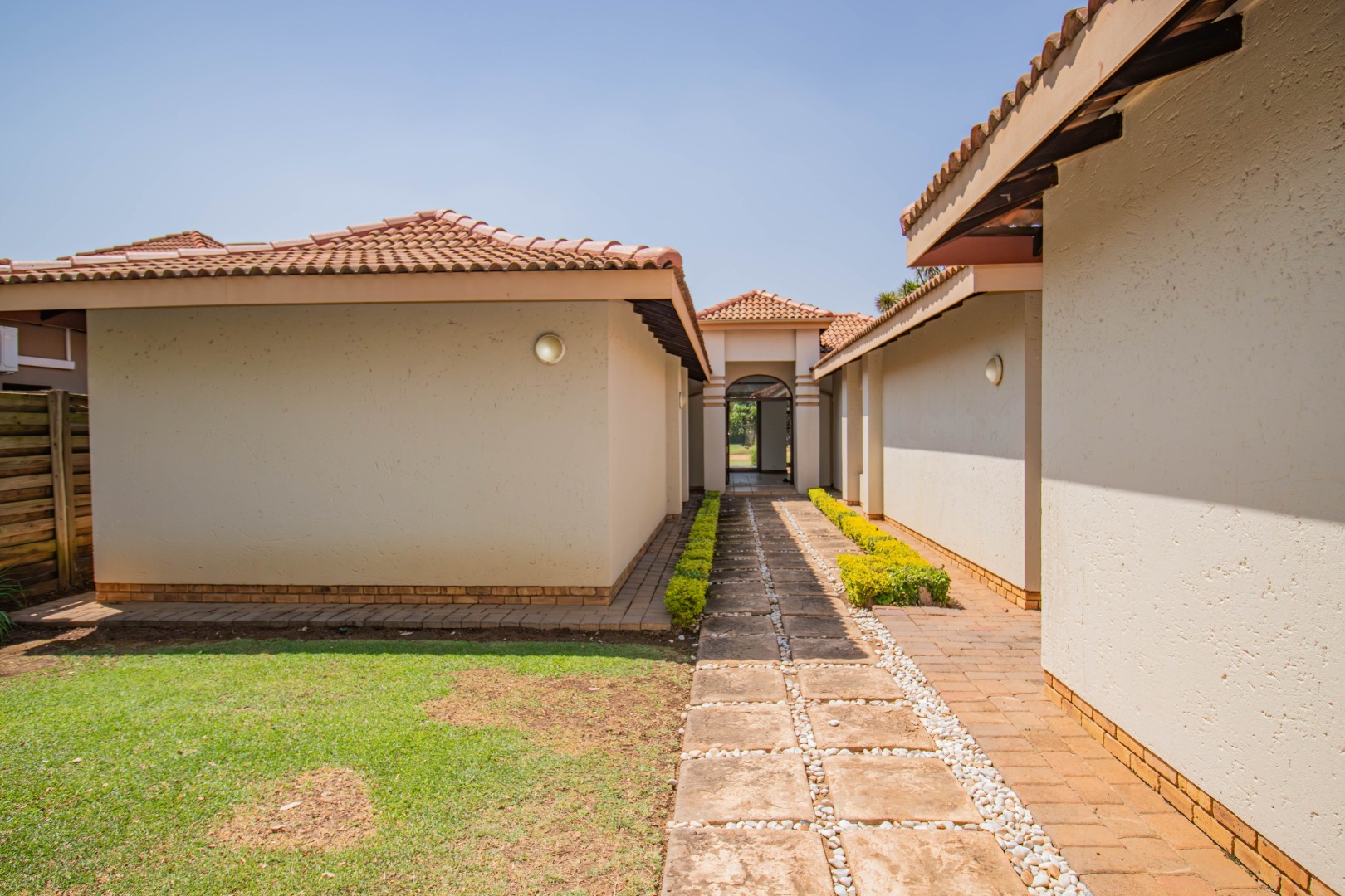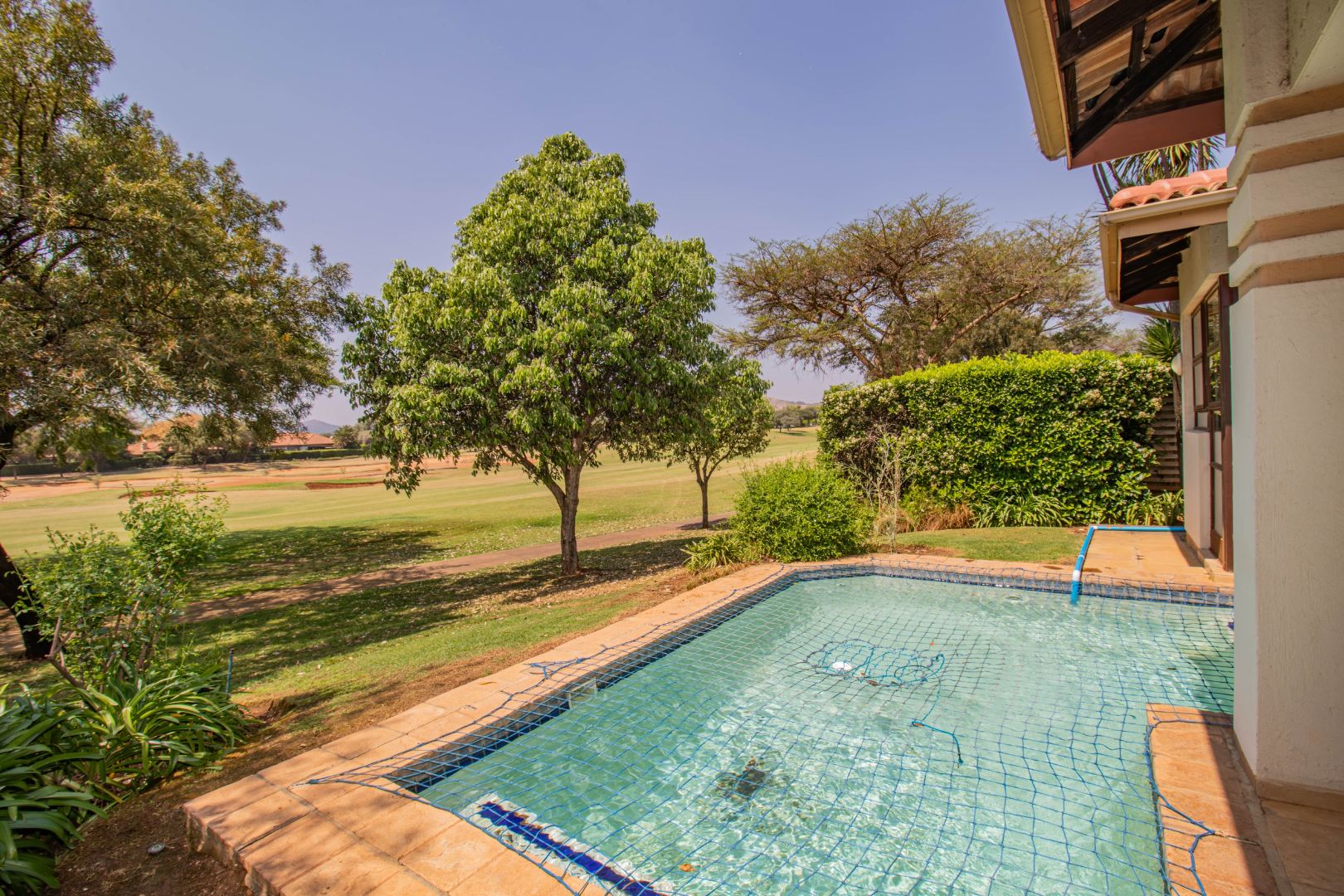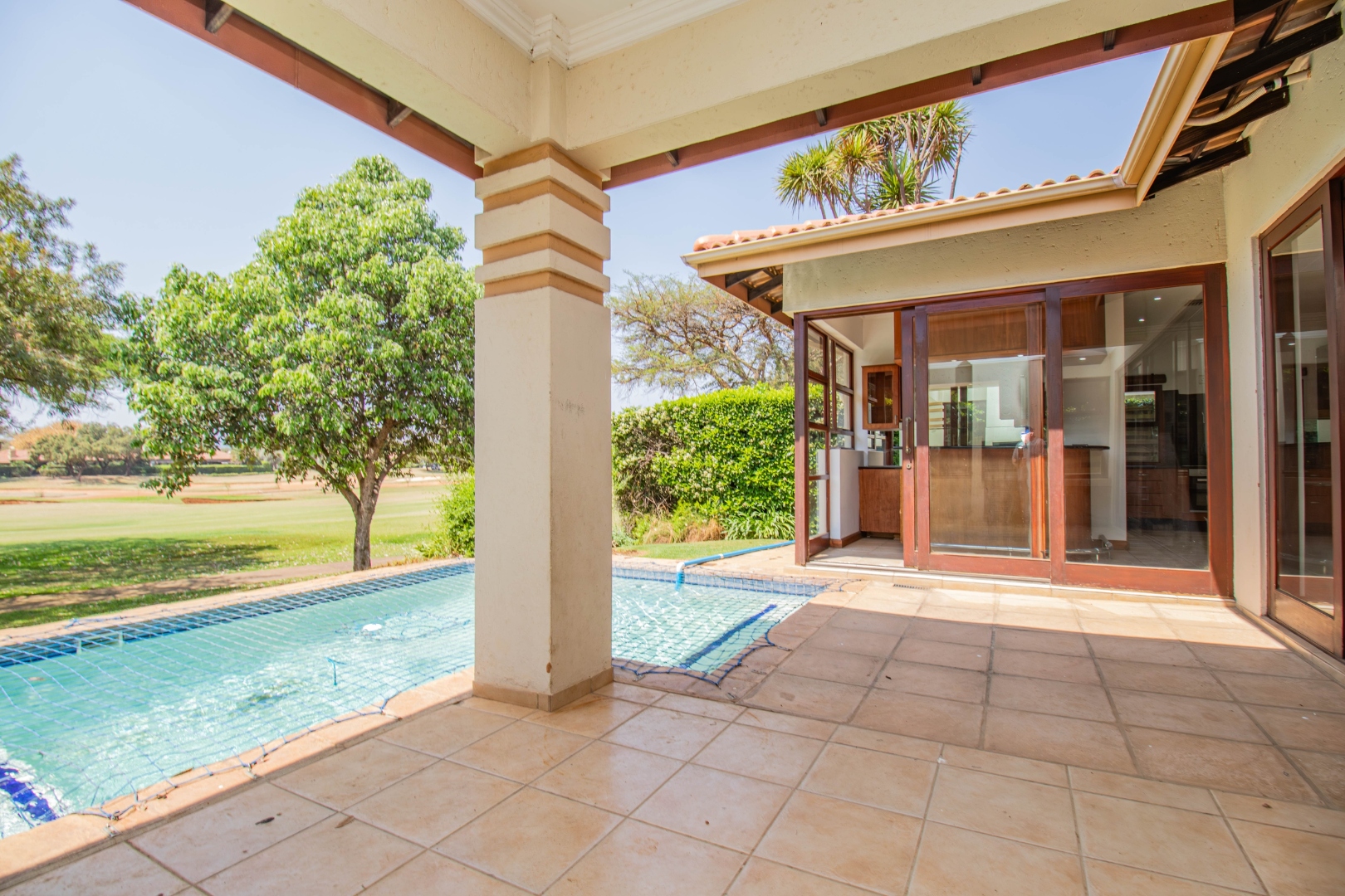Dual Mandate: Overlooking the golf course, this home provides a tranquil lifestyle within the security of estate living. The open-plan lounge and dining area extend to a private patio and sparkling pool. A well-equipped kitchen and fitted bar form part of the living space, creating the ideal setting for relaxed family living and easy entertaining onto the patio and braai area. The home’s U-shaped design ensures privacy between wings: the South Wing features two bedrooms with a shared full bathroom and a separate guest toilet, while the North Wing offers two additional bedrooms sharing a second full bathroom. The home provides the perfect opportunity for a buyer to add their personal touch.