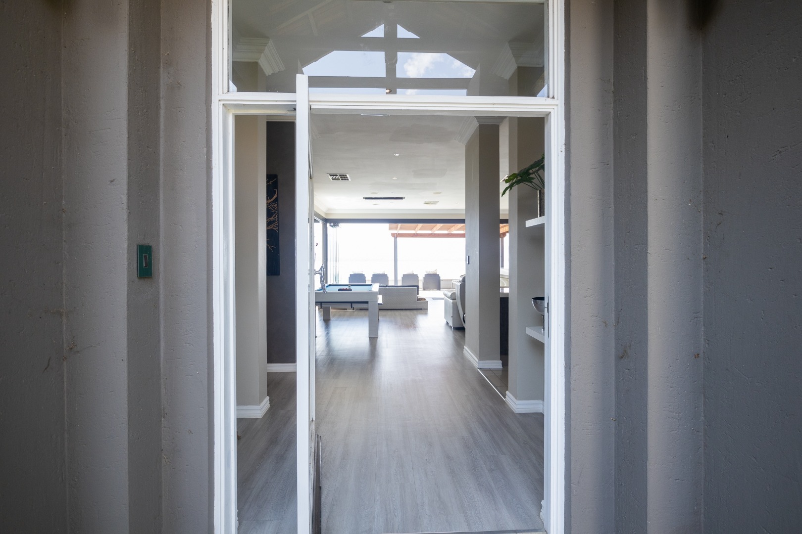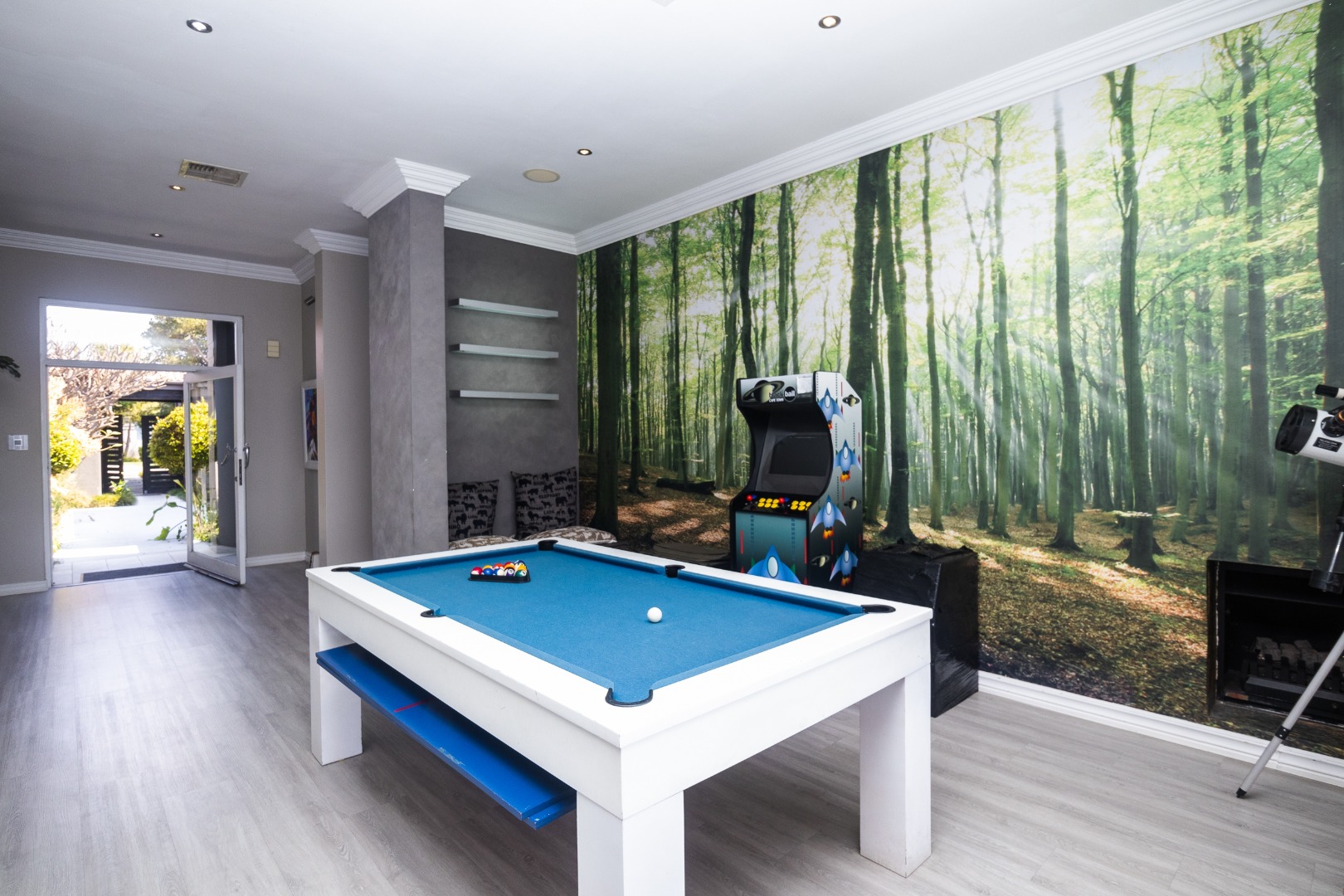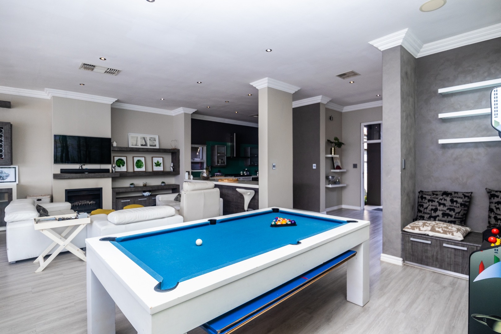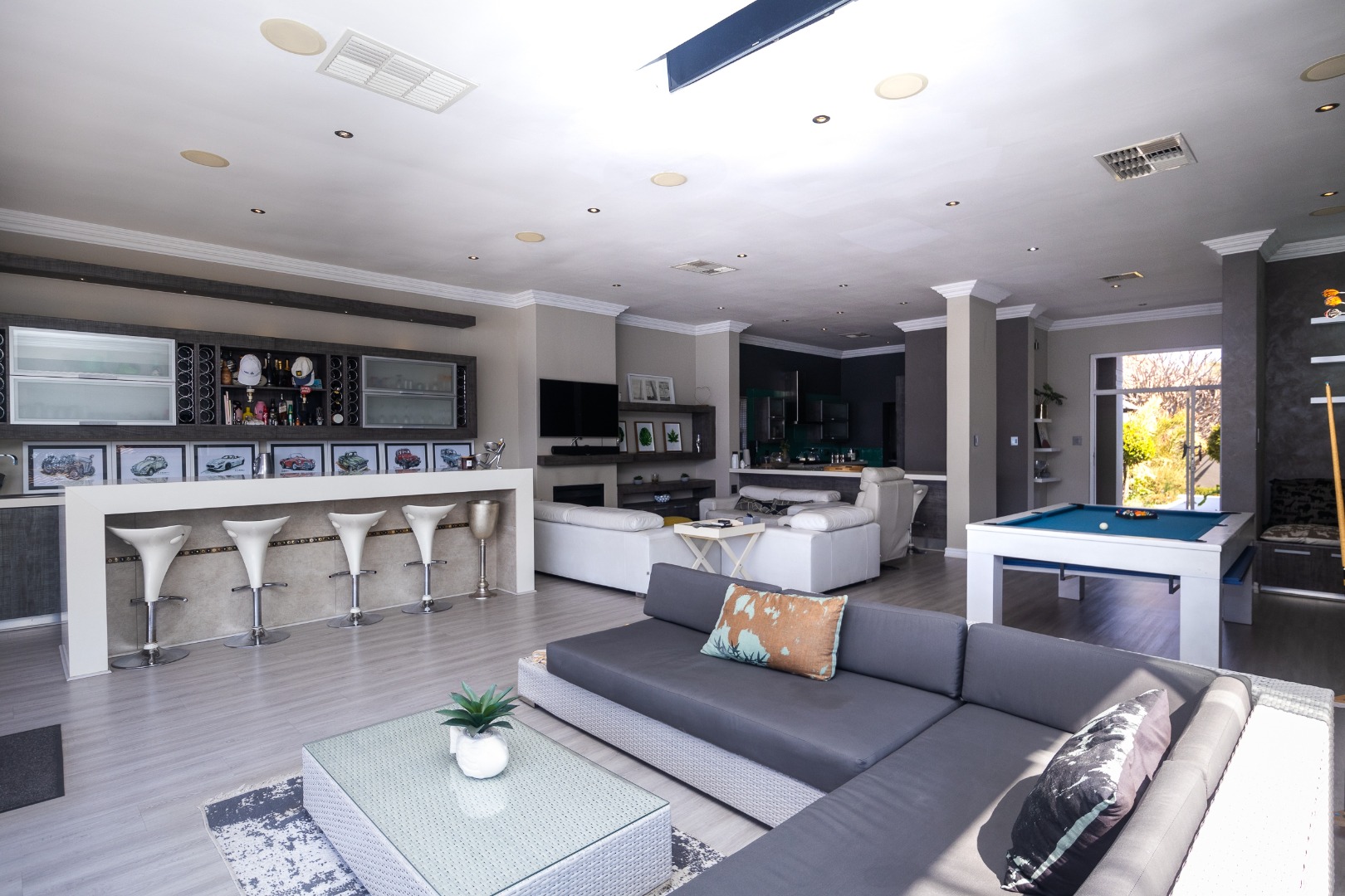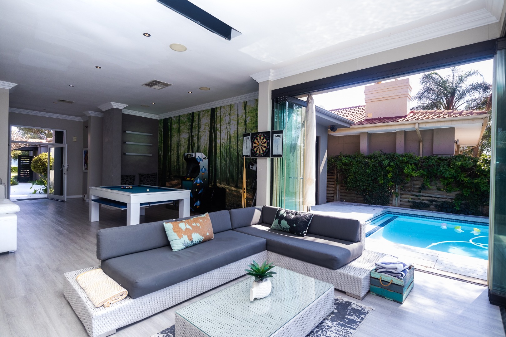 Built in bar, built-in braai room, and an awning-covered patio create the perfect space for entertaining. Sliding and special doors open up to the deck, pool, and garden, bringing the outside in. The home features Central Air Breeze for comfortable living throughout the year.