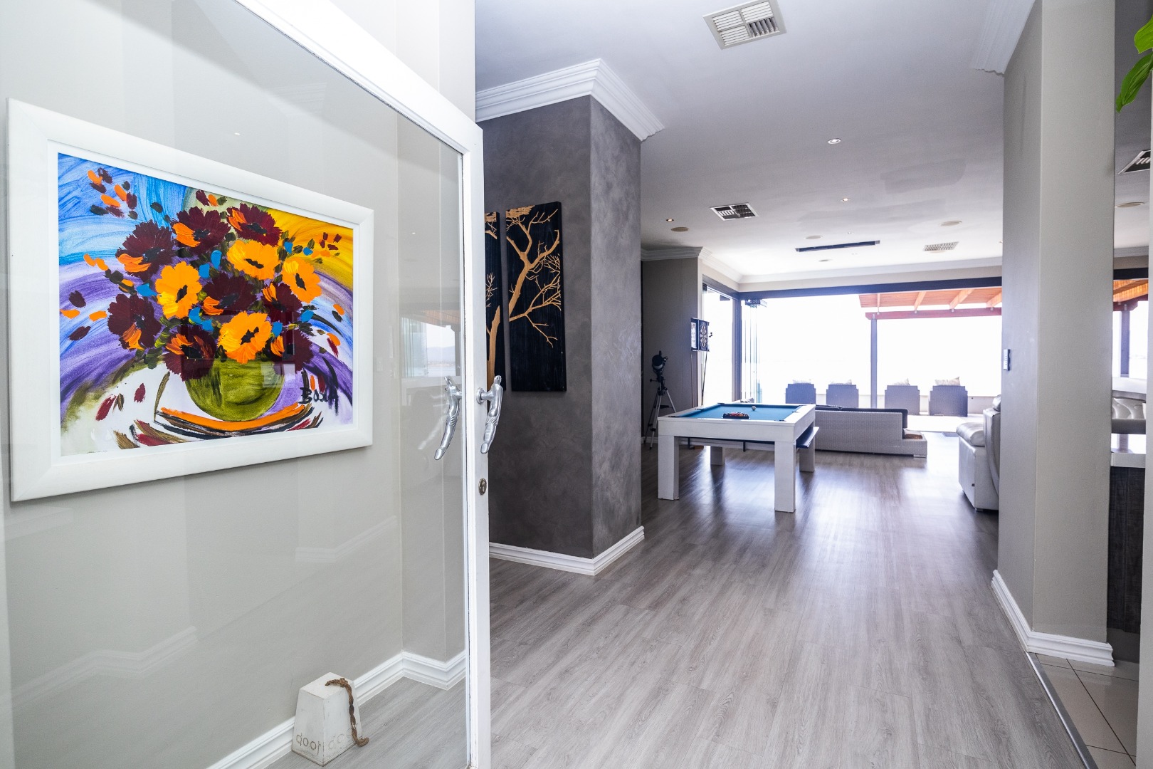 The house offers 5 bedrooms and 4.5 bathrooms, with 3 en-suite, providing plenty of space for family and guests. Inside, you’ll find an entrance hall leading into a lounge, a separate family TV room, and a dining room. The kitchen is well laid out and includes a pantry, laundry, and scullery for added convenience. Guest bathroom facilities as well.