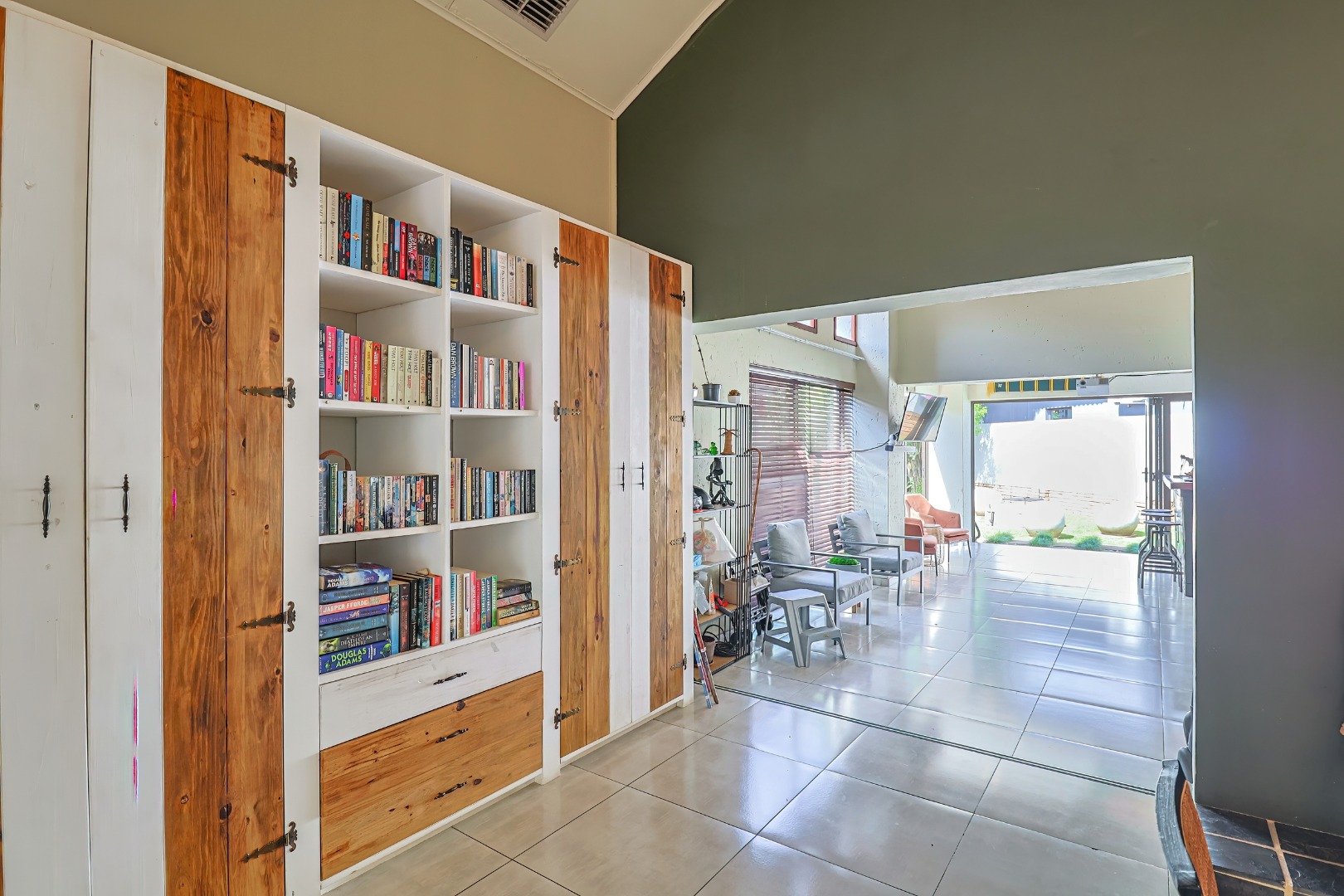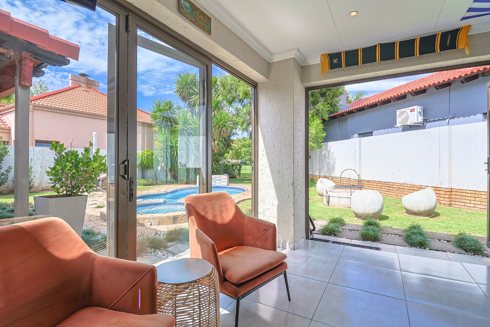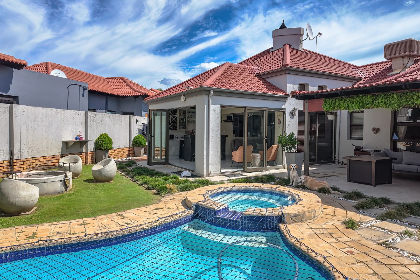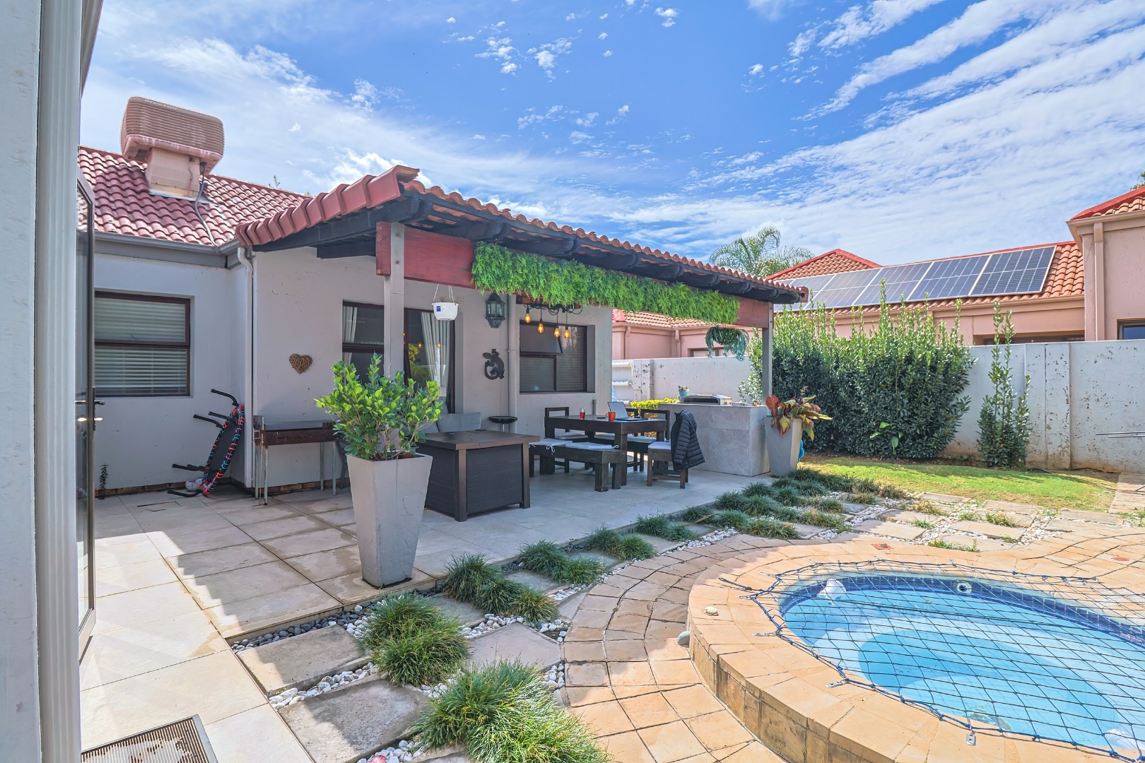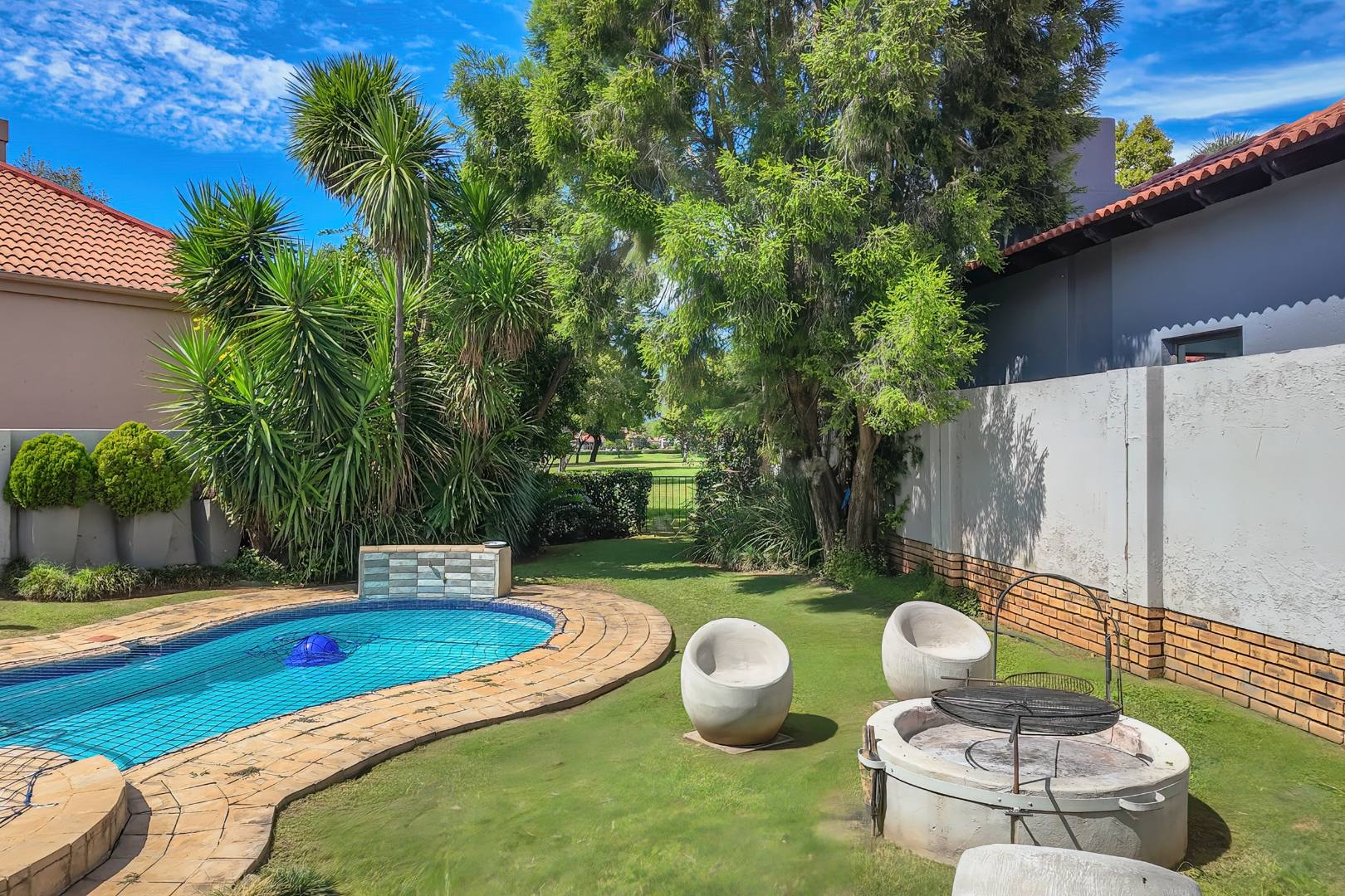 Designed to embrace the beauty of its surroundings, this home offers a perfect balance of tranquility and modern, family-friendly living. Ideally positioned just off the golf course, it enjoys an exceptional outlook over the sought-after “Superbowl,” creating a truly special setting. The open-plan layout allows for effortless flow between the living, dining, and entertainment areas, making it ideal for both everyday living. The home features five well-appointed bedrooms and four bathrooms. Two bedrooms, including the main bedroom, are en-suite, while two additional bedrooms share a well-designed bathroom. The fifth bedroom, complete with a shower and toilet, offers flexibility as staff accommodation or a private teen retreat. A covered patio with a built-in braai opens onto the pool area, creating a seamless indoor-outdoor entertainment space. Additional features include a stylish Hawaiian bar, double automated garages, a golf cart garage, ample guest parking, solar panels with an inverter and batteries, and air breeze. Whether you are an avid golfer or simply seeking a refined yet practical retreat, this home offers an exceptional lifestyle in a prime position.
