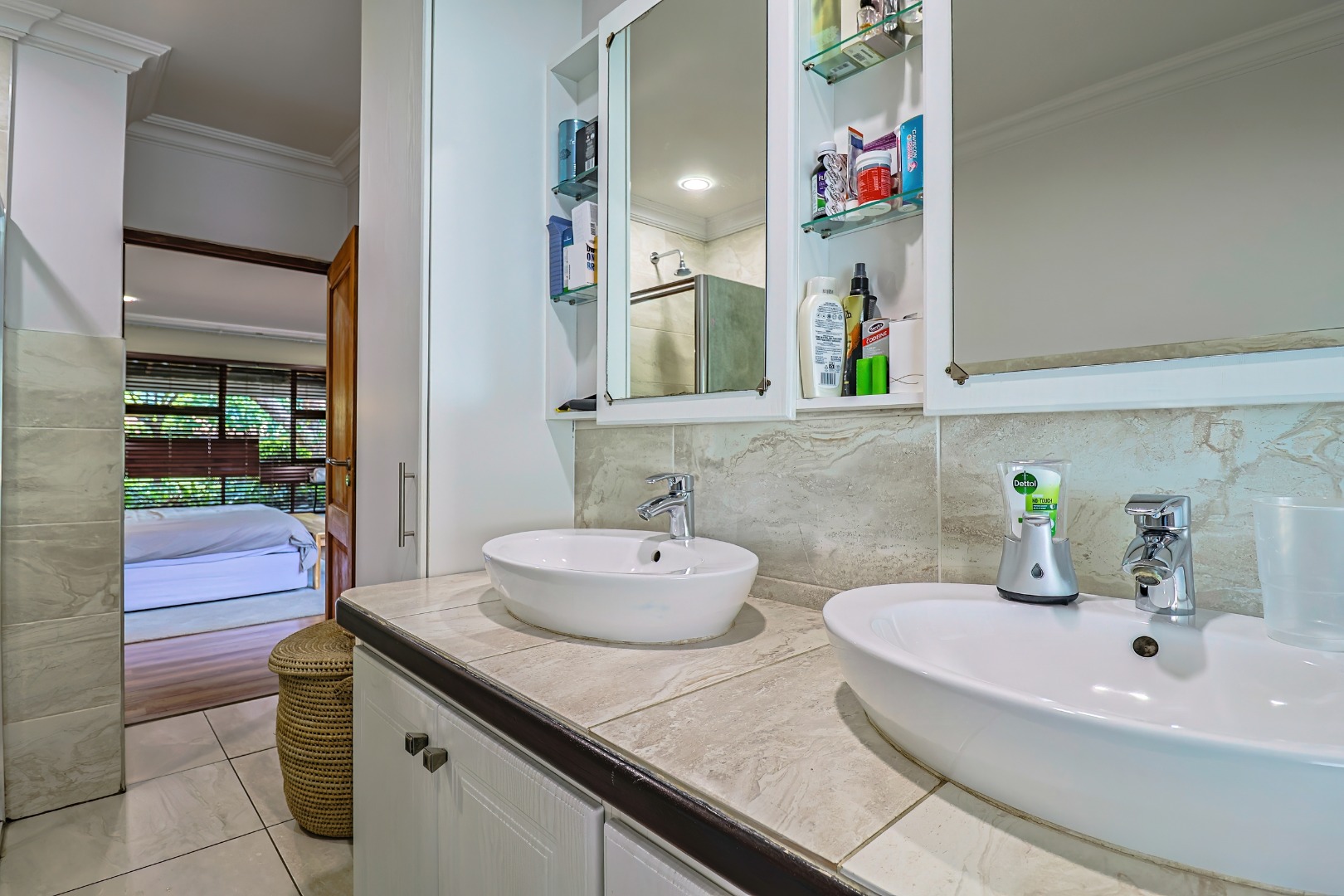 Designed to embrace the beauty of its surroundings, this home offers a perfect balance of tranquility and modern, family-friendly living. Ideally positioned just off the golf course, it enjoys an exceptional outlook over the sought-after “Superbowl,” creating a truly special setting. The open-plan layout allows for effortless flow between the living, dining, and entertainment areas, making it ideal for both everyday living. The home features five well-appointed bedrooms and four bathrooms. Two bedrooms, including the main bedroom, are en-suite, while two additional bedrooms share a well-designed bathroom. The fifth bedroom, complete with a shower and toilet, offers flexibility as staff accommodation or a private teen retreat. A covered patio with a built-in braai opens onto the pool area, creating a seamless indoor-outdoor entertainment space. Additional features include a stylish Hawaiian bar, double automated garages, a golf cart garage, ample guest parking, solar panels with an inverter and batteries, and air breeze. Whether you are an avid golfer or simply seeking a refined yet practical retreat, this home offers an exceptional lifestyle in a prime position.