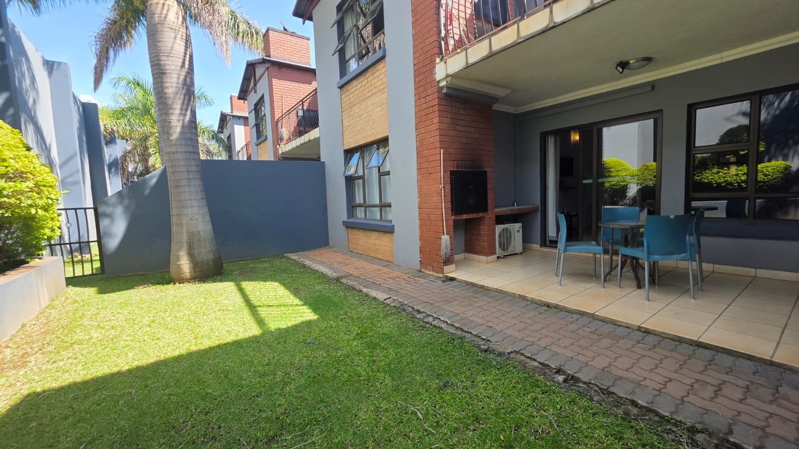 This neat and spacious 2-bedroom, 1-bathroom apartment offers comfortable, easy living with a small, low-maintenance garden. The full bathroom includes both a bathtub and a shower, while the bright open-plan living area creates a welcoming space to relax and unwind. Step out onto the patio with a built-in braai, ideal for weekend get-togethers and outdoor dining, all without the hassle of high upkeep.