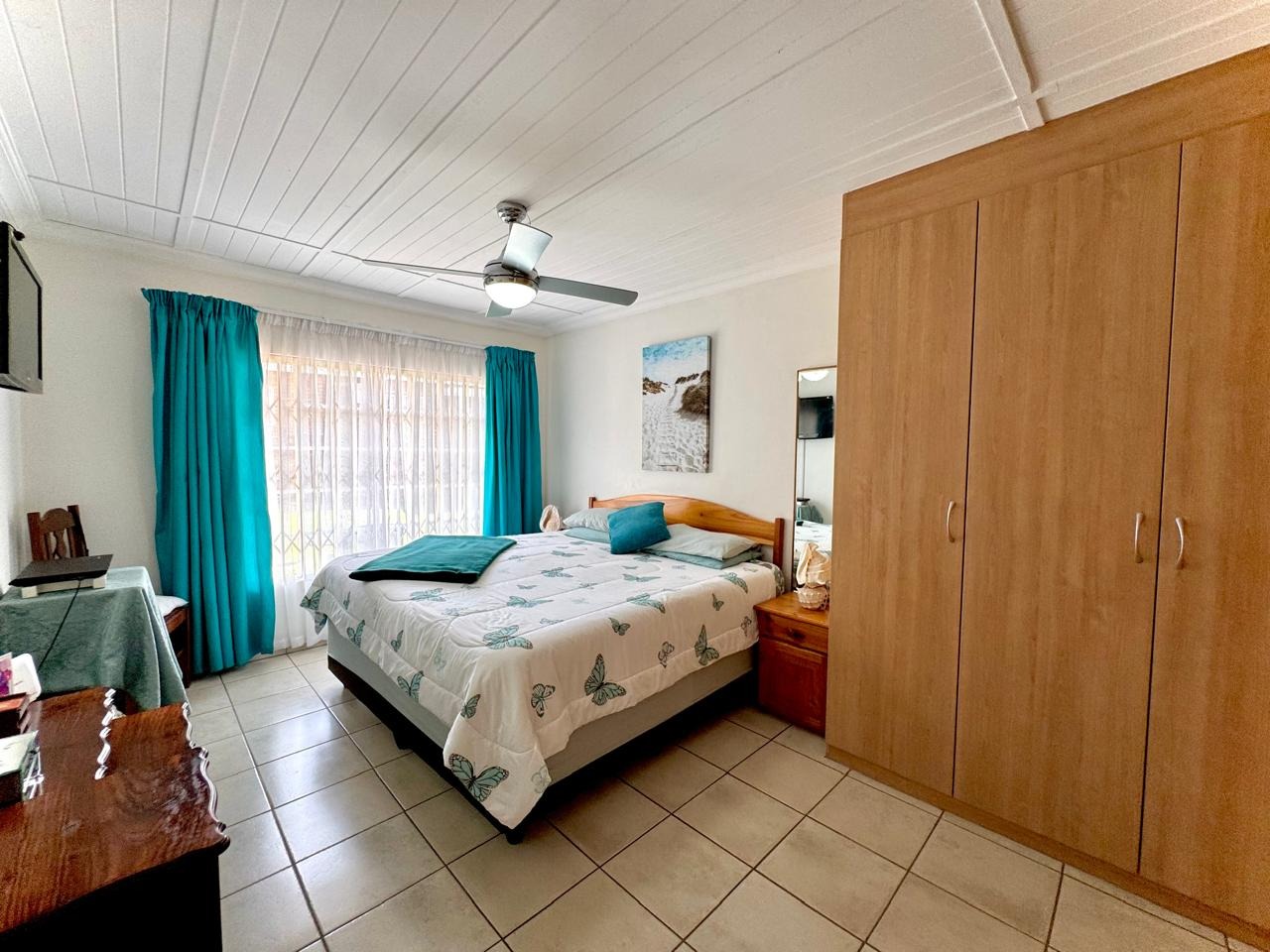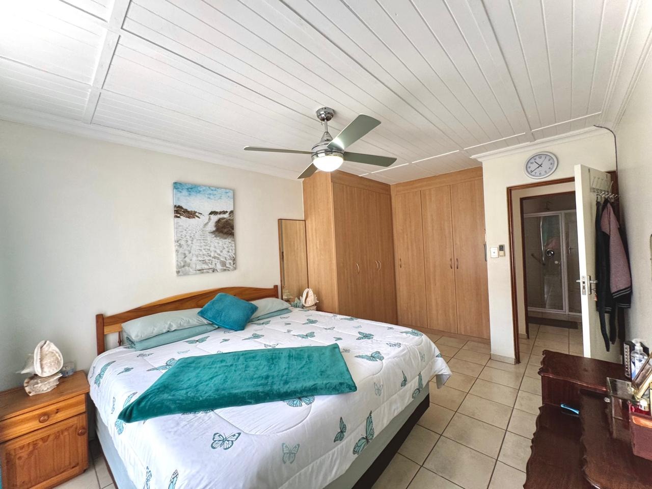 Inside, the home features a spacious open-plan layout, seamlessly combining the lounge, dining area, and well-appointed kitchen and ample cupboard space. The generously sized bedrooms offer plentiful built-in wardrobes and lead to a full en-suite bathroom, fitted with both a bath and shower for added convenience.