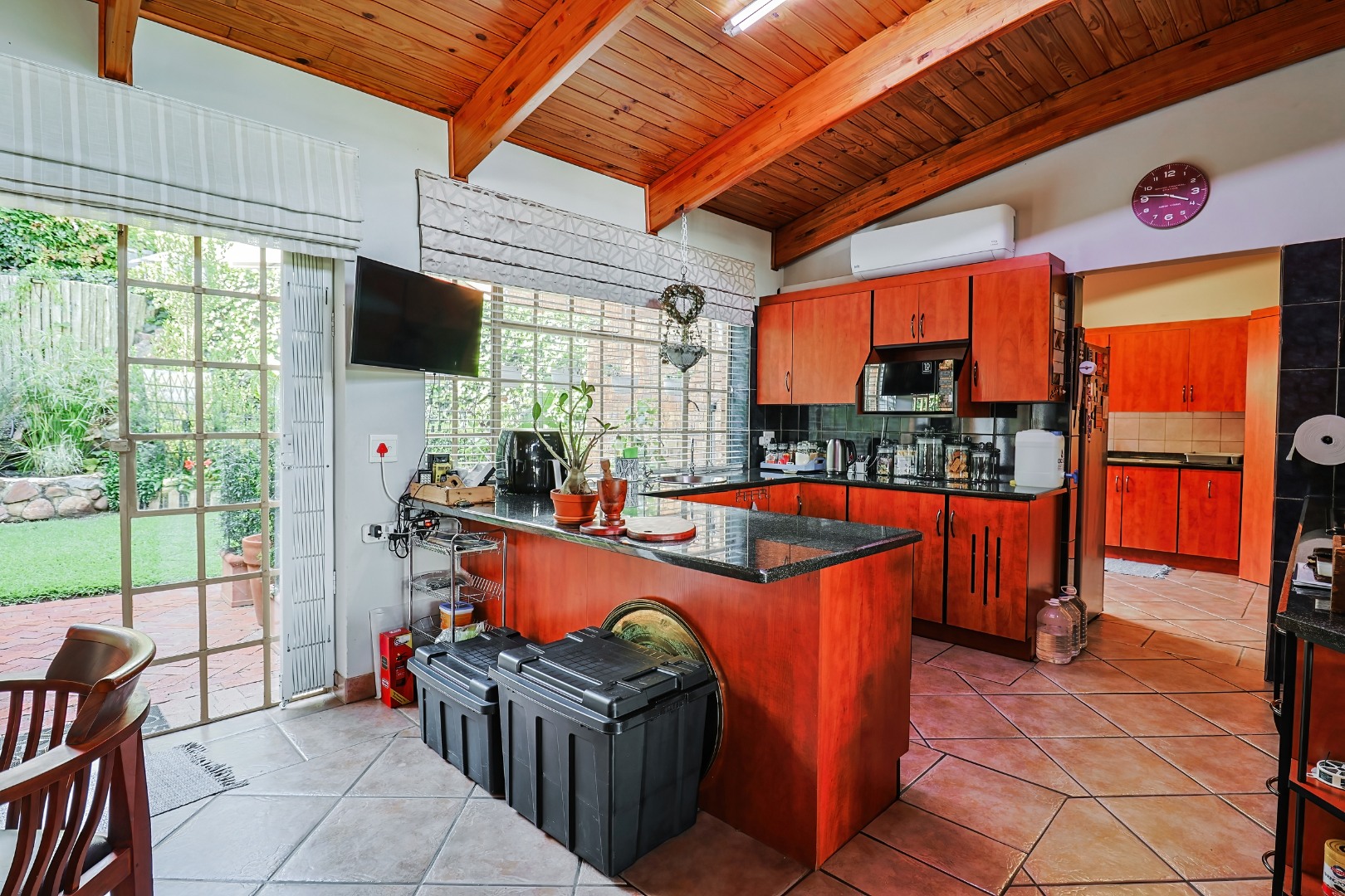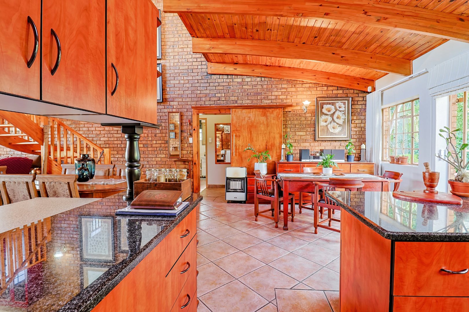 The kitchen offers ample cupboard space and flows seamlessly into the living areas, making it perfect for everyday living and entertaining. Bedrooms are generously sized with built-in cupboards, while the bathrooms are neat and well appointed.