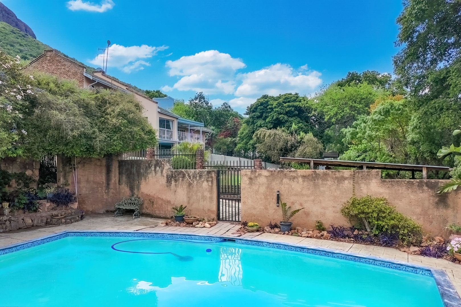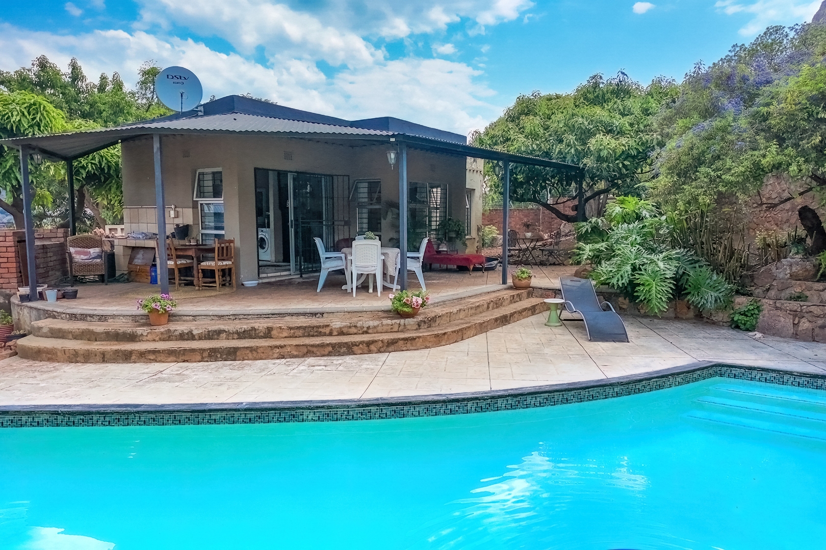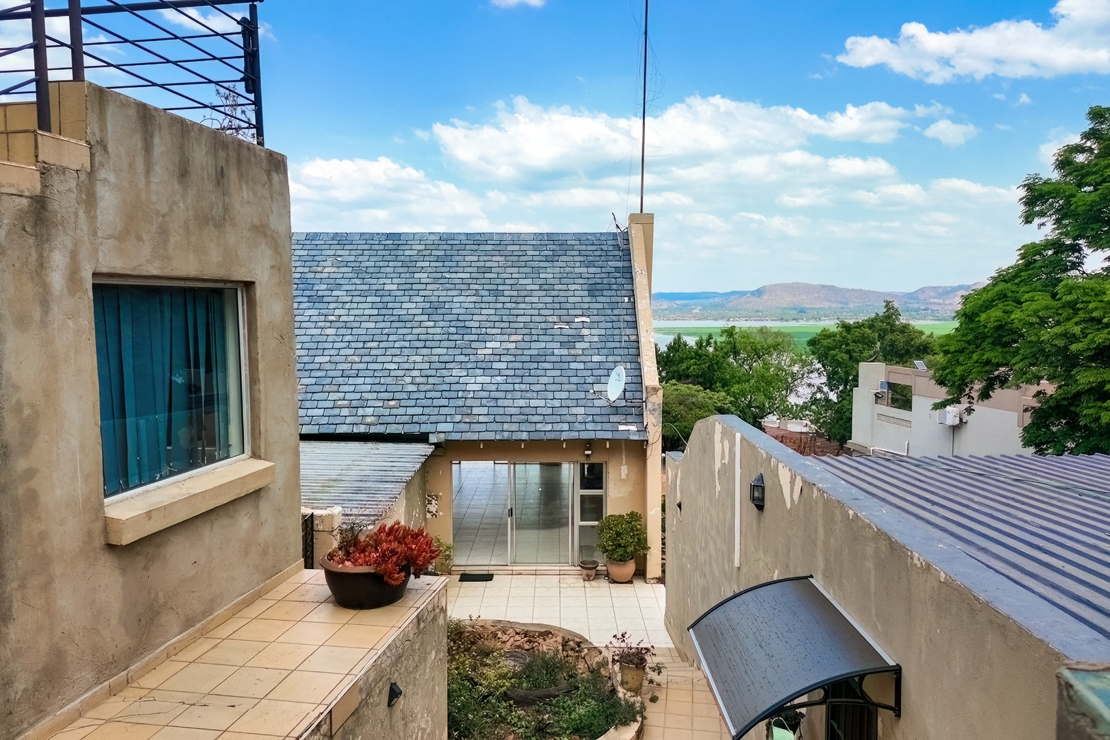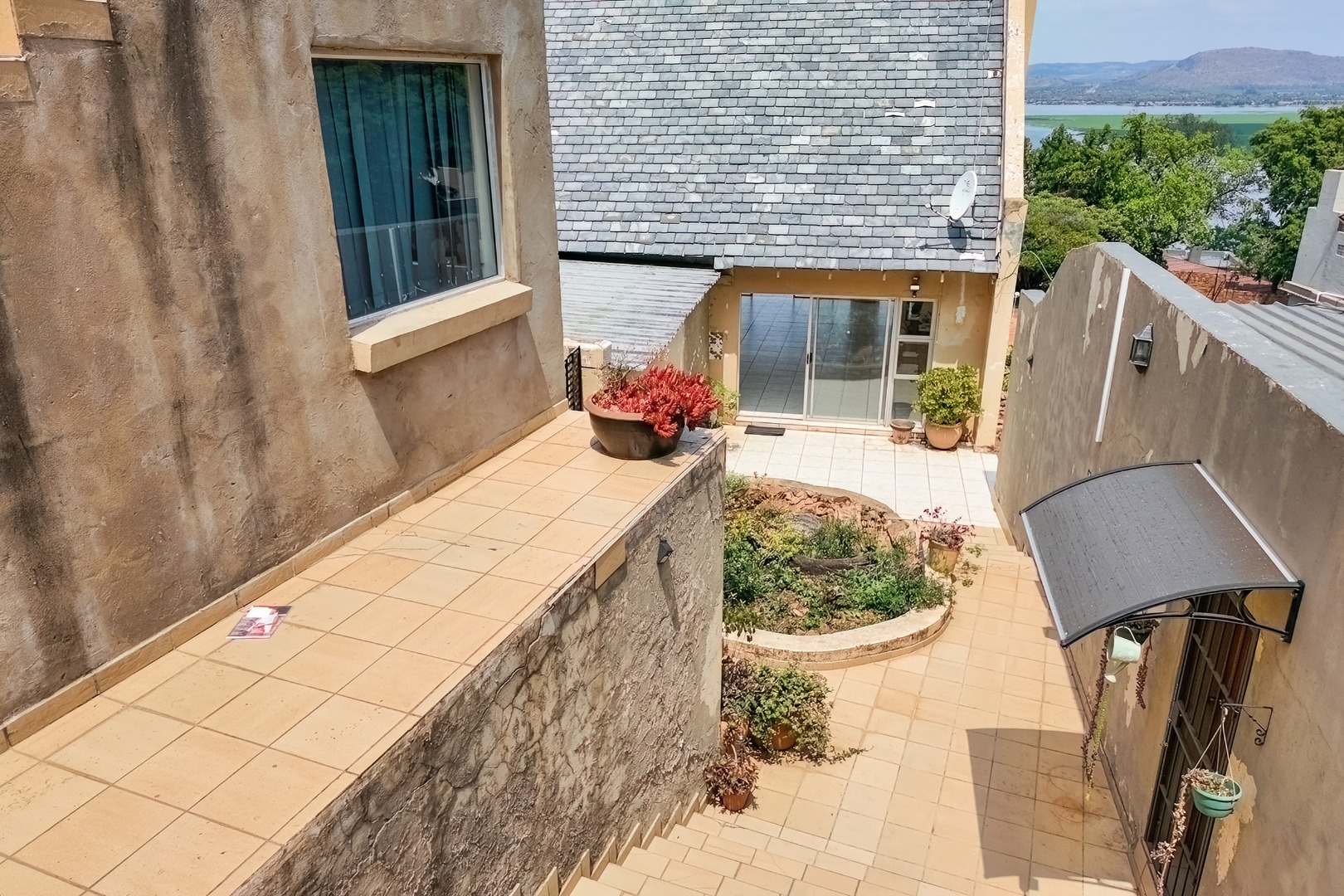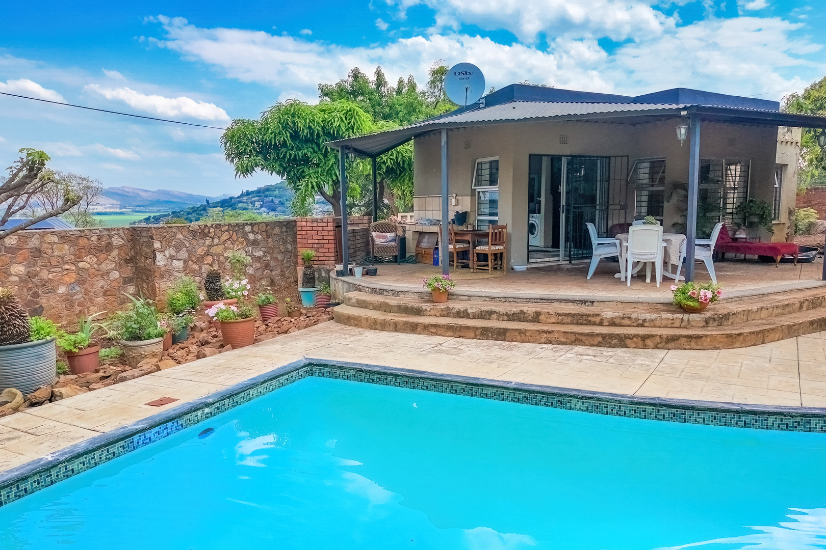 If it is a spectacular view over the Hartbeespoort Dam and beyond is important to you, look no further. Sought after street, totally private from the street. The 2000m² land is a valuable asset on its own. Add 4 income generating flatlets, the main house (needs lots of TLC) two swimming pools, ample space to develop this as a 5-star lodge of bed and breakfast. With an existing income, what more could you ask for?