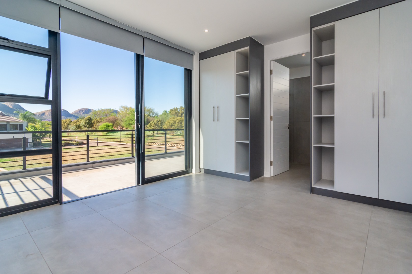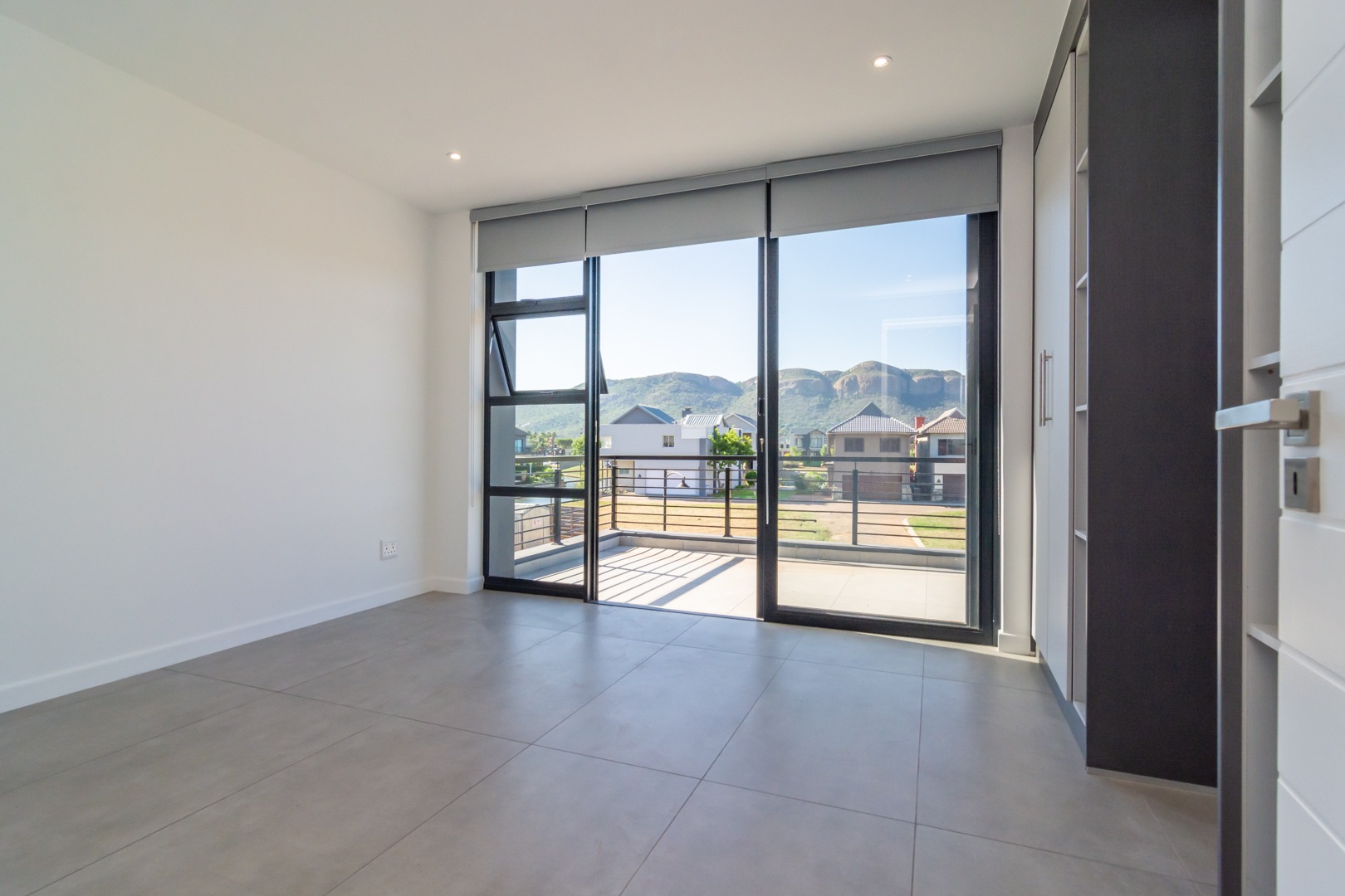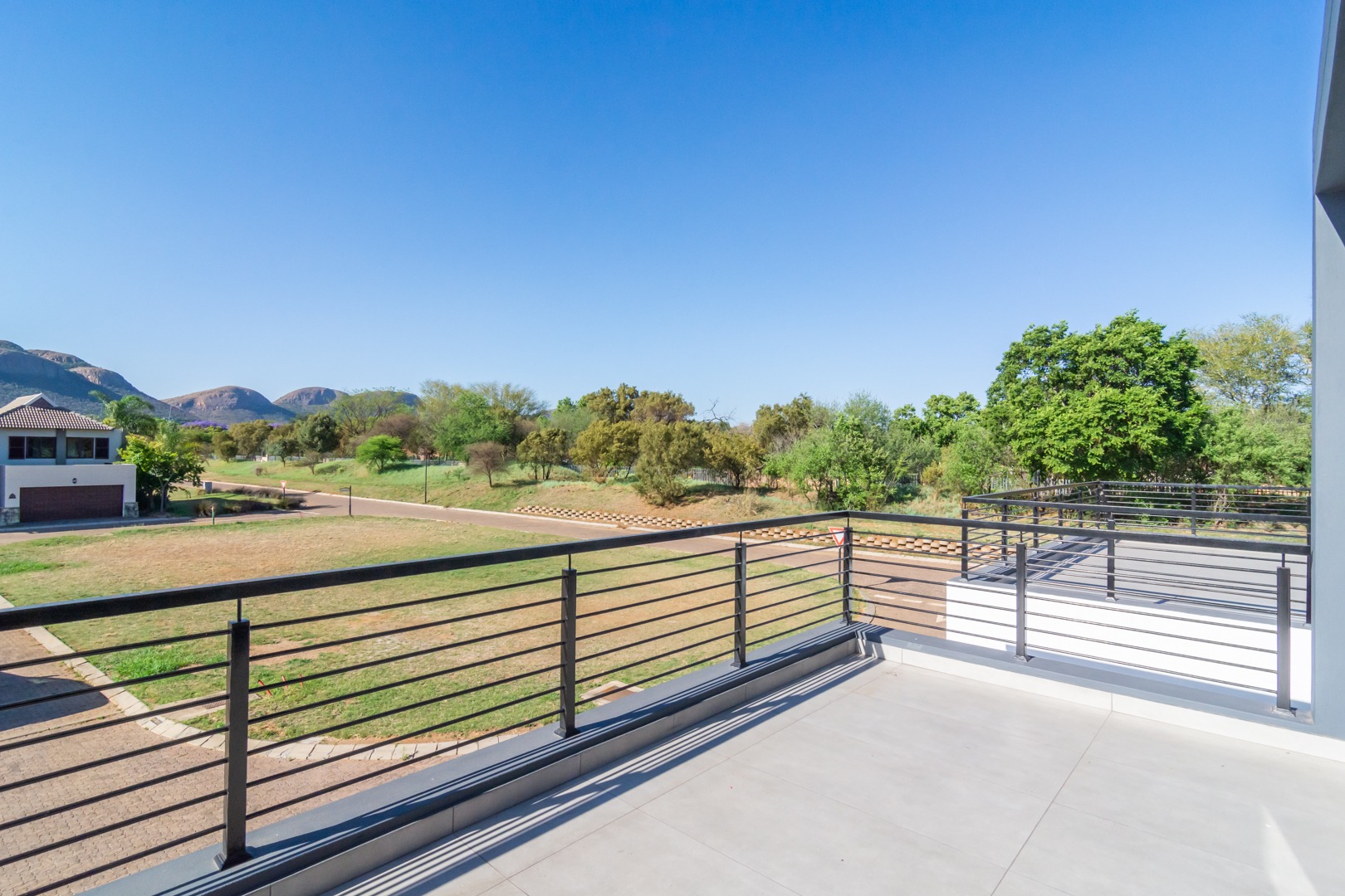 Big north-facing entertainment balcony with mountain views.