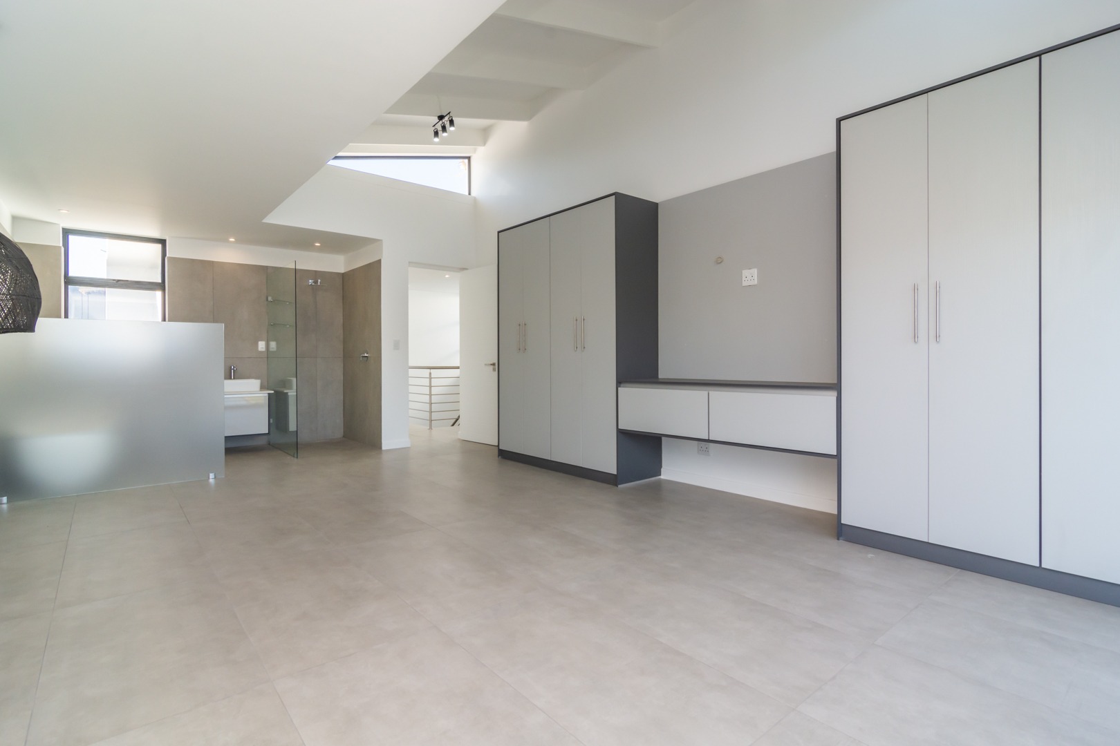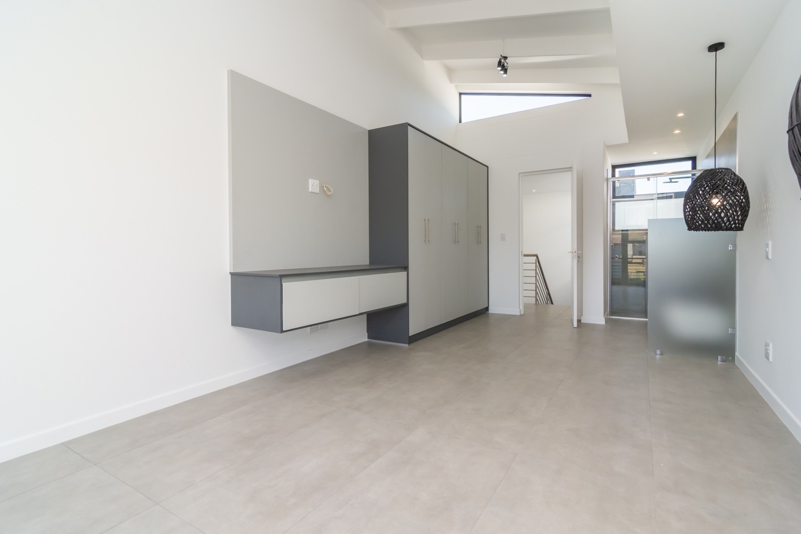 All bedrooms have built-in TV areas with cabinetry and ceiling-hung bedside light fittings. Under the staircase area for packing and storage.