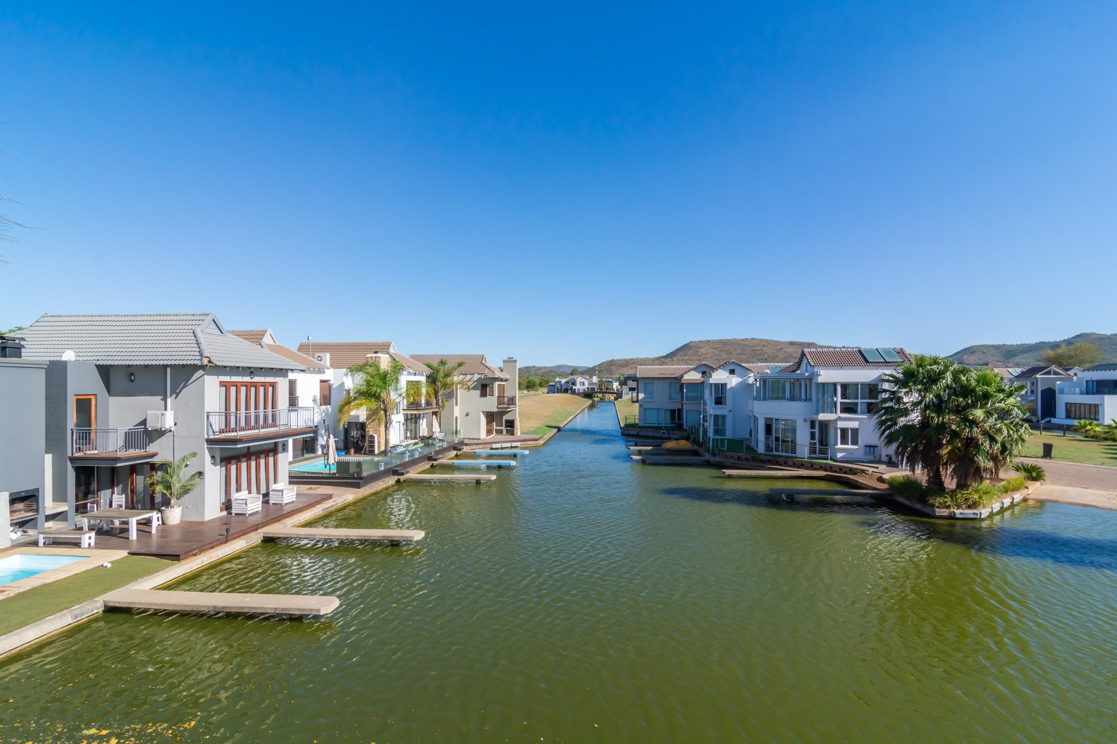 Freehold, double-storey villa on the canal – direct access from the entertainment lounger! Perfect “lock up & go or stay & play” villa in Hartbeespoort’s exclusive islands estate.